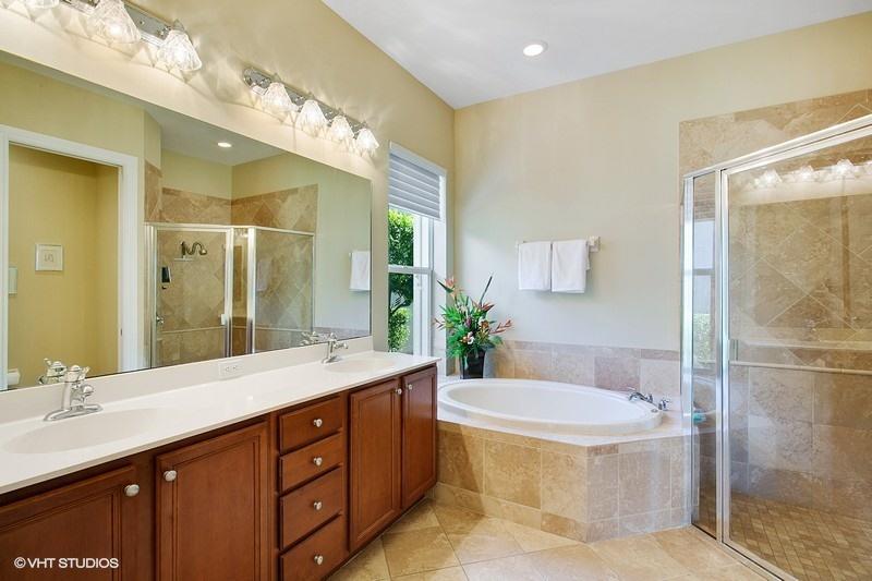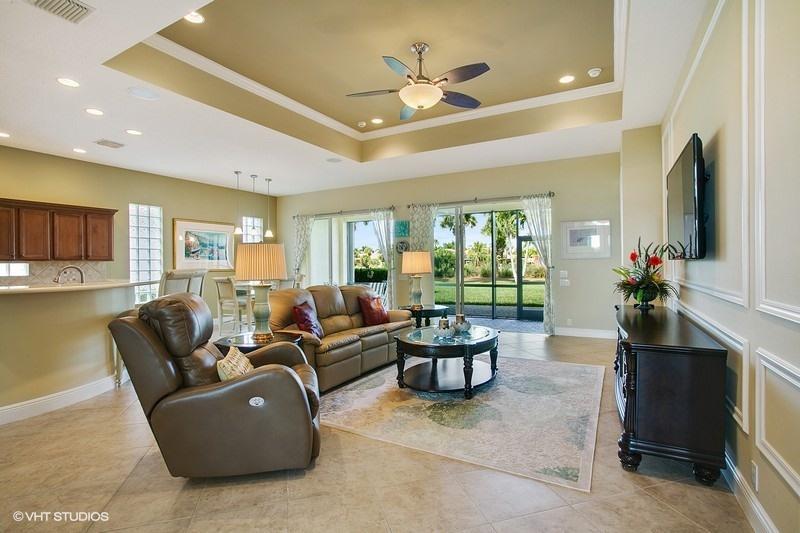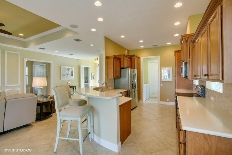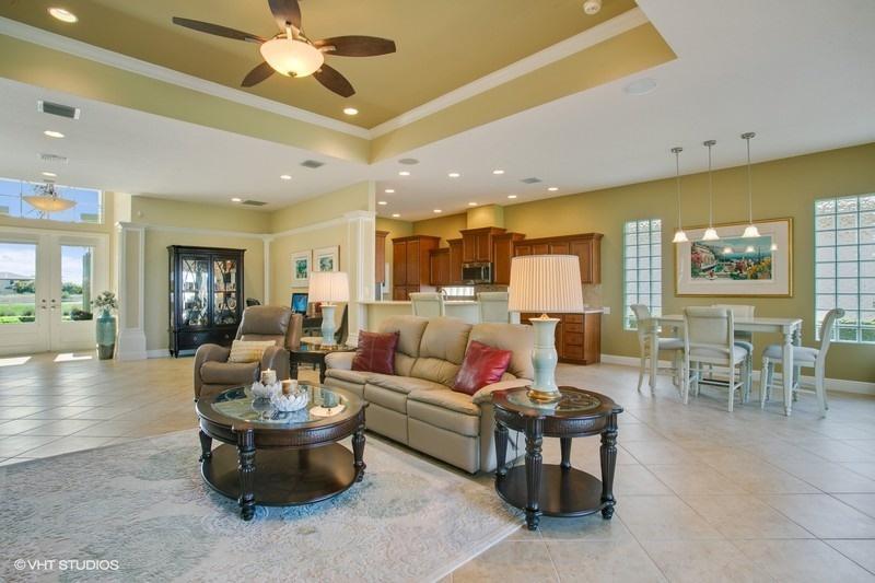 Tons of upgrades in this 3BR/2BA Montreaux open great room floor plan property! With golf views, this home has been lovingly maintained with replaced A/C system including compressor and handler in 2016, new stainless steel kitchen appliances including a french door fridge, hardwood flooring in all three bedrooms, replaced toilets, extra exterior landscaping drainage, TEK system garage extra storage, and entire home water filtration system. Neutral interior wall colors, exterior was just painted in 2018. Master bedroom features two walk-in closets and a 10' ceiling. 3 attached TV's convey with sale and great room features pre-wiring for TV's. Full set of hurricane accordion shutters. This home is perfect for a buyer looking for a well-maintained and spotless property with tons of upgrades!