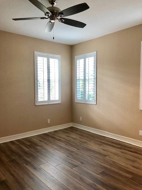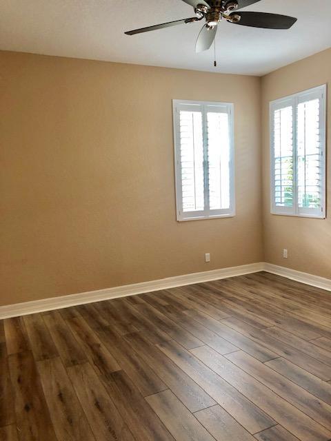 Unbelievable 3 bedroom,2 1/2 bathrooms plus den (could be 4th bedroom)townhome in gated community!! Tile on the diagonal on first floor and beautiful laminate wood like floor on stairs and second floor.New kitchen with quartz counter tops, stainless steel appliances, island and desk, LED lighting throughout (dimmers as well), all new upgraded hardware throughout.Newer hot water heater with recirculator Plantation shutters throughout.Master suite includes 3 closets (2 walk-ins), jacuzzi tub, separate shower and dual sinks.Two car garage with ample storage.Outdoor private courtyard for bbq and entertaining. Not to be missed!And as a bonus, hurricane impact windows
