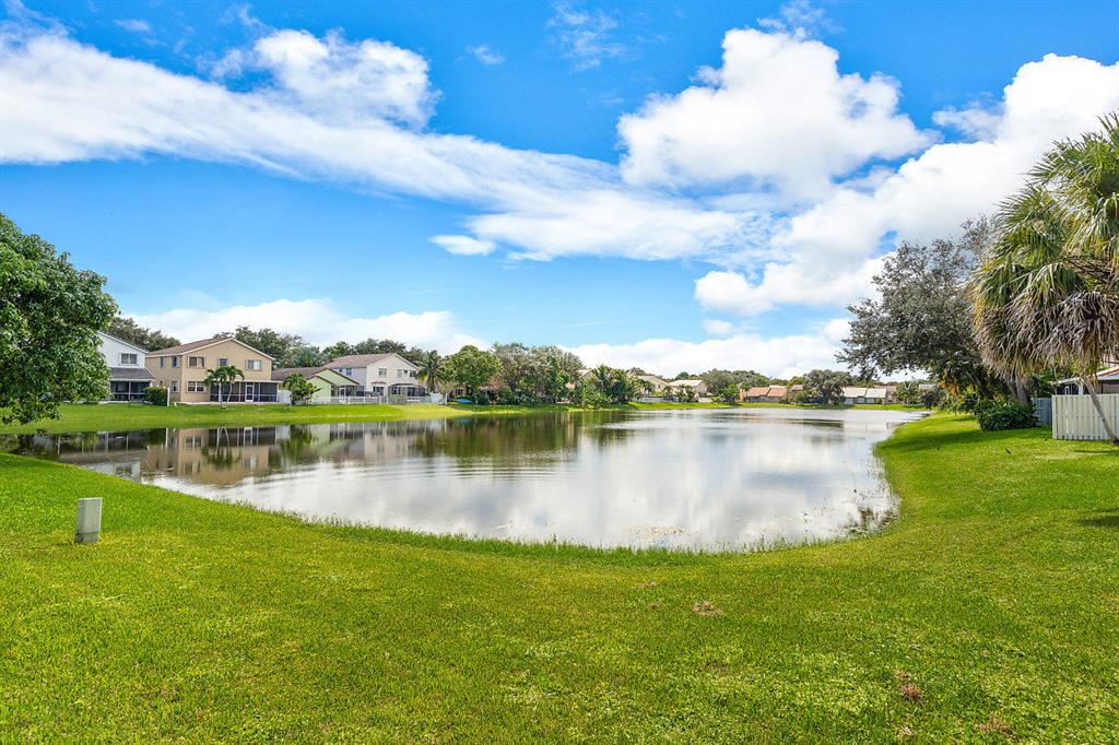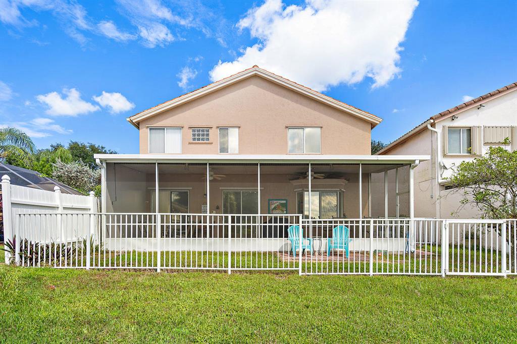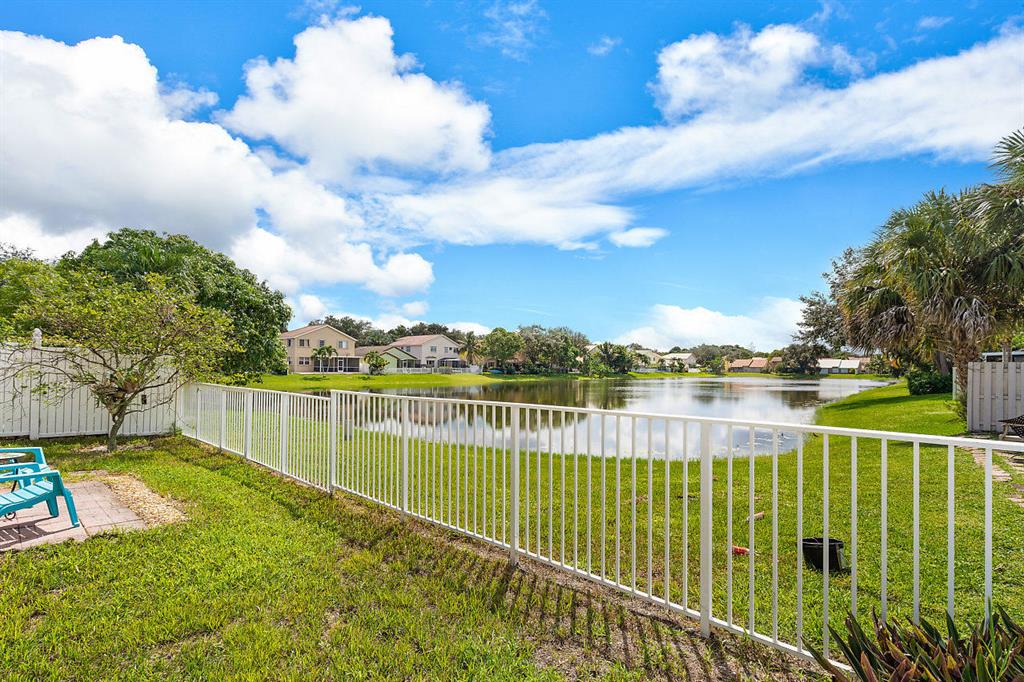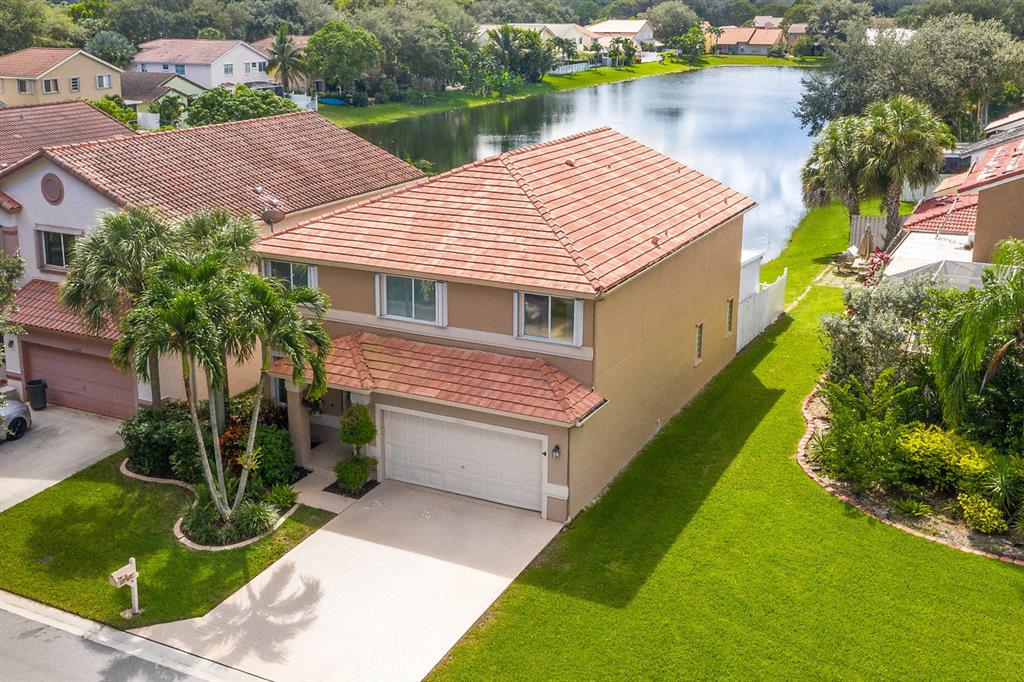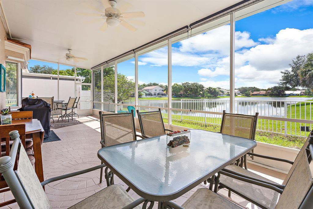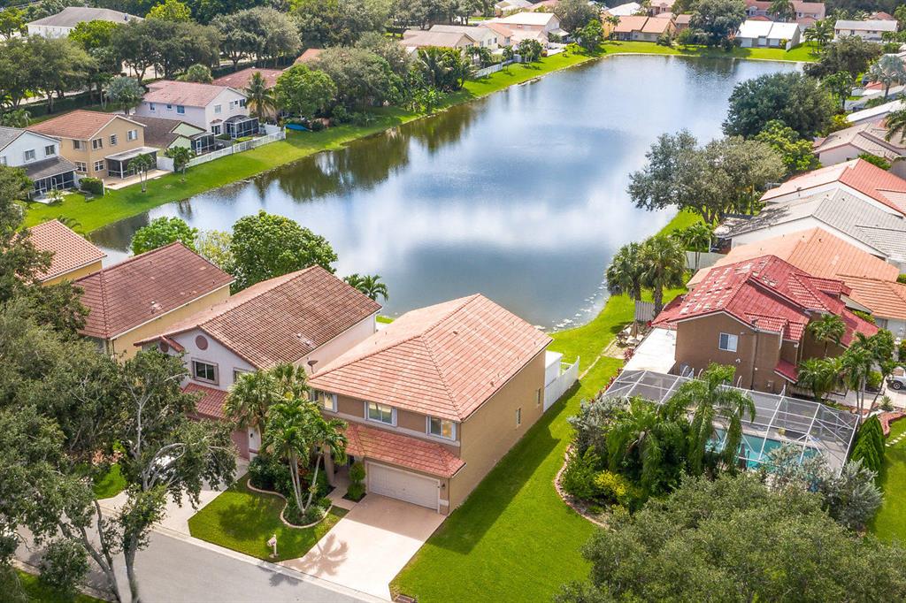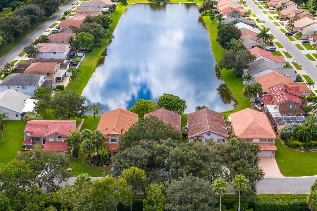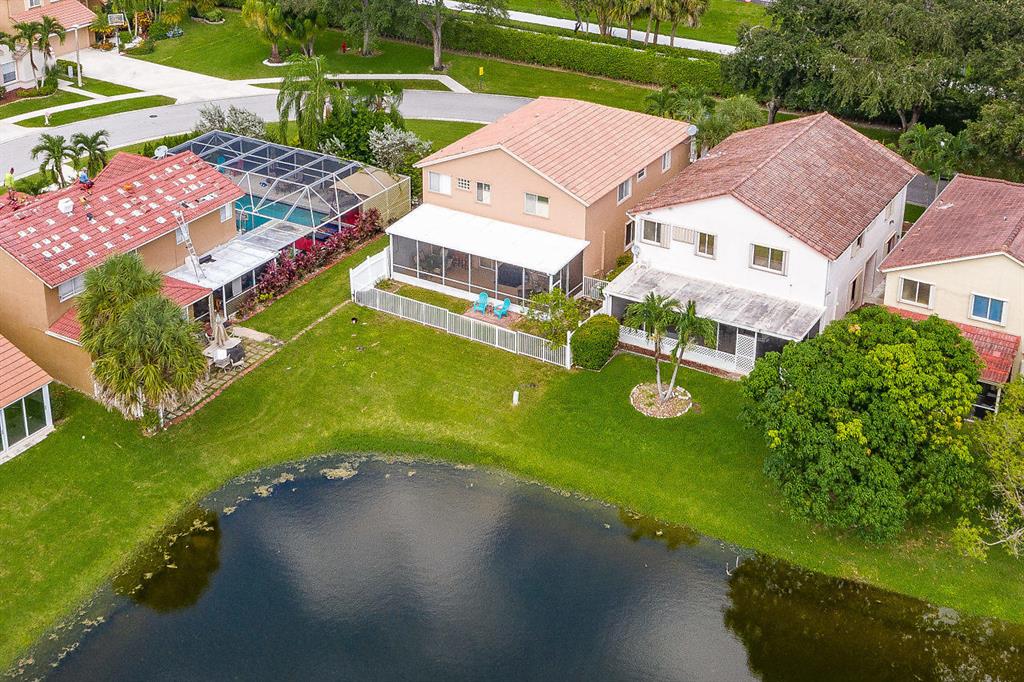 Fabulous 5 bedroom home with gorgeous long lakeside sunset views. This generous 2801 living sf home has updated large diagonal faux marble floors downstairs, updated kitchen with granite counter tops and backsplash, custom pantry and kitchen dining area with lake views, stainless steel appliances, crown molding, large windows with plenty of light and lake views. Relish the sunset views every day from the large covered and screened in patio area. Enjoy this comfortable home with wood floors trailing upstairs to the landing area embracing 5 generous bedrooms with ceiling fans, accordion hurricane shutters and window tinting for energy savings on all windows. Elegant crown molding decor. This gracious home sits next to a garden like corner lot with no front neighbors in a ...click more