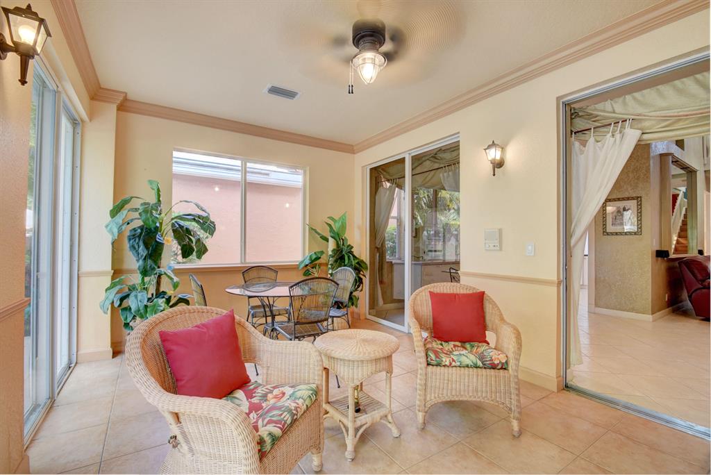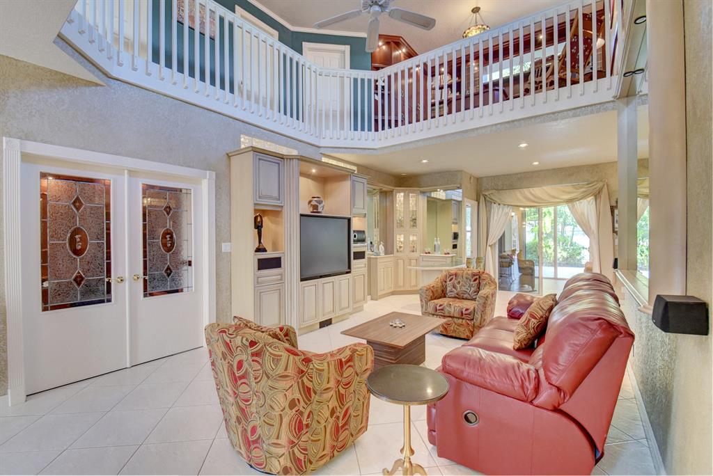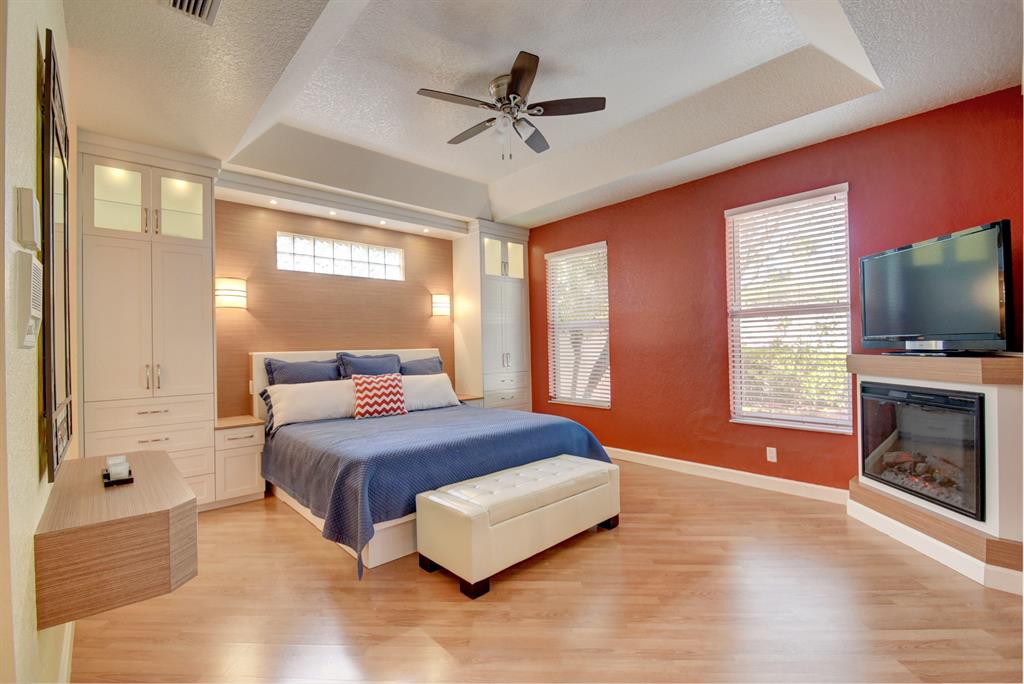 Price reduced for Quick Sale! Great Deal! SPECTACULAR HOME W/ MANY AMAZING UPGRADES & GORGEOUS BUILT-INS THRUOUT. 1ST FLR BOASTS SPACIOUS MASTER BR W/ CHARMING FIREPLACE! Luxurious Master Bath w/ Roman Tub. Custom built-in office w/ exquisite French Doors. Cook's Kitchen w/ Blue Pearl granite & Cafe area. Beautiful Garden/Family Rm w/ hurricane doors & windows. Relax on Spacious Patio w/ Stunning Fountain & Lush Landscaping. 2ND FLR FEATURES 2 bedrooms, full bath, Den/Exercise Room, & impressive Loft w/ high-end cabinetry. Beautiful Wood-Laminate Flooring! Across from Clubhouse & Community Pool! Pet friendly community. Excellent Schools. Convenient to shopping, dining, movies, major thoroughfares. Well-run, friendly gated community w/ low HOA fee, located adjacent to scenic golf course.