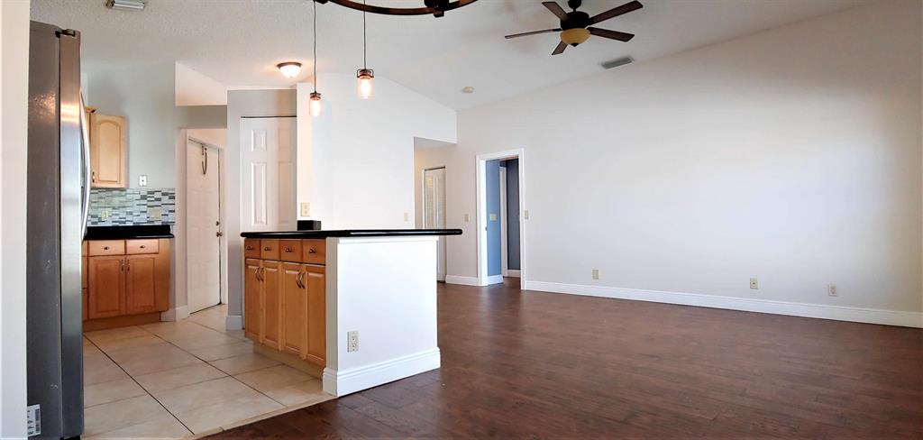 Updated single family home on large corner lot in 24 hour gated community! New impact glass windows and doors throughout! Beautiful new wood-plank tile flooring in living areas including all 3 bedrooms. (No carpet!) Lovely open floor plan with tons of light has spacious kitchen with granite countertops, new stainless steel refrigerator & dishwasher, and mosaic tile backsplash. Freshly painted with new light fixtures and fans. Master bedroom with large walk-in closet adjacent to master bath with new frameless shower door, mirrors and light fixtures. Guest bath also renovated with new tile, remodeled shower, new vanity & light fixtures, mirrors and custom Wainscoting. Extra features include large screened patio, new gutter system, oversized 2 car garage has bonus room (with power & a/c)