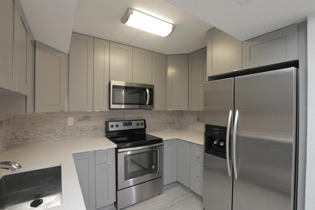 Newly remodeled. Just completed. Stylish and classy finishes! Neutral decor. Three bedrooms and three full stunning new baths. One bedroom and one bath on first floor. The other two are en suite, on second floor. All new flooring throughout. All new kitchen with quartz counters, tall cabinets and attractive backsplash. SS appliances~(all new with the exception of refrigerator which is a couple of years old). W/D is less than a year old! New water heater. A/C new in 2016. Roof (assn.) was replaced 2013/14. The master bedroom is extra spacious (17X12) with ample closet space. Fenced in courtyard offers privacy and a place to play or relax. Community offers pool, tennis, racquetball, fitness & clubhouse. 2 pets allowed. Can be rented right away.