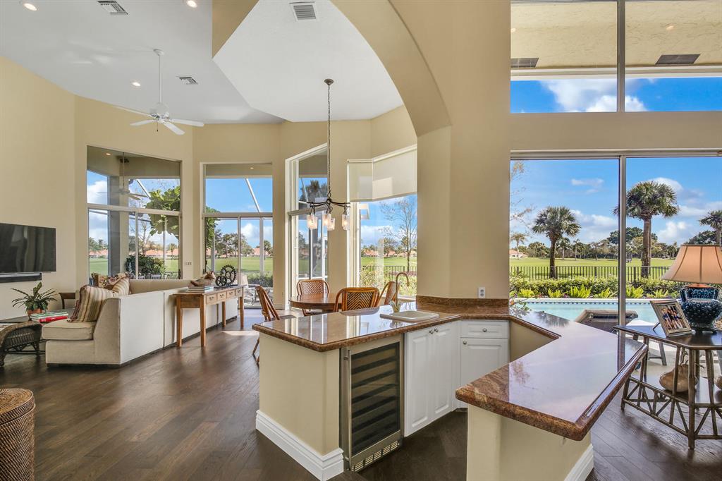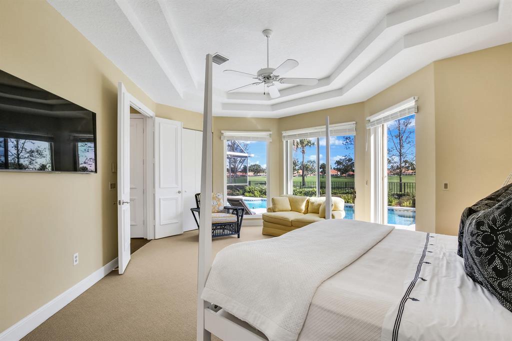 Here it is! A light, bright and open floor plan with 3BR/3BA+Study situated on a 1/3 acre lot with a spectacular view of the first fairway of the Legend course. No cart path--just green fairways and blue skies to enjoy. As you enter from the circular drive, you will find a home that is bathed in natural light all day. Accordian shutters, new pool heater, gas stove, new carpeting in bedrooms, high end laminate flooring in main areas, tiled garage floor, screened patio and large pool that you can swim laps in.. Flat screen TV's and sound bars stay with this neutral home. This home is ready for the discriminating buyer who wants to make this home their own. Priced to sell in one of Ibis's most sought after neighborhoods.