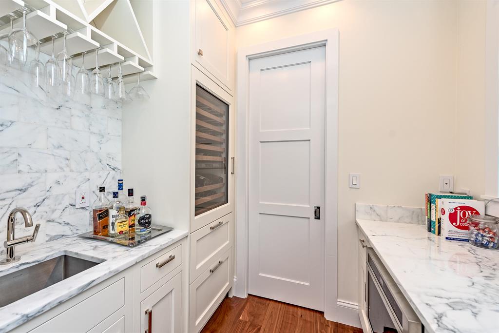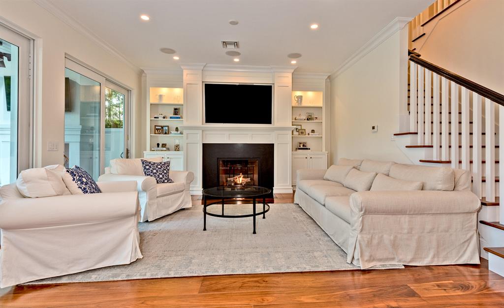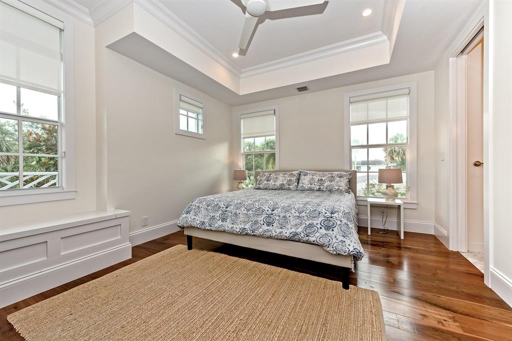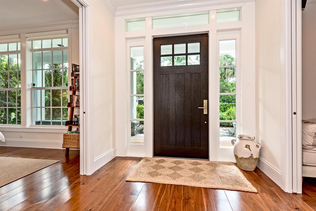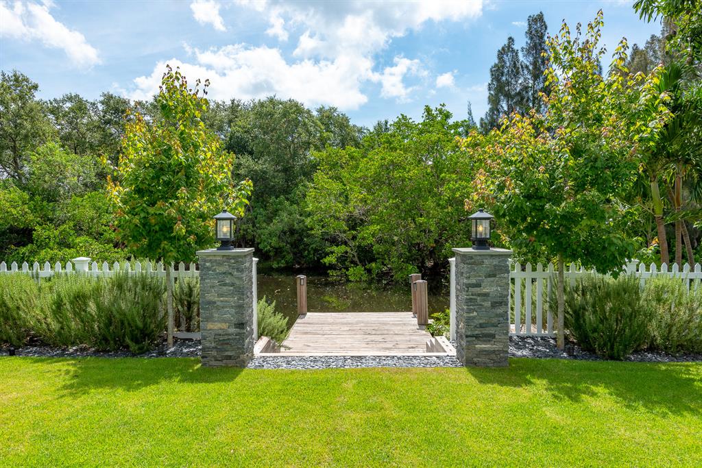 Nestled by exotic flowering foliage this newly built waterfront estate is discovered just steps away from historic Old Floresta. Featuring over 5,400 total square feet this spacious floor plan combines elegance and modern convenience with 5 bedrooms, home theatre, 4.5 baths, cabana bath, butler's pantry, and dock with ocean access. Bevolo gas lanterns illuminate the grand entry of this architectural masterpiece with a sprawling backyard amidst lemon eucalyptus, leyland cypress trees, bamboo, and maple. Hardwood wide plank walnut flooring, impact glass, custom millwork, and dual gas and wood burning fireplaces create a warmth and airiness throughout the entire home. The Downsview gourmet kitchen with center cook island, Wolf 8 burner stove,