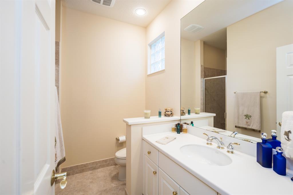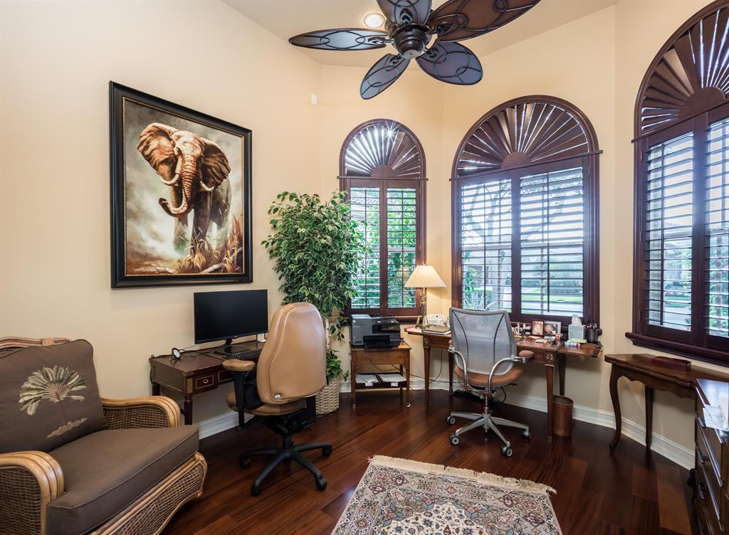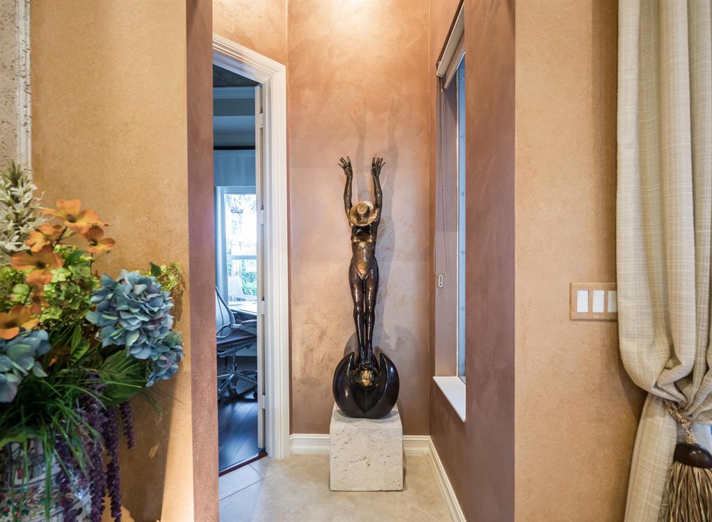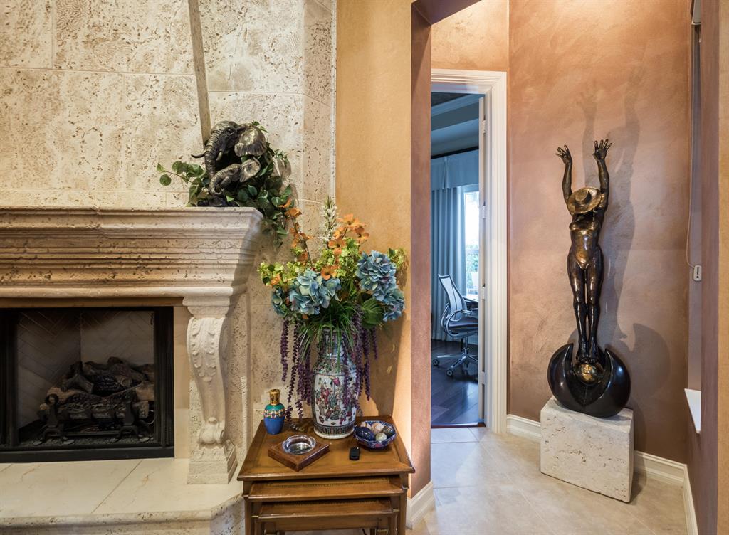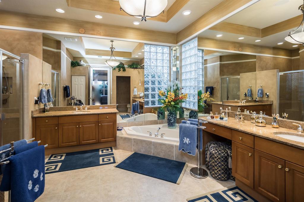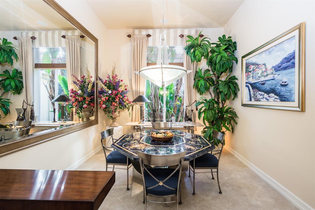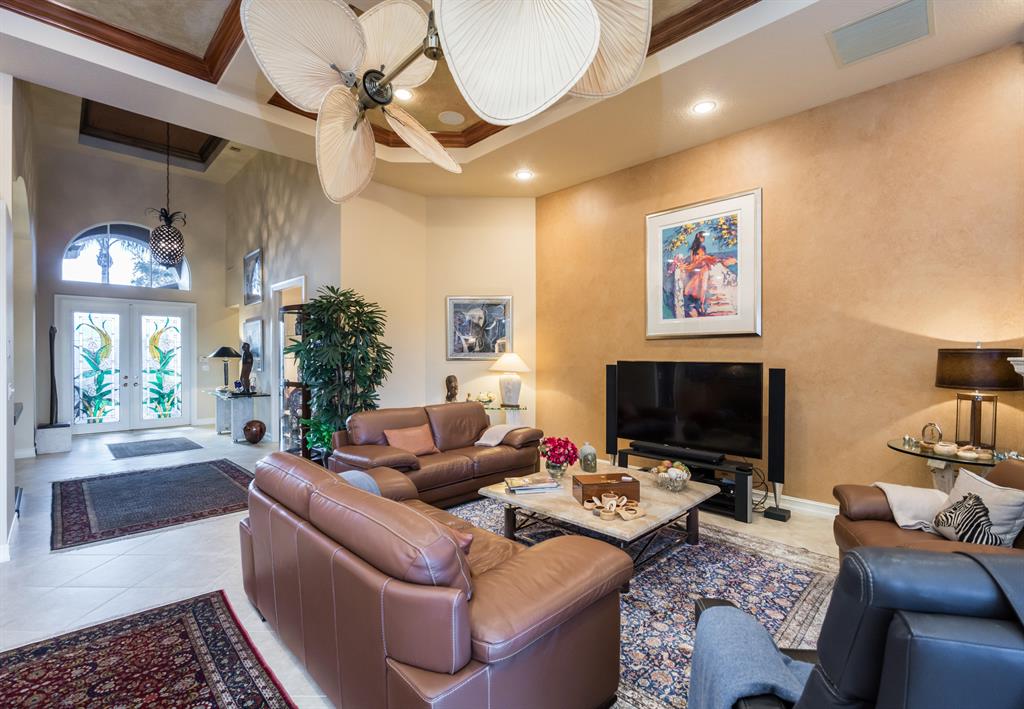 Enjoy golf and water views while living in paradise in this very special, luxurious, 3BR/3BA + Den open-plan estate home situated on the 3rd fairway of the Tradition course in the prestigious private community of The Club at Ibis. High-end features include volume coffered & tray ceilings with crown molding & recessed lighting, high-end engineered wood flooring & porcelain flooring laid on the diagonal, granite countertops, a coral fireplace, sound system throughout, stained glass, newer stainless steel appliances, and large windows and sliding glass doors. The patio is an outdoor oasis and has a covered seating area, retractable awning, a swimming pool with attached spa, and paver flooring.