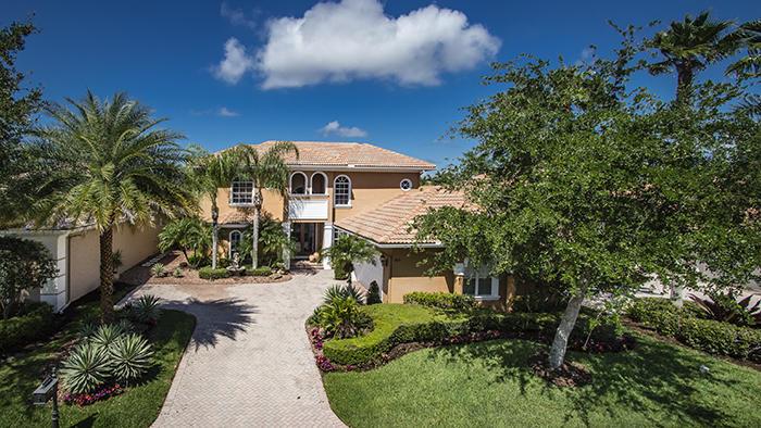 Long dramatic water and golf views from this large lot in Monte Verde. Impressive curb appeal and dramatic soaring ceilings will wow the most discriminating buyer. With 5BR/4BA, this home with a premium lot is designed with serene and warm tones. Marble floors throughout, granite kitchen with new stainless appliances, wood floors in 5th BR/office, wood and wrought iron staircase with designer inlayed tiles, designer light fixtures and window treatments, tile extended from master bath into master bedroom hallway, closet built-ins, Aqualink system for pool and spa, electric awnings all for shade. With over 3500 square feet, this home offers excellent value and generous upgrades. Qualilty throughout. AVAILABLE FURNISHED FOR $25,000 ADDITIONAL.