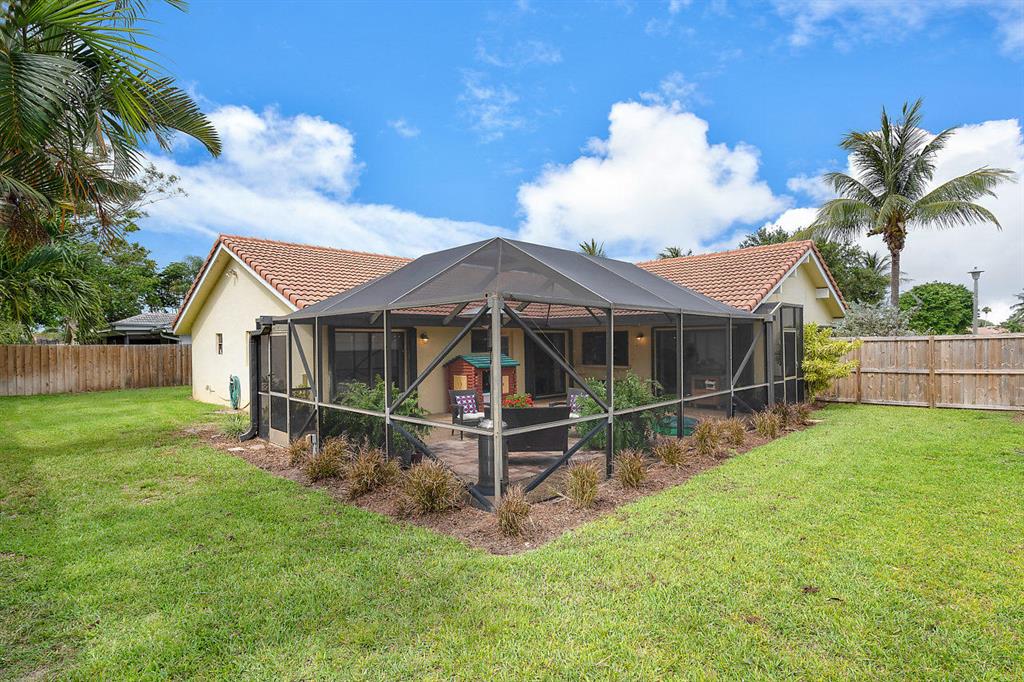 Charming 3-bedroom, 2-bath, move-in ready home nestled in Hidden Lake in East Boca Raton - Updated kitchen, with stainless appliances, expresso wood shaker cabinets, granite counters, vaulted ceilings - Adjacent to kitchen is the perfect family area with lots of natural light, easy-care laminate flooring - The formal living area offers a very flexible use of space with lots of options for furniture arranging - Majority of the home has ceramic tile, vaulted ceilings (no popcorn), newer lighting, fans and custom window treatments - Private bedroom wing including cabana bath - Lots of sliding glass doors out to the expanded screened patio for great outdoor living space and fenced yard - Newer A/C, water heater, upgraded security system, accordion or panel shutters for whole house and garage.