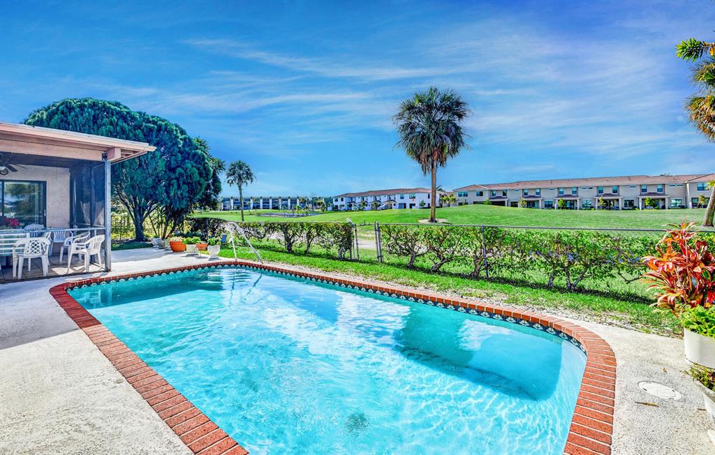 Newer Sandalfoot Home backing up to Boca Dunes Golf course. Spacious, open and bright with vaulted ceilings, tile throughout living area & laminate wood flooring in the 3 bedrooms. Fabulous foyer, Huge living room and dining room. Large kitchen with a sunny eat in area. Master bedroom features an enormous walk in closet and en-suite with an updated large shower. This home is meticulously clean and in great shape. Amazing Golf course views! Sparking pool, screened in and covered patio. Great place for entertaining and relaxing. Clear Hurricane panels for most windows(a few aluminum too) Two car garage. No HOA. Zero HOA fees! No restrictions! Amazing schools! Pets ok! All ages are ok! Most furniture is negotiable.
