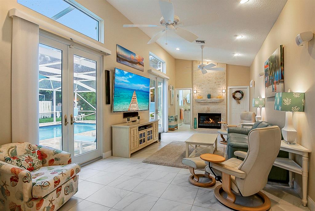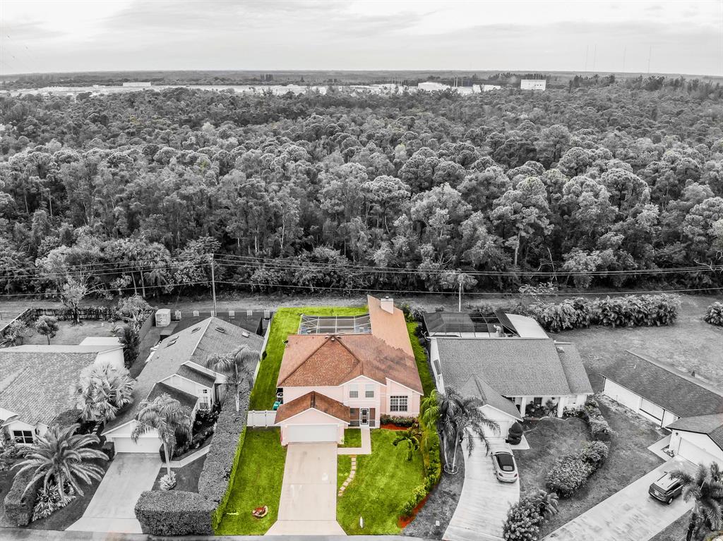 nestled in one of West Palm Beaches best kept secret, this home backs up to a protected preserve! They have remodeled the home and added a beautiful addition that overlooks the pool, complete with coral stone, wood burning fireplace!!! The light and bright kitchen flows beautiful in to the formal dining room... all overlooking the pool! The custom wood stairway leads to 3 great size rooms! The master suite has been remodeled with amazing closet space and a beautiful bath! Dont miss out on lounging by the stunning screened pool area, enjoying a hot summers night or chill by the fireplace on brisk evenings! High-end Electric chair and crystal chandelier can convey.
