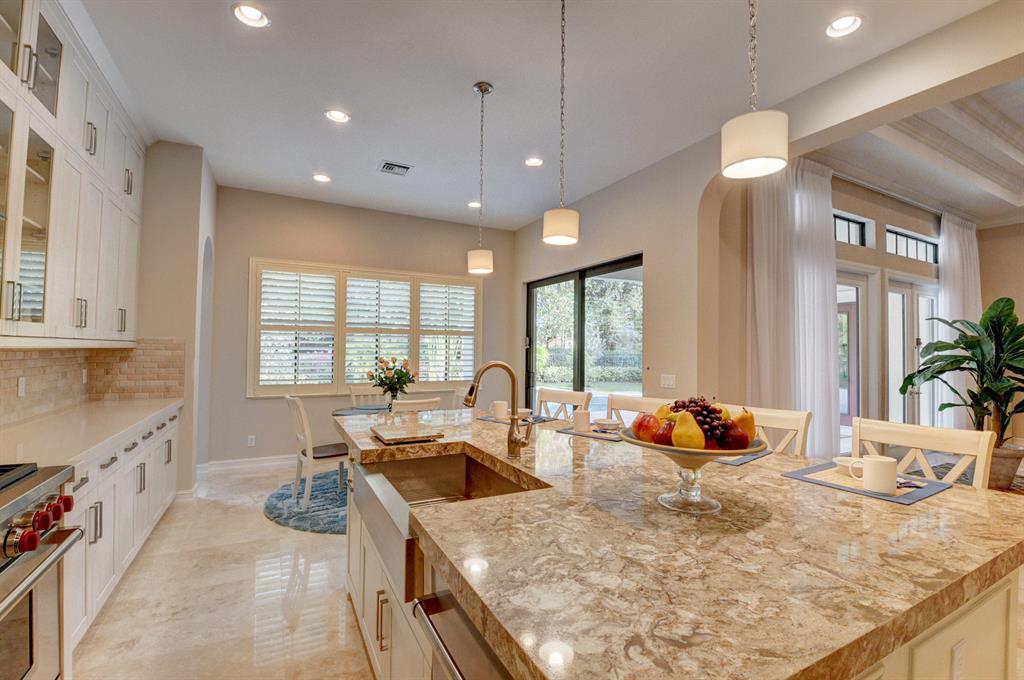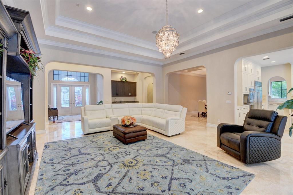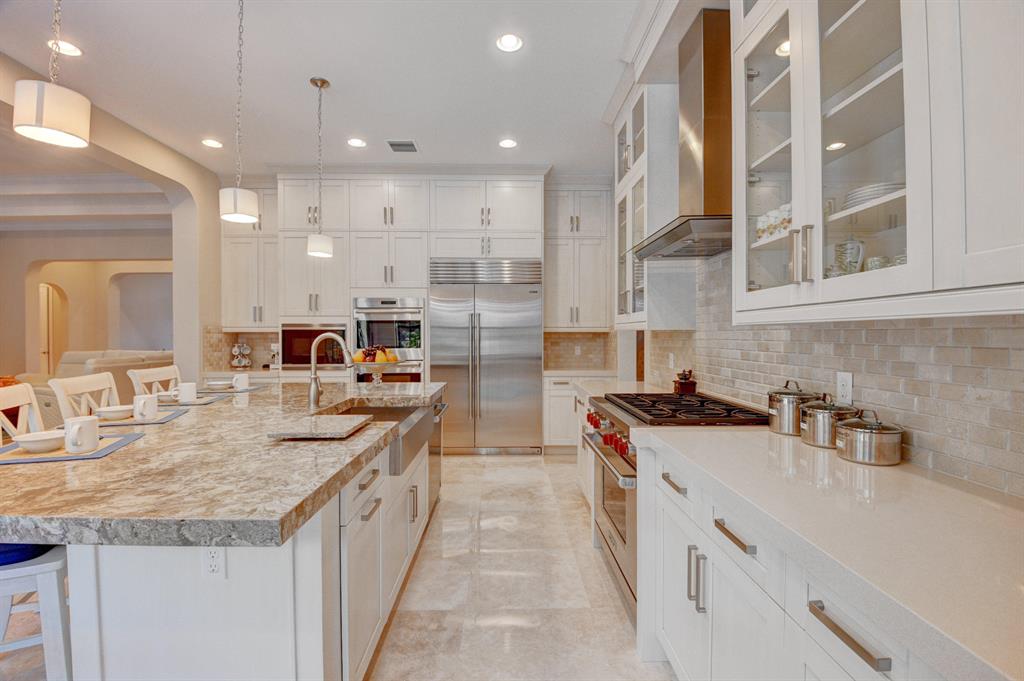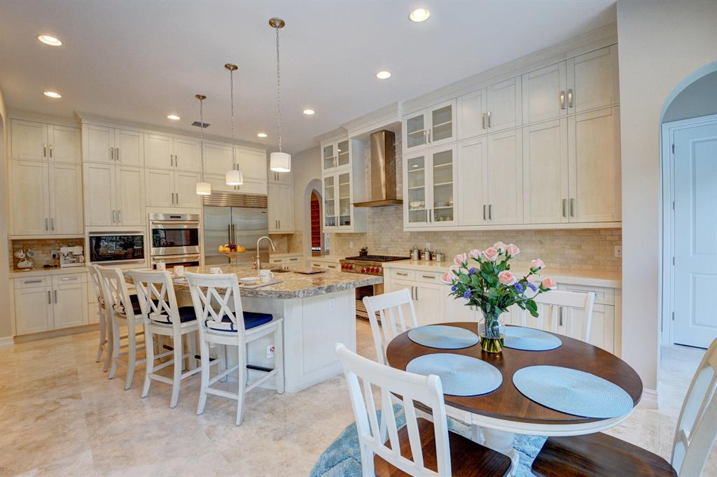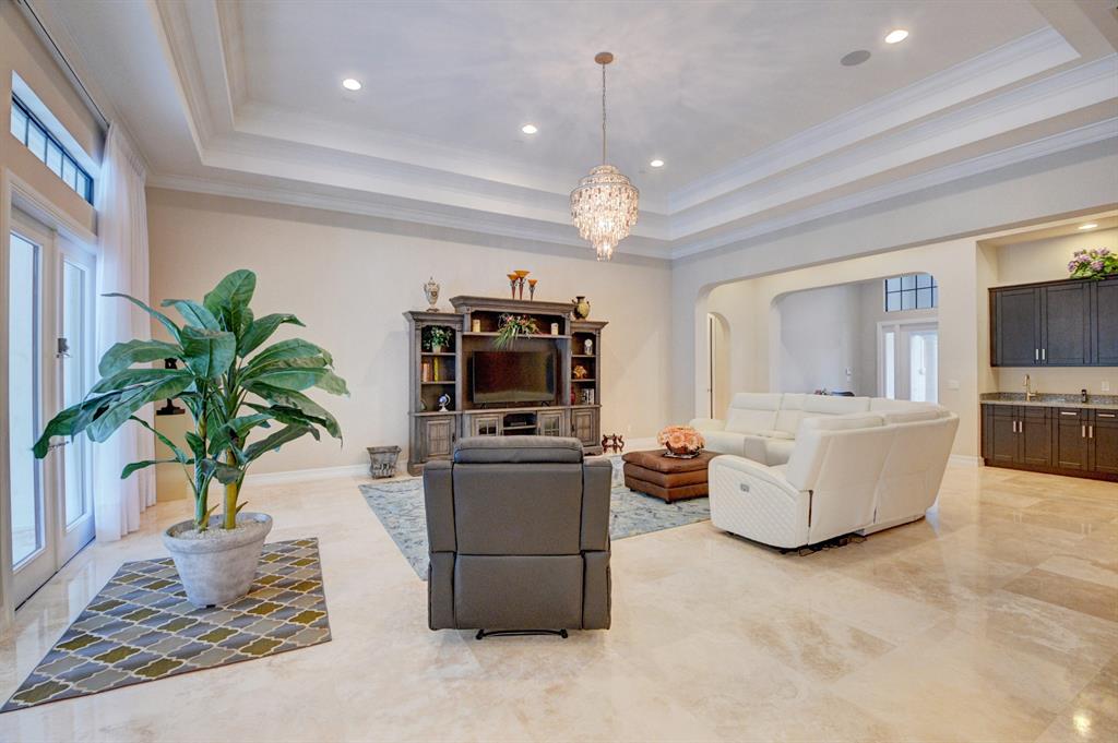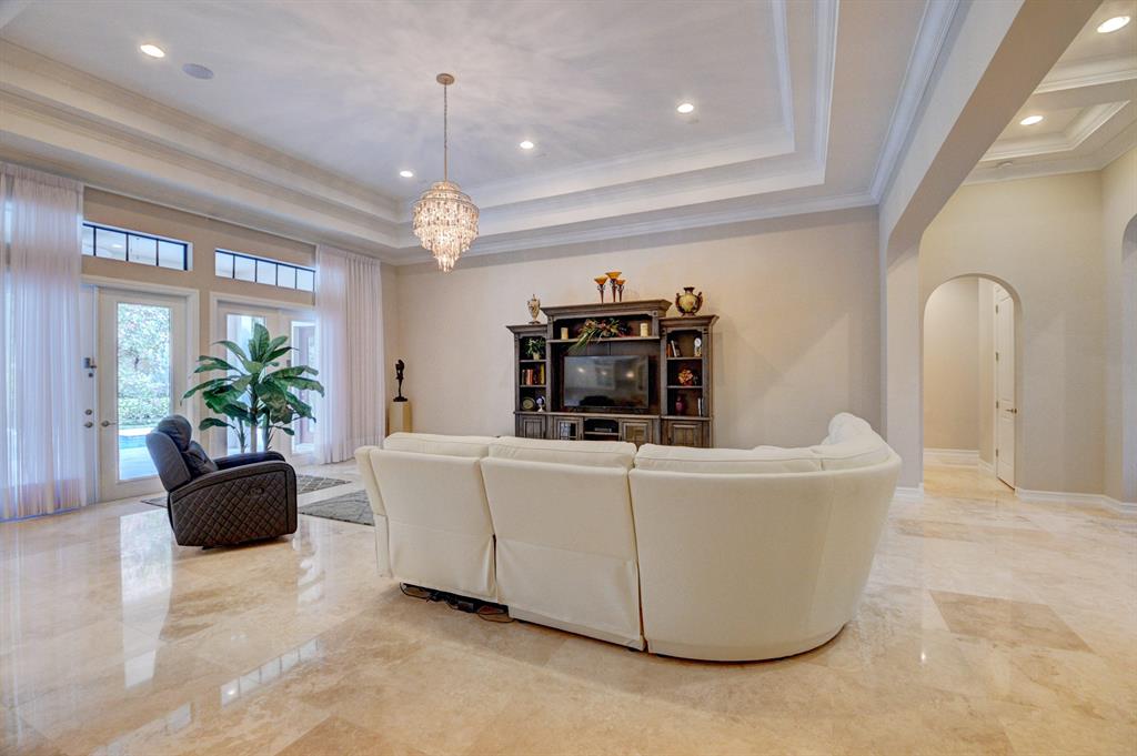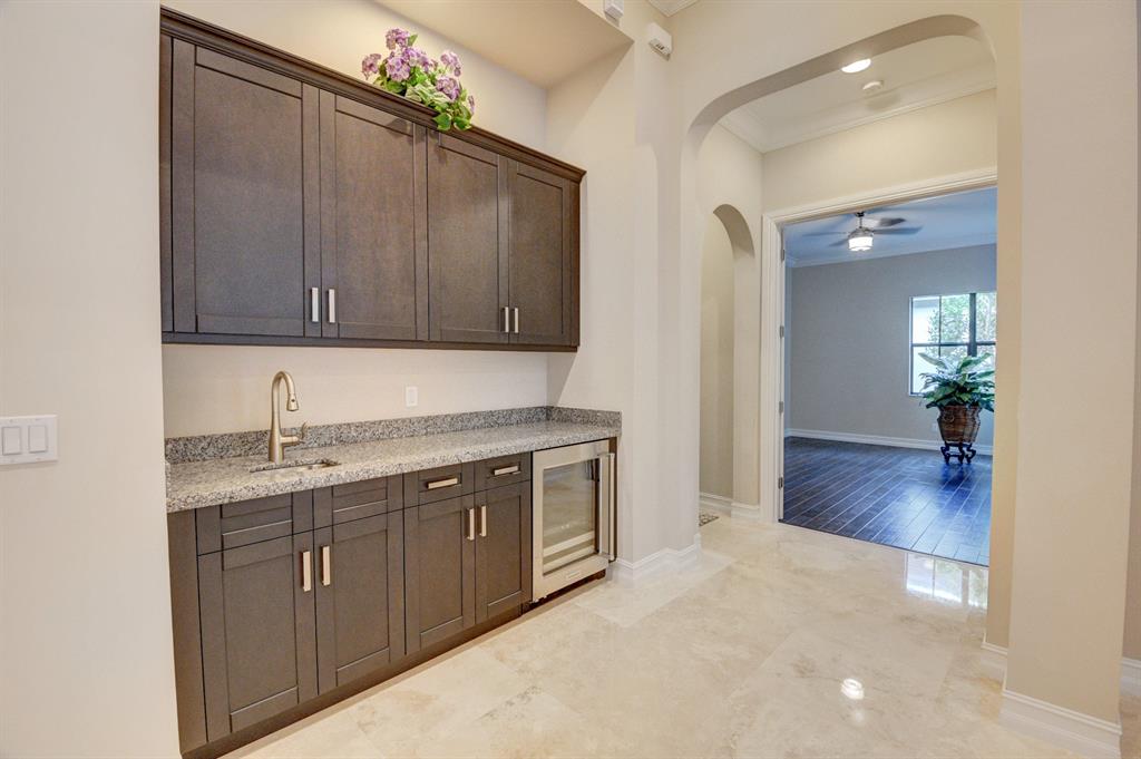 Pristine Stamford model with over one quarter of a million $$$ in upgrades. This 3 bedroom plus club room or convertible 4th bedroom is all on one level. Stellar appointments include 24x24 top quality marble in living areas, hardwood flooring in club room, fabulous great room opening to gourmet designer kitchen with two tone quartz counter-tops, oversized island & beveled subway tile back-splash, plus Wolf & Subzero appliances, crown molding in every room, designer wall & window treatments & lighting, bar with wine refrigerator, impact glass, heated pool & spa, lovely landscaping with grass. Epoxy garage flooring and outfitted storage. Nearly new and never lived in!!!