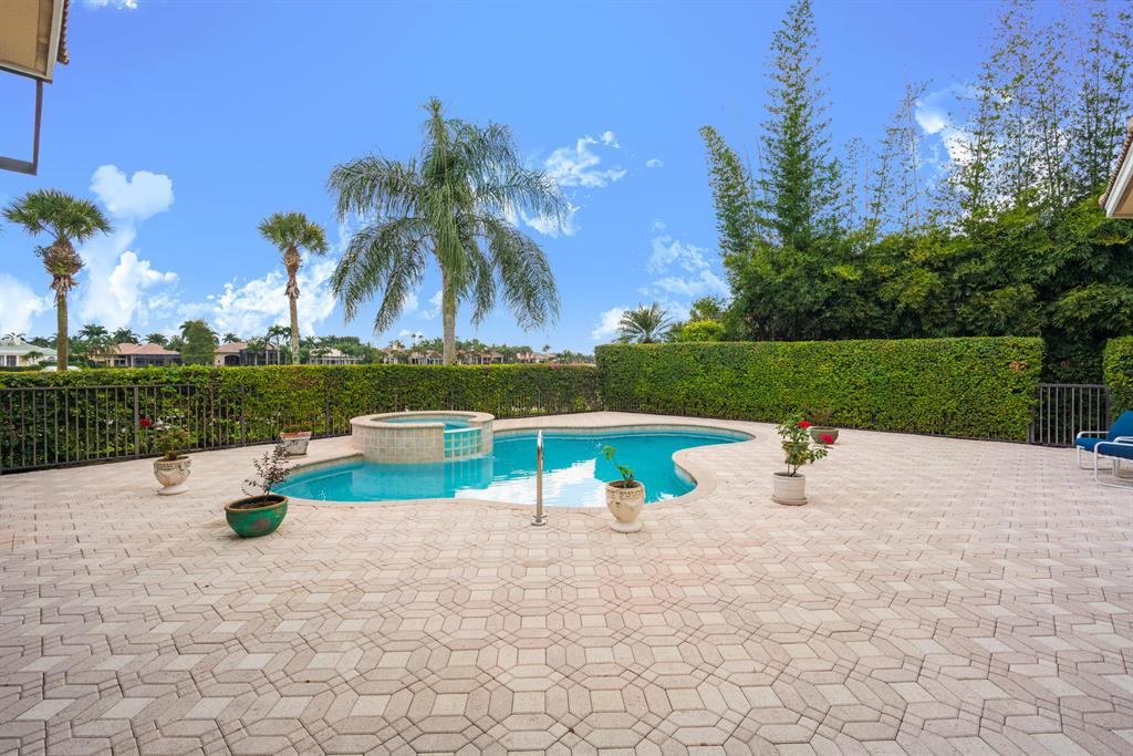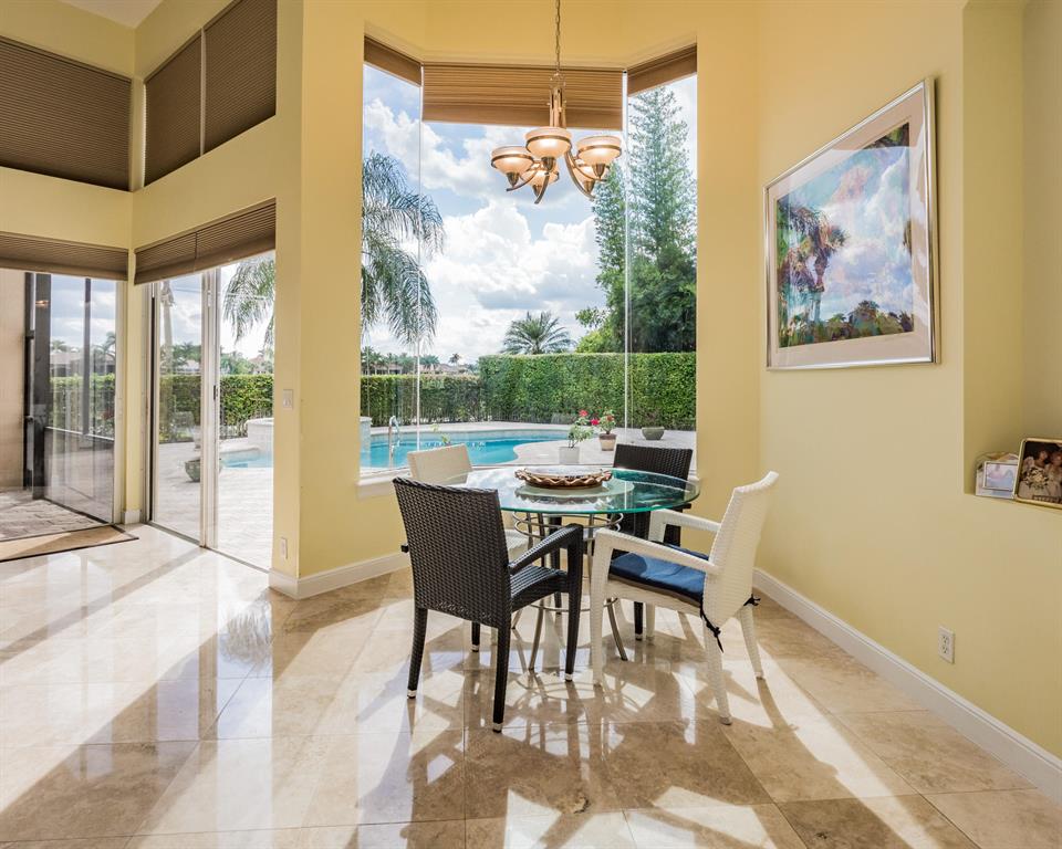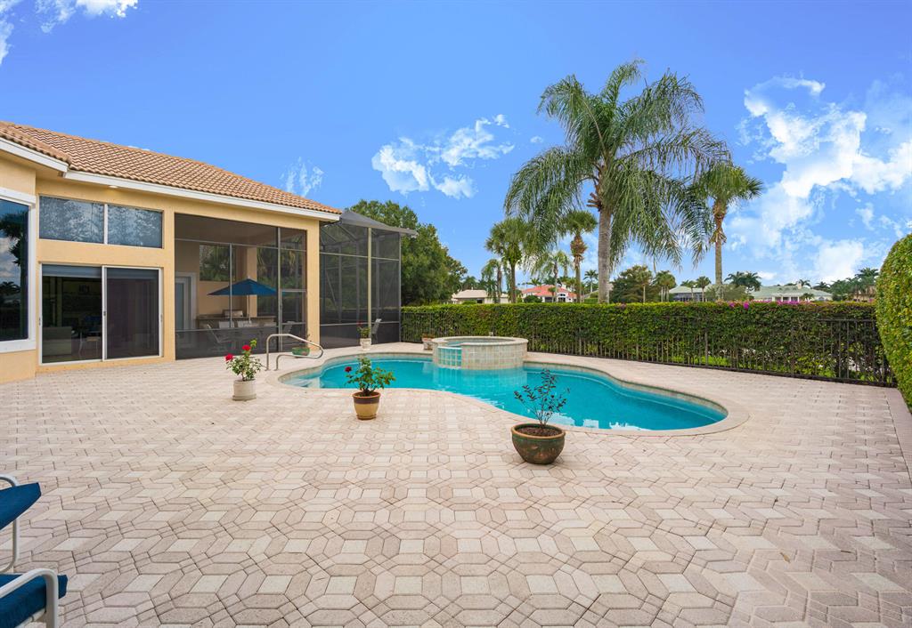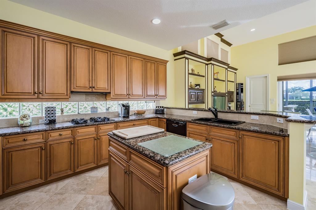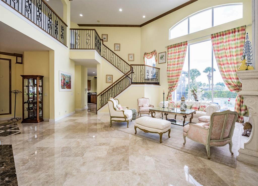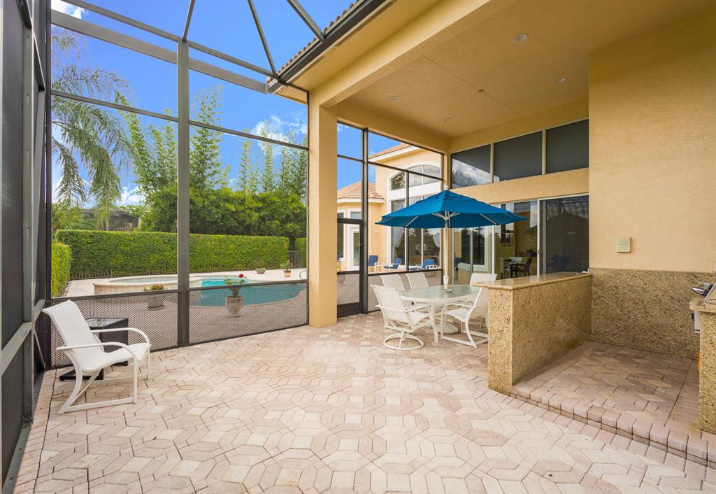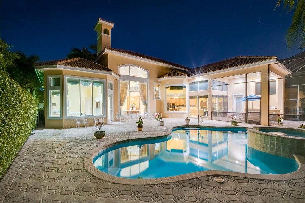 Amazing golf & lake views surround this exceptionally bright, luxurious, meticulously kept, 5BR/4.2BA + den + loft custom model home, located on one of the best lots in the the Egret Lakes community of The Club at Ibis. Desirable features of this split-plan home include a grand marble staircase and marble flooring, soaring 2-story ceilings, a floor-to-ceiling fireplace in the living room, eat-in kitchen with granite countertops and large pantry, a large master suite with wood-look Italian tile flooring, and an expansive paver patio with a granite summer kitchen and a resurfaced salt water pool which overlooks the 4th hole of the Legend Golf Course. Garage has tile flooring, granite countertops, and cabinets.