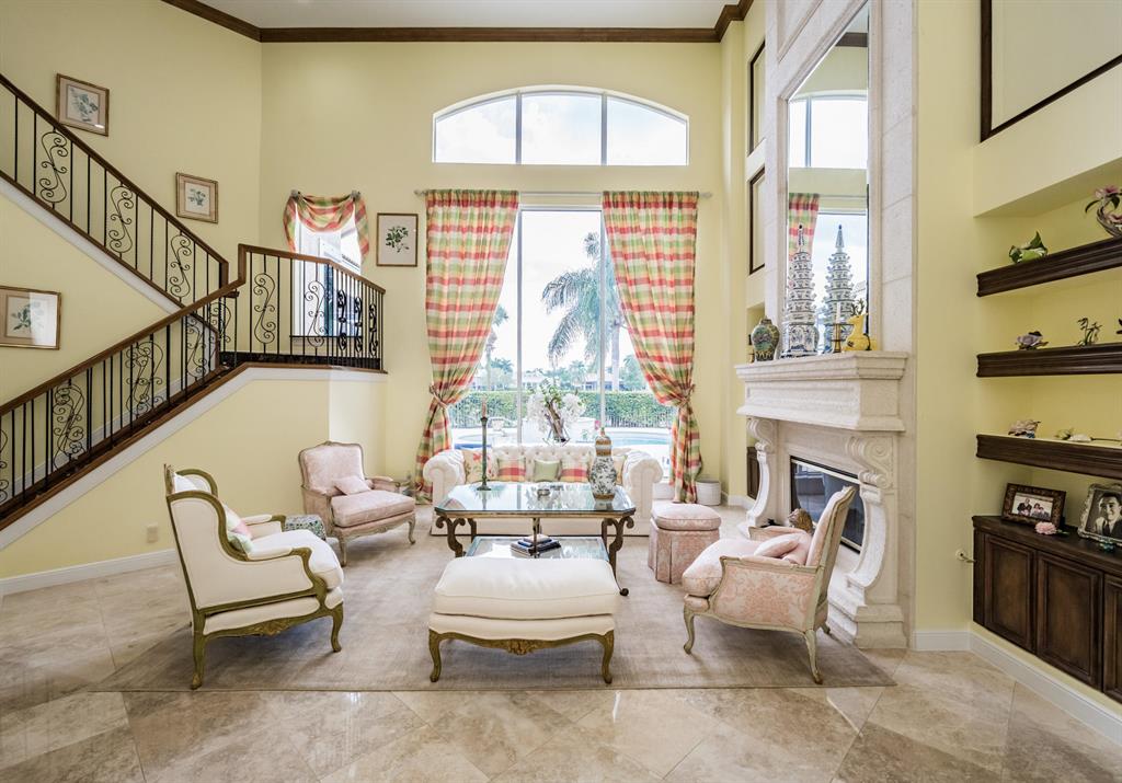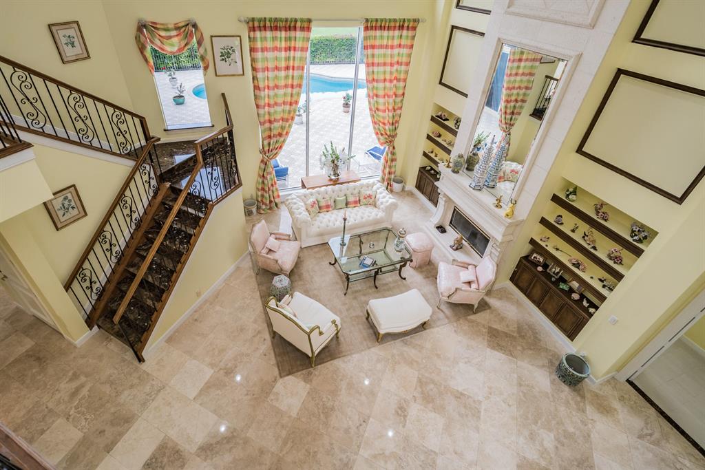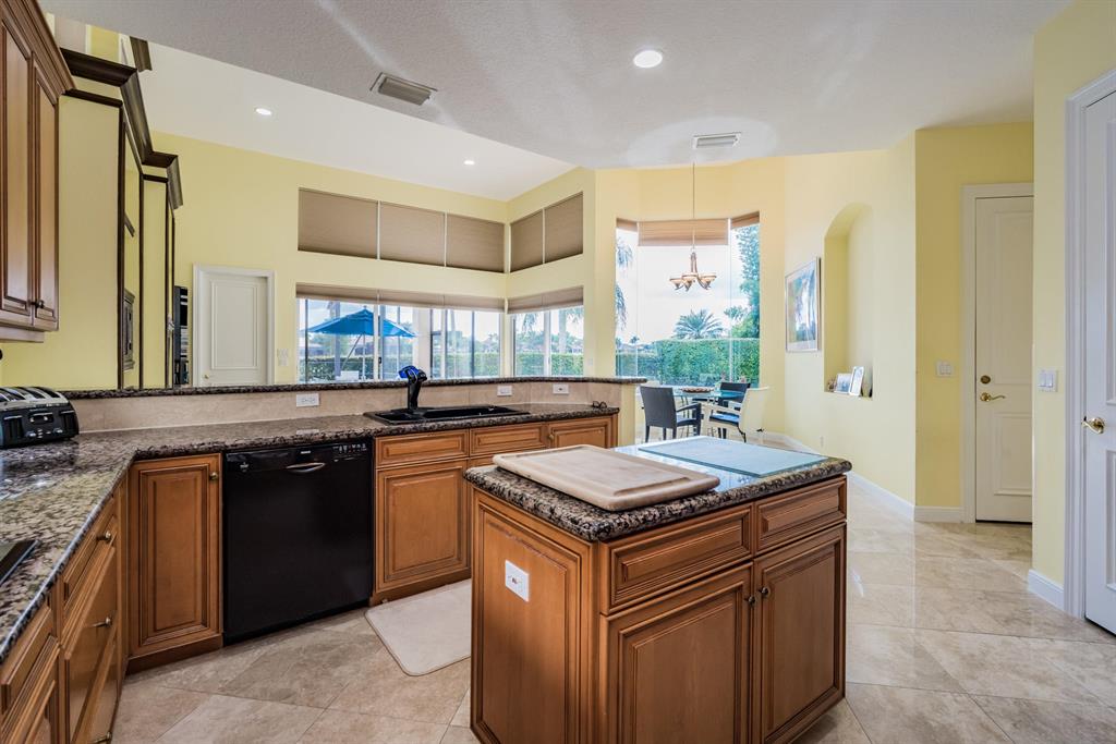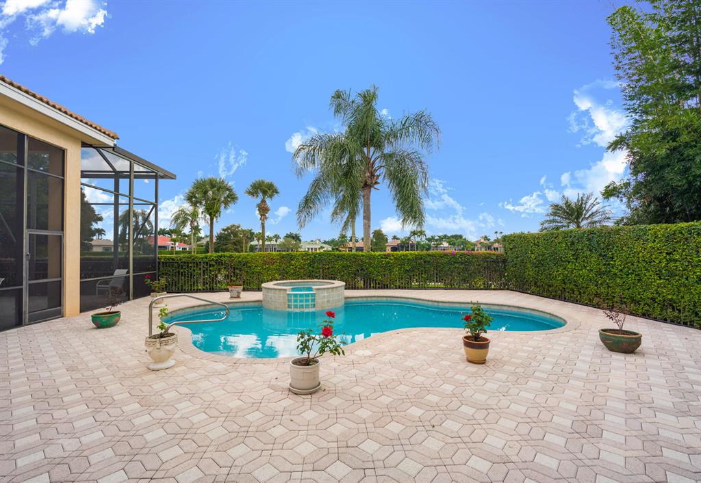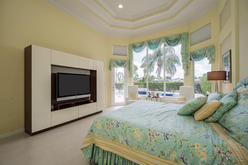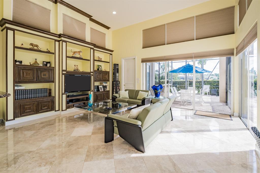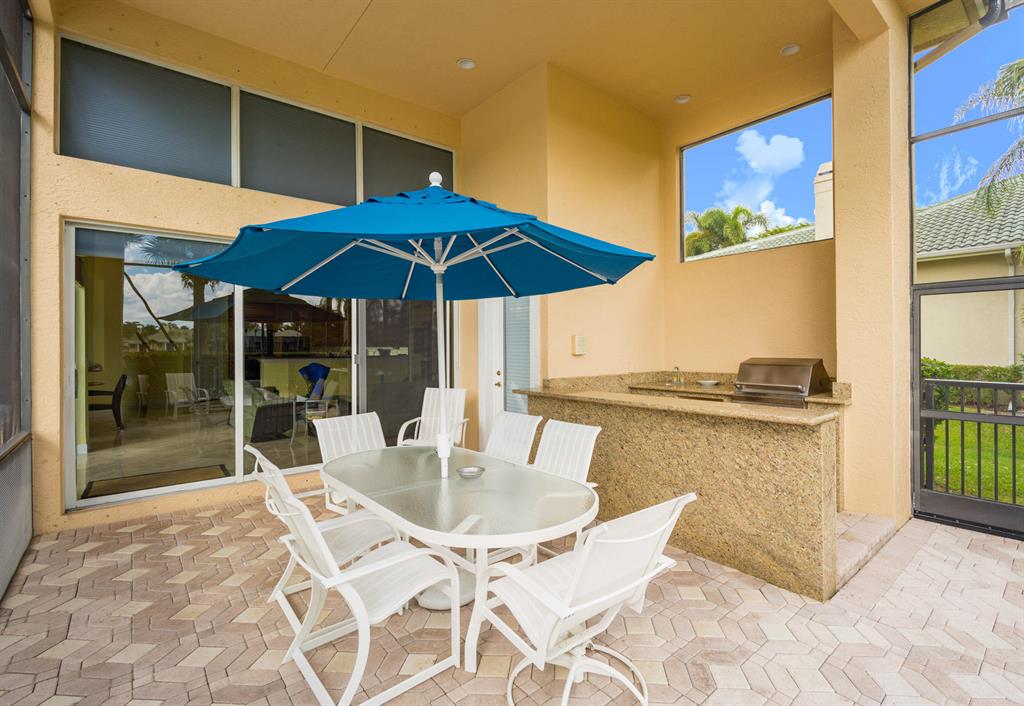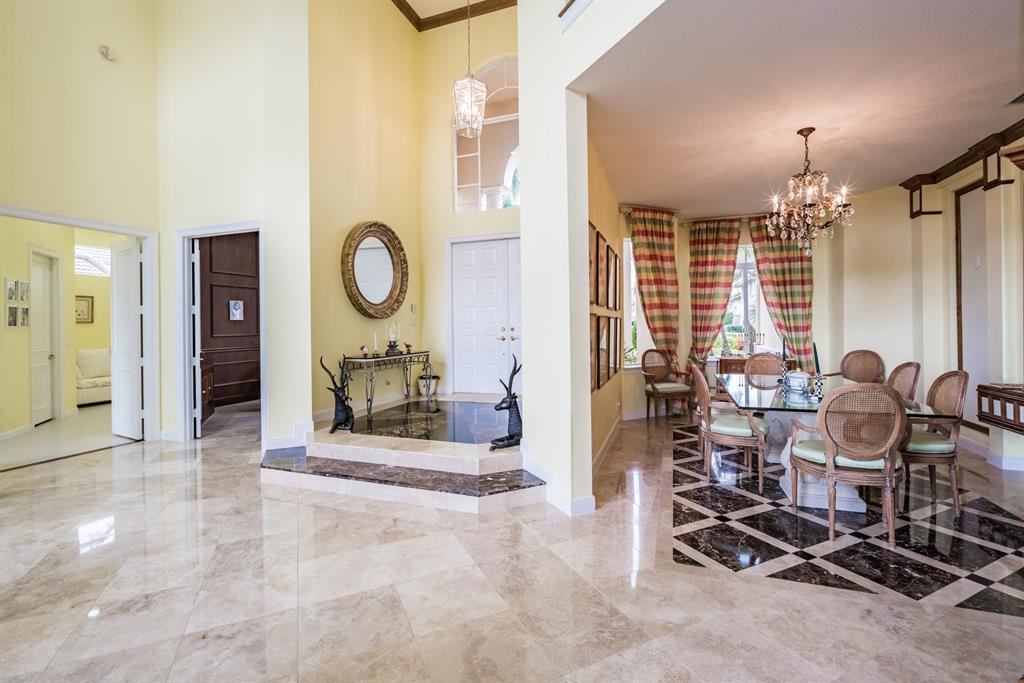 Amazing golf & lake views surround this exceptionally bright, luxurious, meticulously kept, 5BR/4.2BA + den + loft custom model home, located on one of the best lots in the the Egret Lakes community of The Club at Ibis. Desirable features of this split-plan home include a grand marble staircase and marble flooring, soaring 2-story ceilings, a floor-to-ceiling fireplace in the living room, eat-in kitchen with granite countertops and large pantry, a large master suite with wood-look Italian tile flooring, and an expansive paver patio with a granite summer kitchen and a resurfaced salt water pool which overlooks the 4th hole of the Legend Golf Course. Garage has tile flooring, granite countertops, and cabinets.
