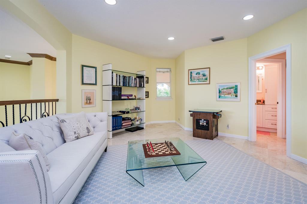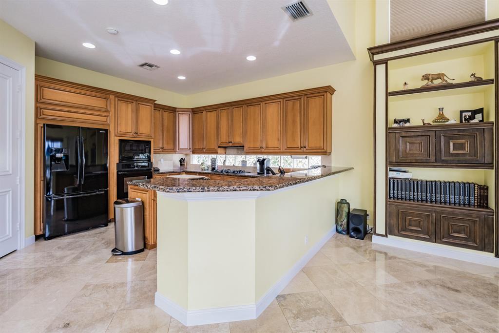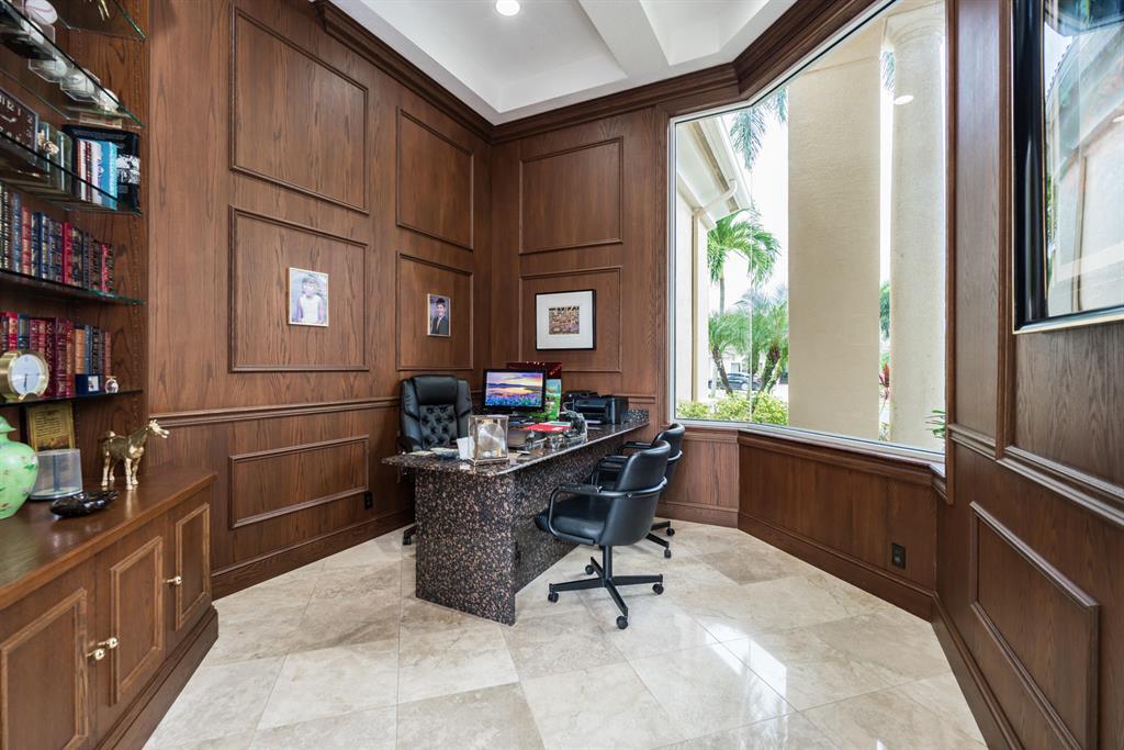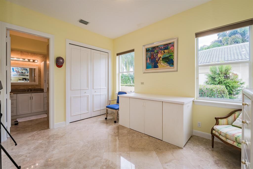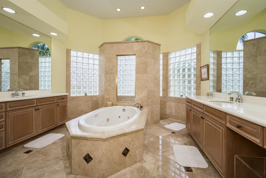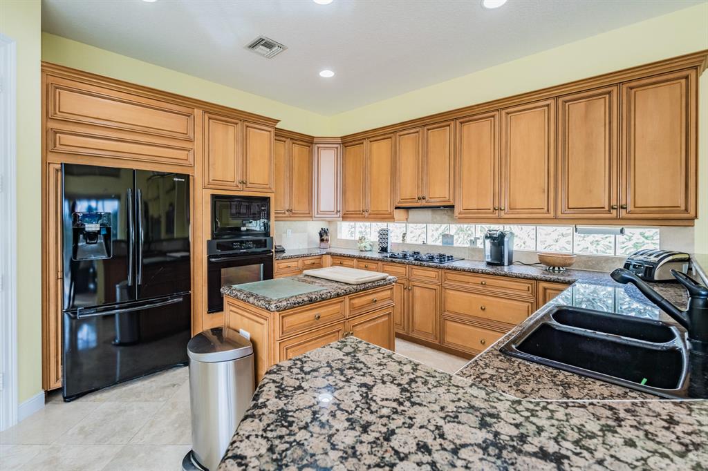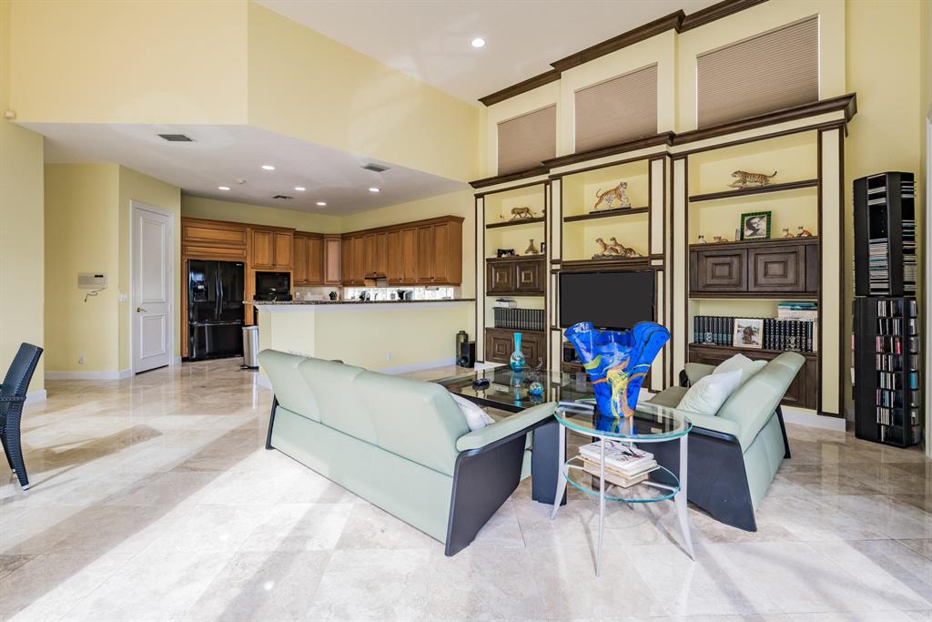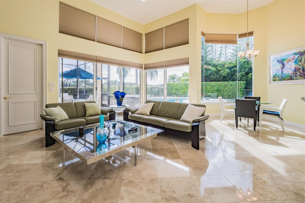 Amazing golf & lake views surround this exceptionally bright, luxurious, meticulously kept, 5BR/4.2BA + den + loft custom model home, located on one of the best lots in the the Egret Lakes community of The Club at Ibis. Desirable features of this split-plan home include a grand marble staircase and marble flooring, soaring 2-story ceilings, a floor-to-ceiling fireplace in the living room, eat-in kitchen with granite countertops and large pantry, a large master suite with wood-look Italian tile flooring, and an expansive paver patio with a granite summer kitchen and a resurfaced salt water pool which overlooks the 4th hole of the Legend Golf Course. Garage has tile flooring, granite countertops, and cabinets.