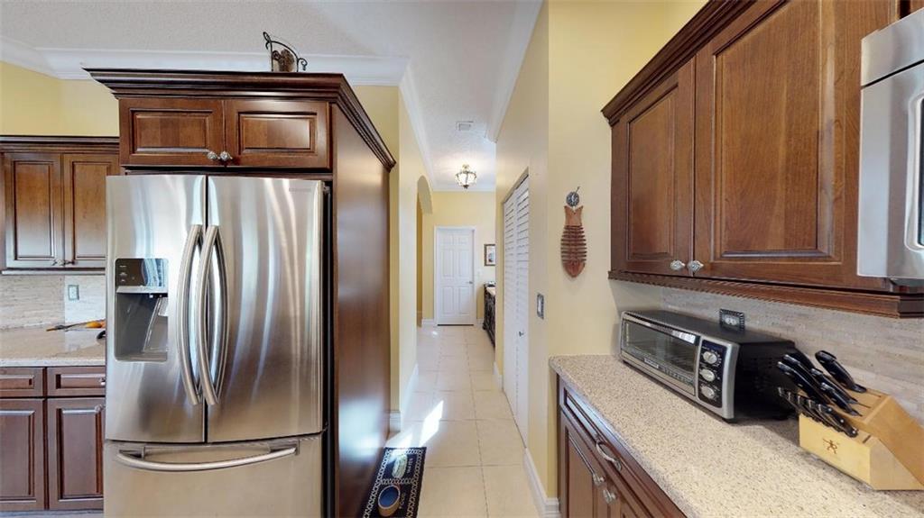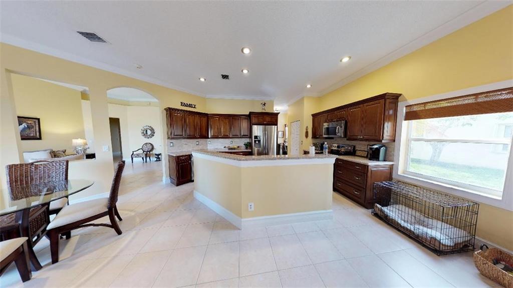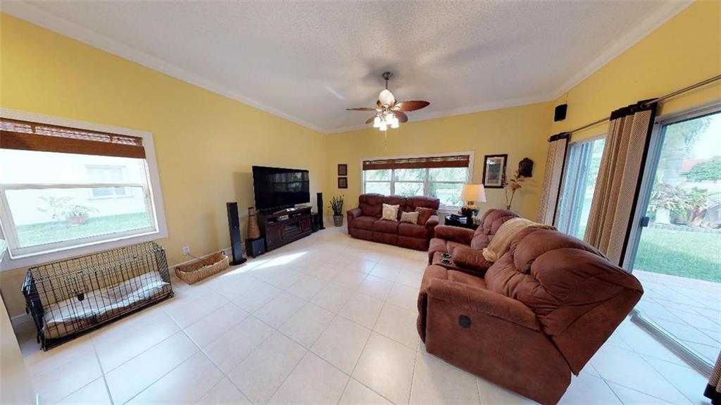 Captivating waterfront 3 bedroom, 2 baths with family room and 2 car garage. Beautiful new kitchen with stainless steel appliances, large his & her walk-in closets, accordion shutters, 5" wood crown molding, 6" wood baseboards, remodeled bathrooms, high ceilings, Culligan water filtration system and water softener throughout entire home, sprinkler system and security system. Turn key, move in ready. 3D tour available.