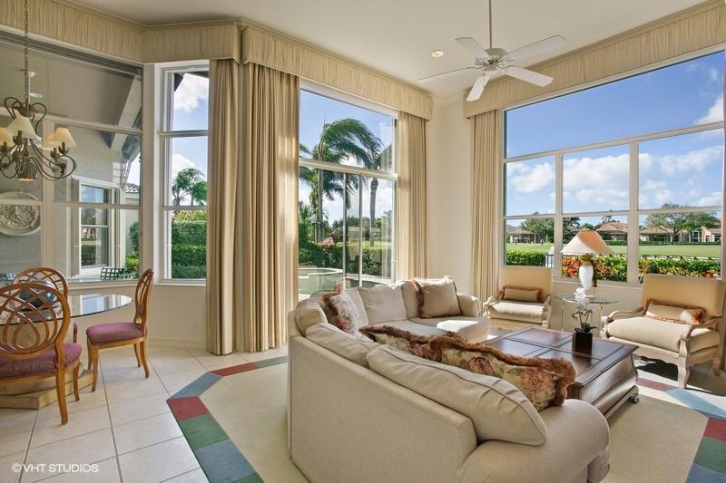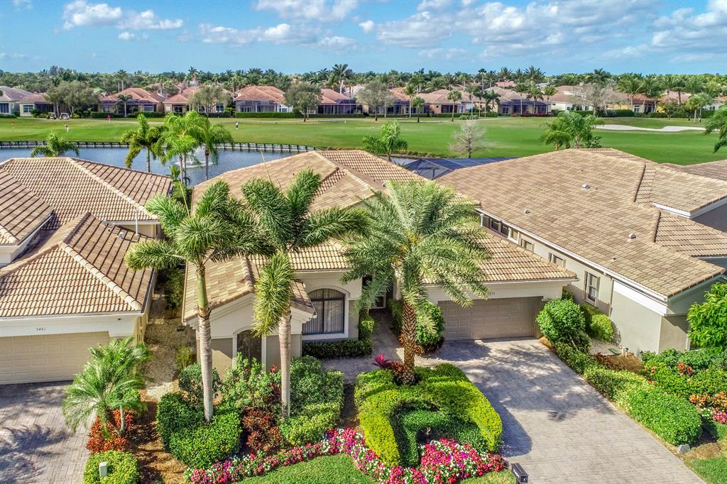THIS 3 BEDROOM PLUS DEN/ 3 BATH SINGLE FAMILY HOME OFFERING WATER AND GOLF COURSE VIEWS IS READY FOR A QUICK CLOSE! THE ALAINA F/P OFFERS A LARGE FORMAL ENTERTAINING AREA PLUS FAMILY ROOM WITH TONS OF UPGRADES INCLUDING CROWN MOLDINGS, DESIGNER INLAYS, COFFERED AND HIGH CEILINGS, SUN AWNING & A NEW GAS POOL HEATER . SPACIOUS WHITE KITCHEN HAS WHITE 42'' CABINETRY, AND LARGE ISLAND. TRIPLE SLIDERS OFFER WATER AND GREEN GOLF VIEWS WITHOUT ANY GOLF CART PATH NEARBY LARGE MASTER BEDROOM SUITE FEATURES TWO WALK-IN CLOSETS AND SITTING AREA AND LARGE MASTER BATH OFFERS DUAL VANITIES, HUGE WALK-IN SHOWER AND SEPARATE SOAKING TUB. TWO EXTRA GUEST ROOMS, EACH WITH THEIR OWN PRIVATE BATH OFFER GUESTS PRIVACY AND COMFORT. FULL ACCORDION SHUTTERS/SEPARATE GOLF CART GARAGE, REPLACED FRONT DOORS.