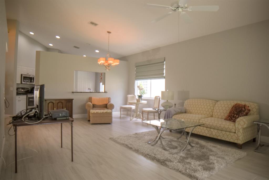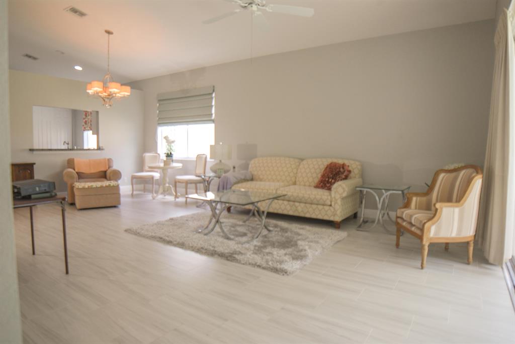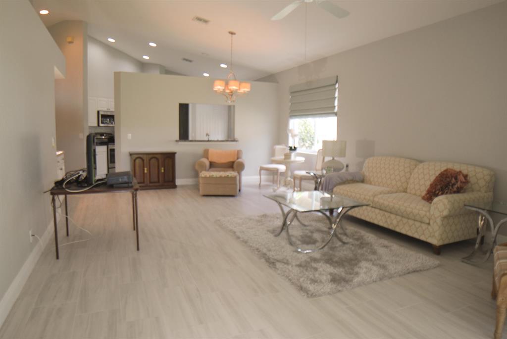 Gorgeous light and bright entirely updated 3 BR and 2BA home in the fabulous Bay Winds 55 plus community! New updated grey wood look tile really makes this home pop! Vaulted ceilings in all main areas and tray ceilings in the bedroom. Updated white kitchen with stainless appliances and granite. New master bathroom with separate step in shower and Jacuzzi tub with dual sinks. Neutral freshly painted home interior. Perfect covered patio for entertaining. Huge backyard and plenty of space for pets. 24 hour manned security gate in this gorgeous active 55 plus community! Har Tru tennis courts, bocci, mahjong, bridge, canasta, movies, two large heated pools, heated resistance pool, movie theater, card rooms, gym, library, conference and ballroom. Activities galore! HOA includes lawn and cable.