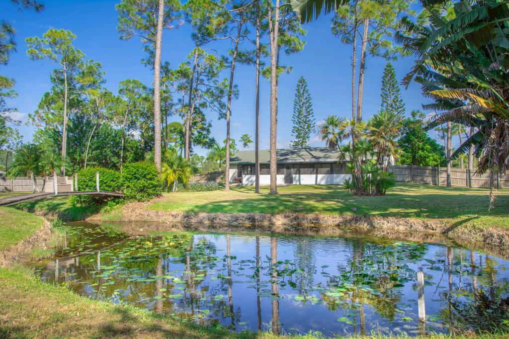 Beautifully maintained home located in Royal Palm Beach, on a 1 1/4 acre property. Remodeled Kitchen,diamond set tiled floors throughout the entire home ,New toilets,Custom cabinets in laundry room,Custom cabinets in the garage, Brand new 2018 hurricane rated garage door and motor,Well maintained front and backyard,Beautiful pond full of fish with a bridge to sit and enjoy the view of all your pine and palm trees that adorn the front and backyard. New Water Heater done in 2017. Water pump replaced in 2013 and Roof done in 2005