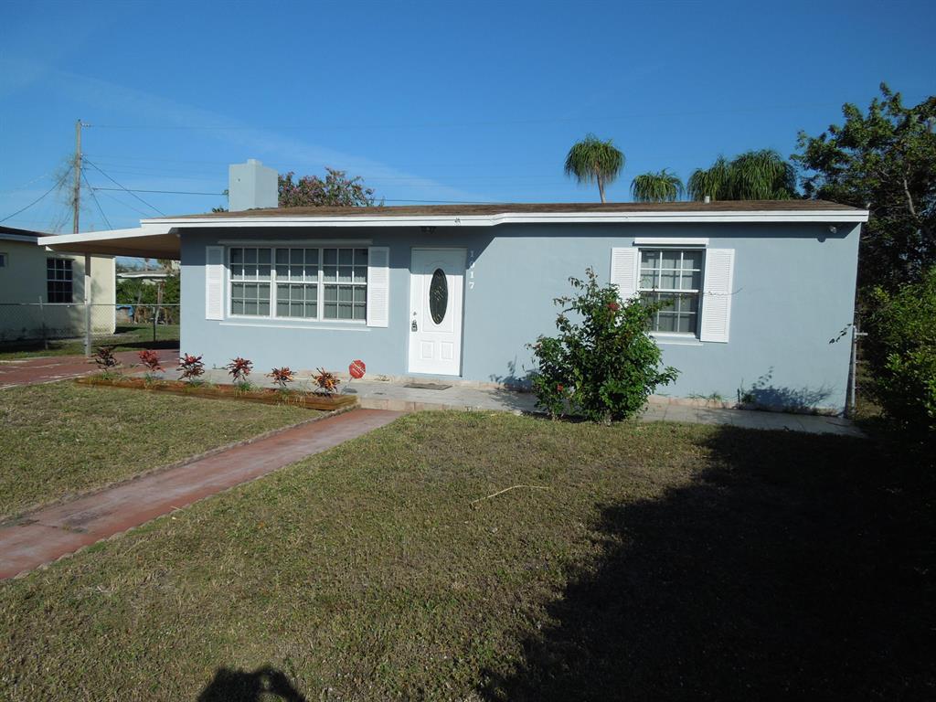 GREAT STARTER HOME AND NO HOA. Charming 3 bedroom 1 bath home, single family home with updated bathroom and kitchen The kitchen has brand new wooden cabinets. The yard is fully fenced and the windows are new. The community has a nice playground and with no HOA. Close to downtown, Palm Beach Outlet mall and beaches.