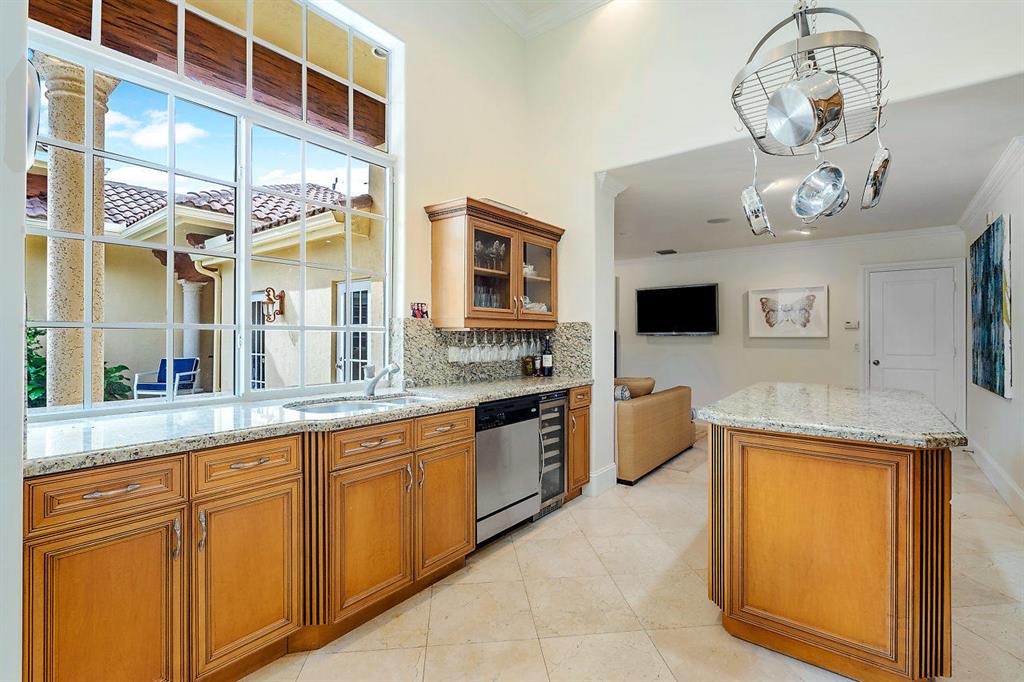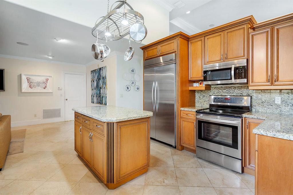 Steps to the Beach from this Redone Beauty that shows like a Model 4 bedrooms with the 4th now as a den with Built-ins (which can be easily converted to bedroom) Located on an oversized Southern Exposure lot. Features Impact Glass, High Ceilings, Marble floors, granite kitchen, Huge Master bedroom with an absolutely gorgeous bath. Great Outdoor living and entertainment with pool, spa and terrific patio area