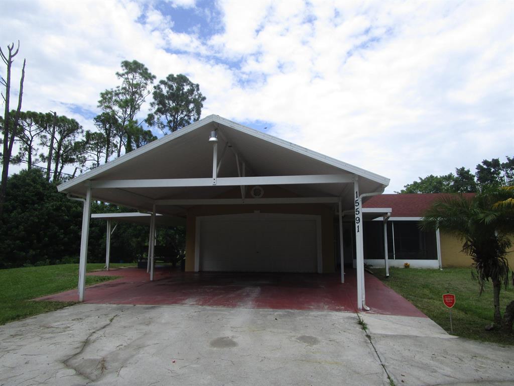 Easy to get to,right off paved road 1 acre+.Owner converted most of the garage to living area, but wall could be taken down to convert back to garage. Also carports for 3 vehicles. Kitchen beautifully redone as is master shower. Floors are tiled and look like bamboo flooring.A/c and water system new in 2018.Note huge rear enclosed patio full length of the house and the front patio is screened.