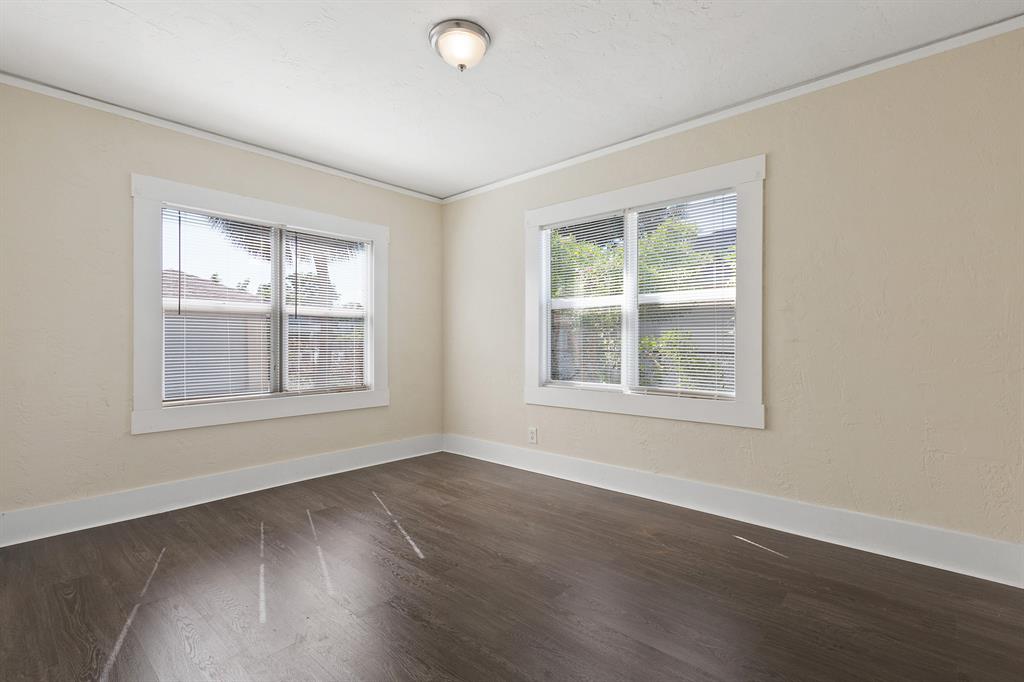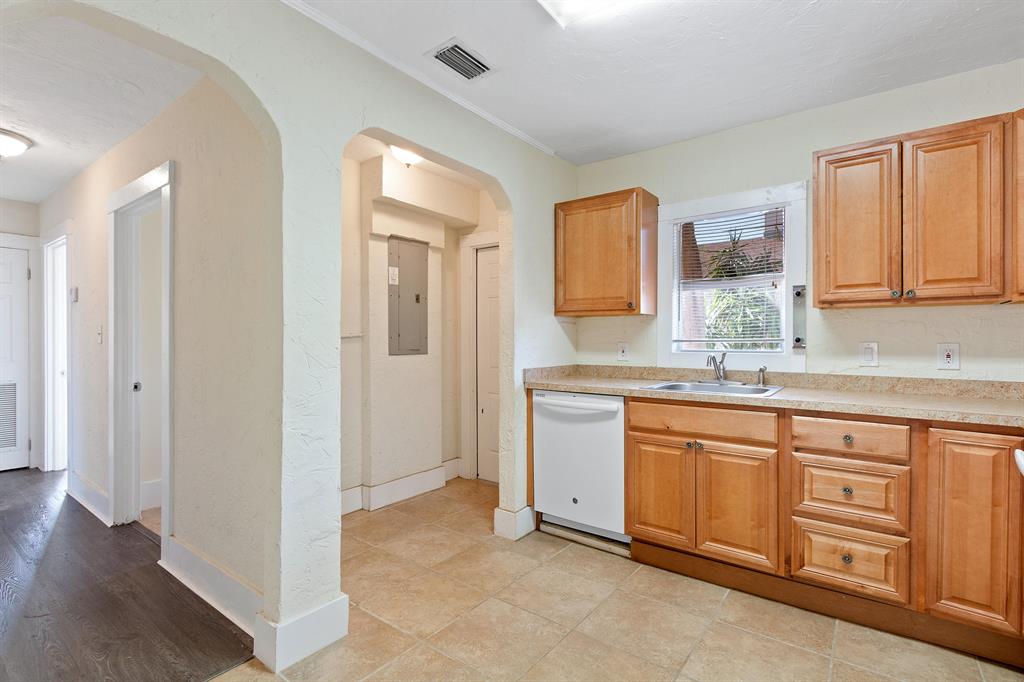 Charming, bright and open updated/remodeled home just minutes from the beach! This cozy home has new laminate flooring, tile, updated kitchen and bathroom, fireplace, large private long lot with fenced in yard. Drive in your car, boat or RV into your property for convenience or privacy. Separate one car garage with washer & dryer hook up. Located in hot Prospect Park area. Just minutes from City Place, Downtown, beaches and more! A true must see to appreciate and enjoy!
