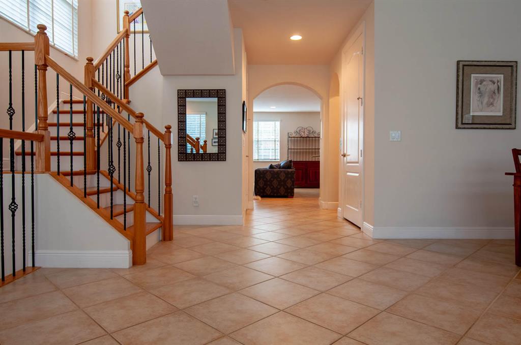 Mediterranean inspired three-story Aventino model. Abundance of natural light and beautiful architectural detail. Premium interior location within community. First floor bonus room (office, art or exercise studio, media or guest room) with half bath. Private covered lanai and walled/fenced yard. Second floor features open gourmet kitchen, breakfast area and family room with archways leading to dining room/living room and powder room. Third floor master suite with coffered ceiling and large walk-in closet, 6' Jacuzzi tub, separate shower, vanities and water closet. In addition, two bedrooms, full bath, linen closet and laundry room. ADT Security monitoring, impact resistant windows and doors. Rinnai tankless hot water heater, double convection oven, stove and dryer (all gas).