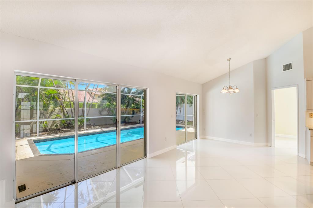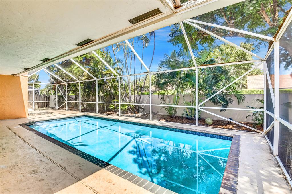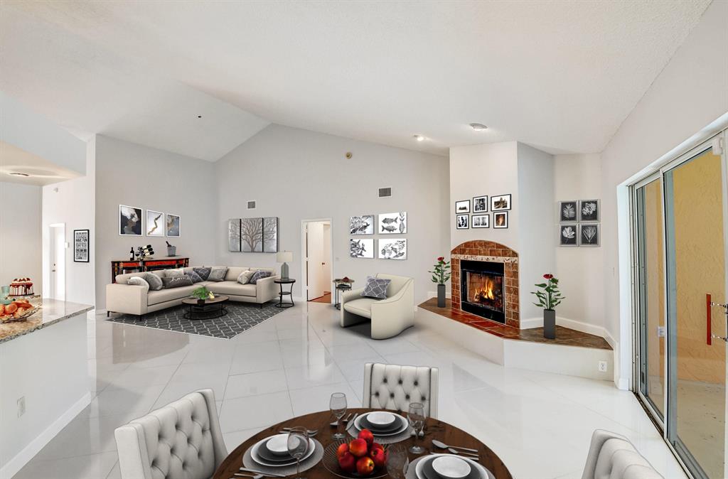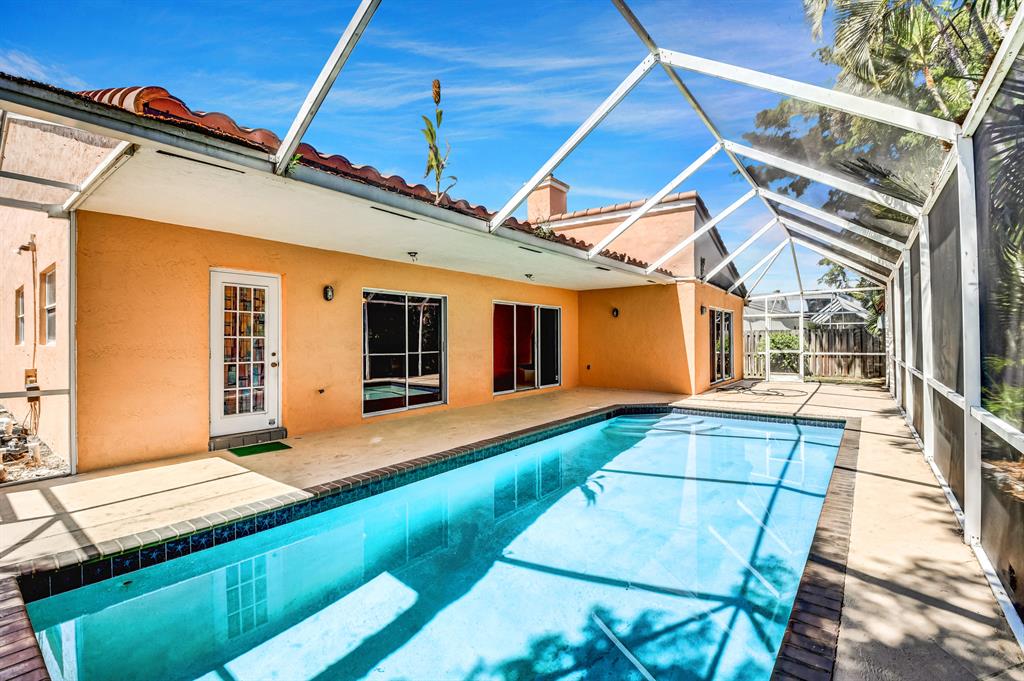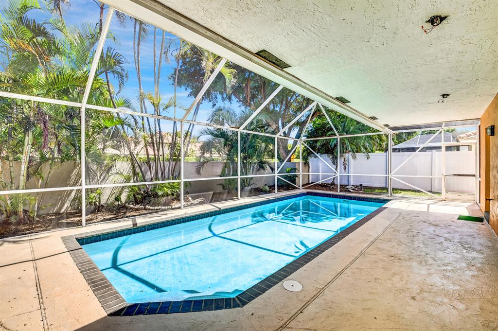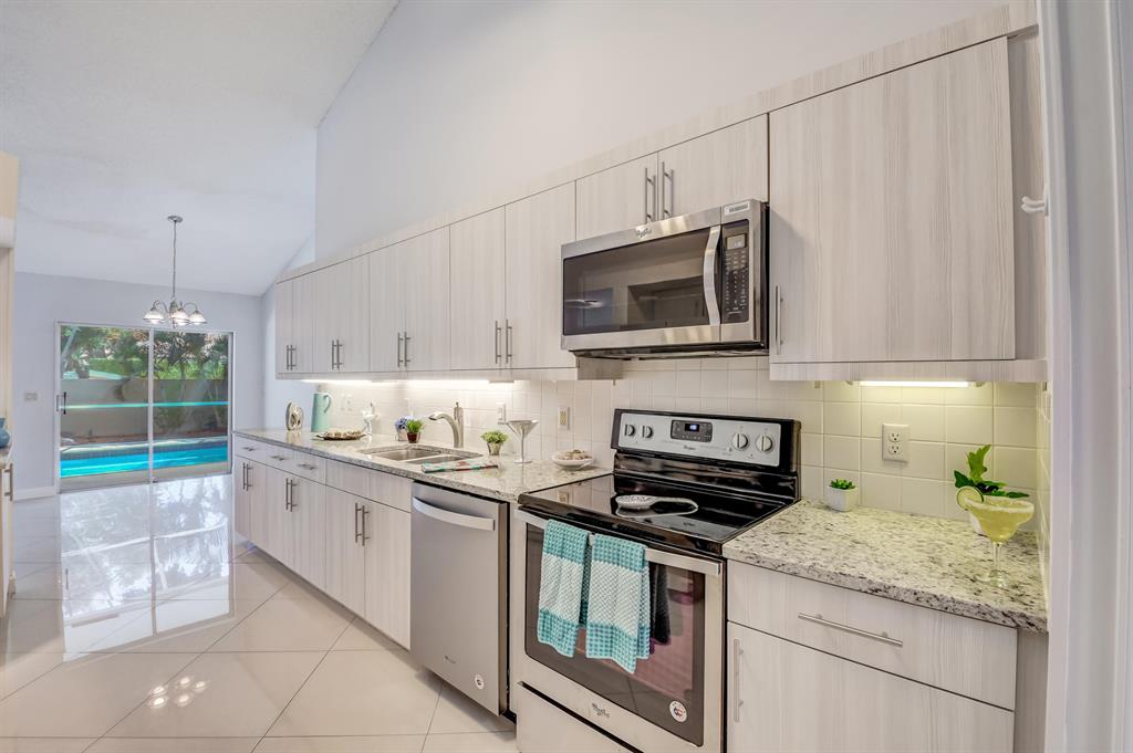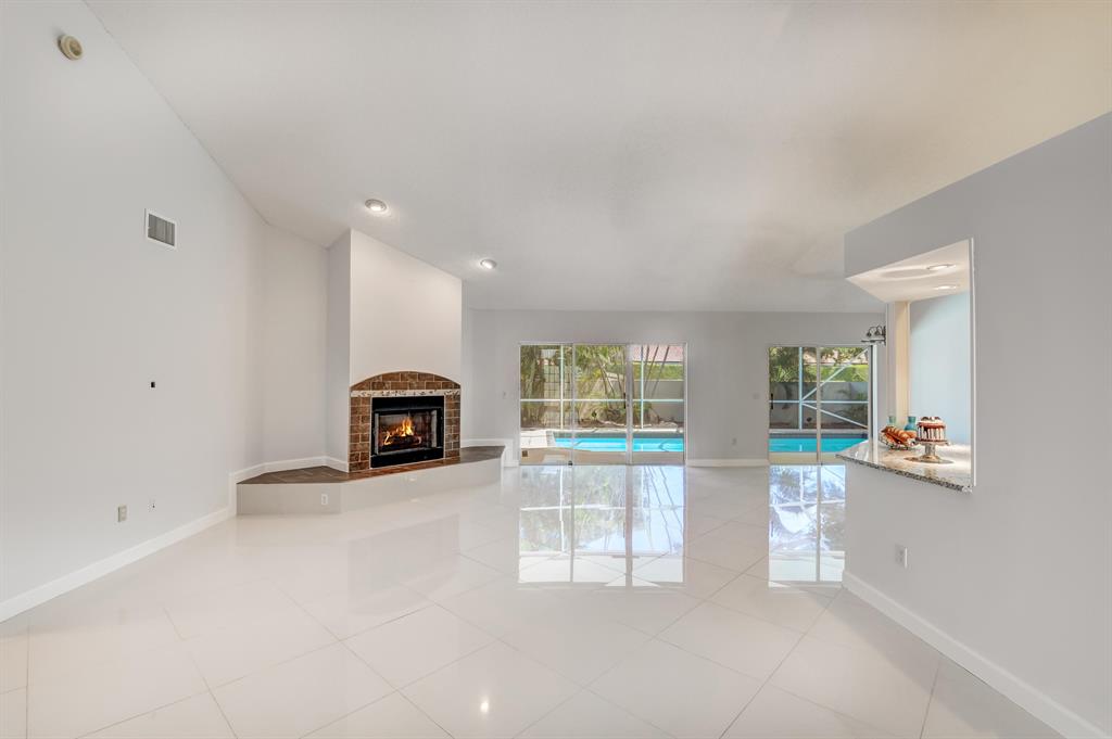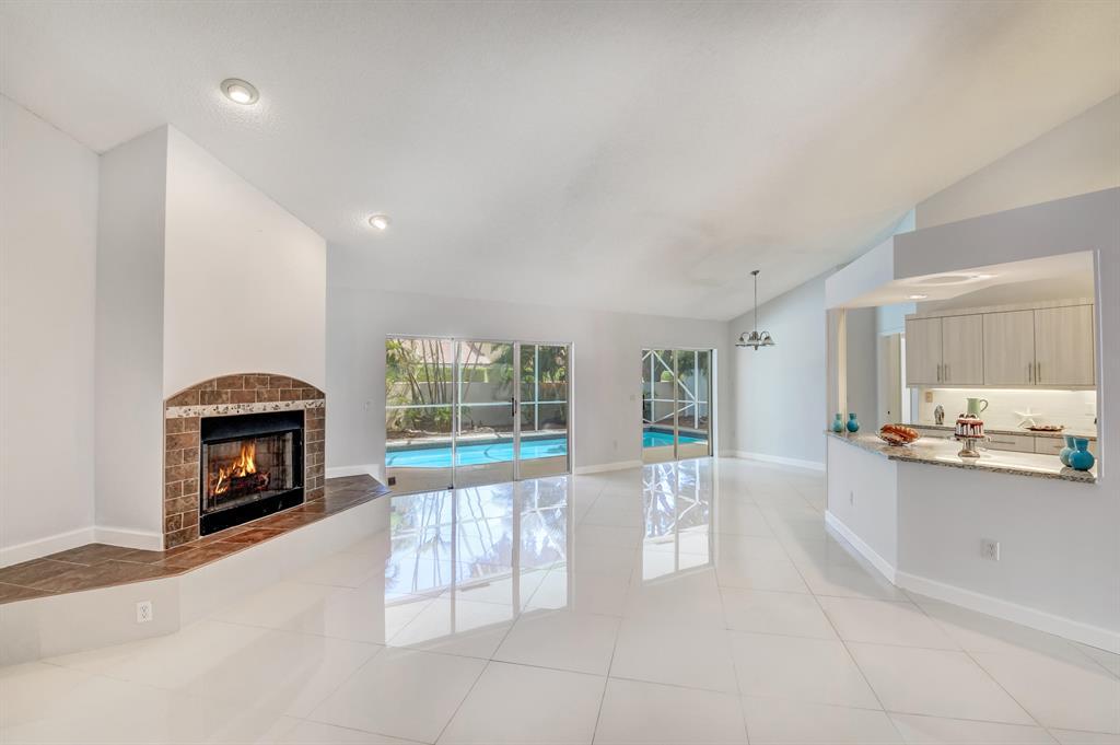 Immaculate 4 bedrooms 3 full baths & 2 car garage POOL home in a gated community in East Boca! Spacious, open concept floor plan, light & bright w/very high vaulted ceilings & tons of windows. Upon entering, enjoy the sense of openness, volume & space in this one story home. Split bedroom gives a lot of privacy. Beautiful porcelain tile in the living areas w/generous living spaces. The bedrooms all have wood laminate flooring. Updated kitchen with granite countertops, tile backsplash, new stainless appliances, tons of counter space and 2 pantries. Enjoy the charming wood burning fireplace in living room. All 3 bathrooms have been fabulously updated. Covered & screened in patio with large sparking pool. New S-Tile roof.