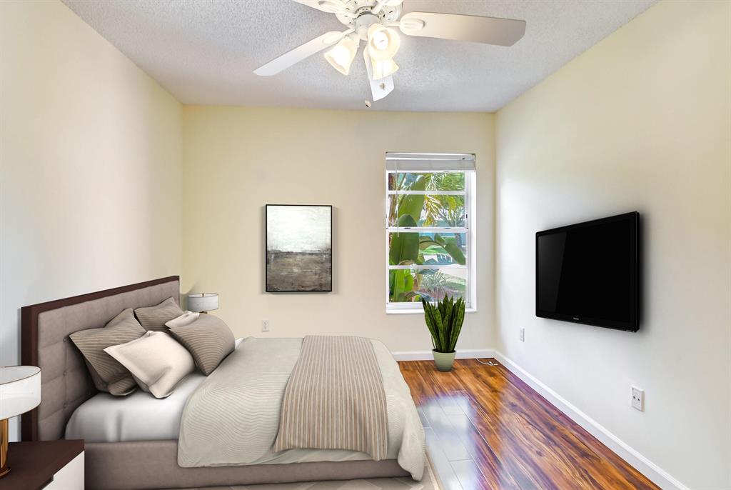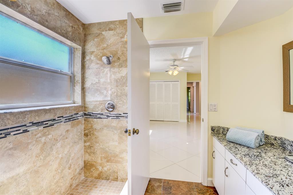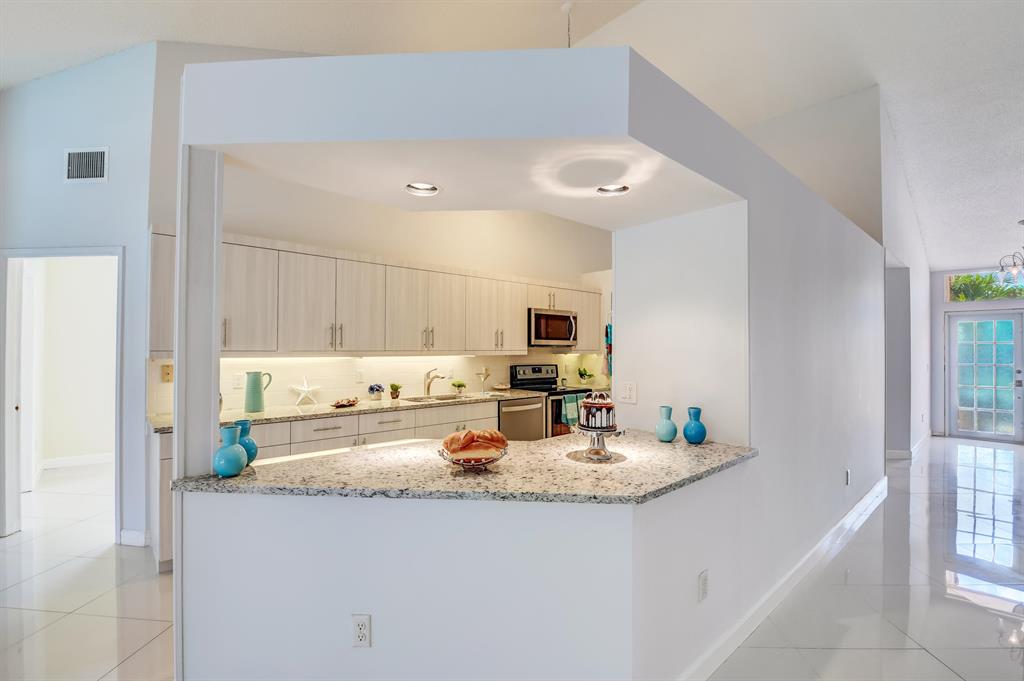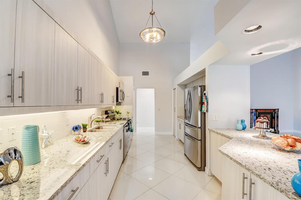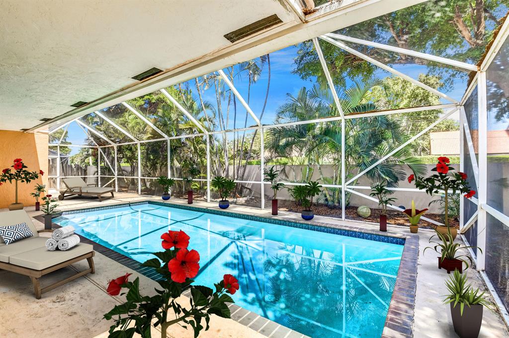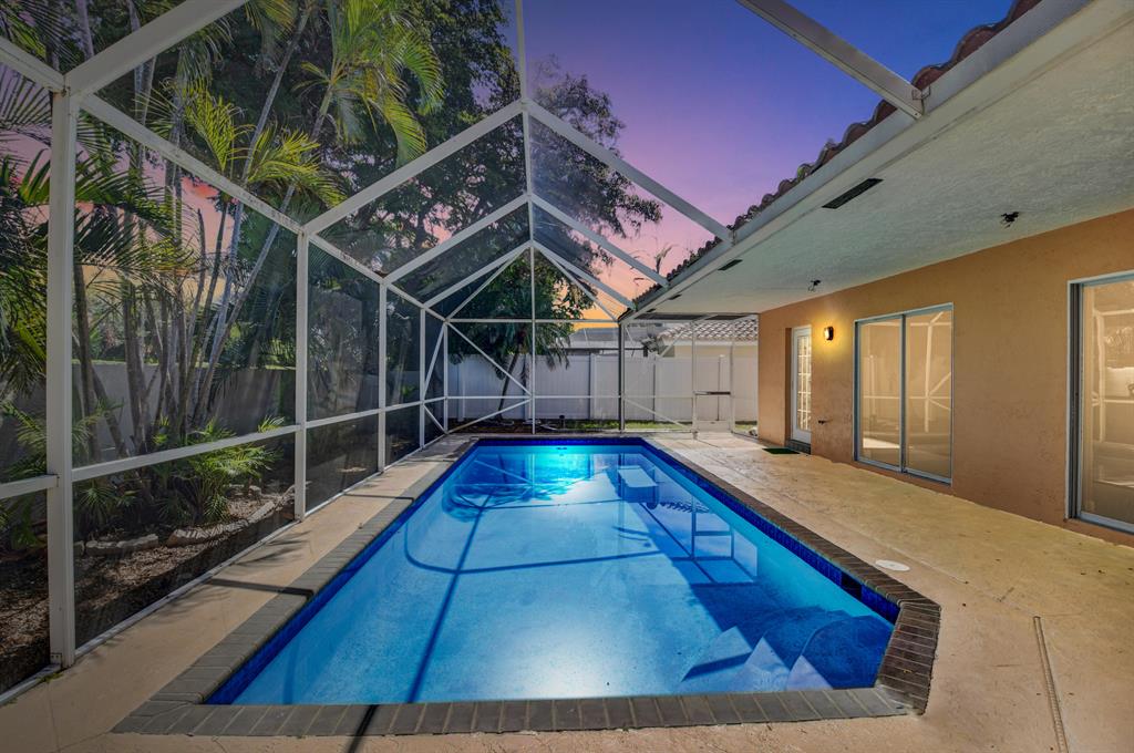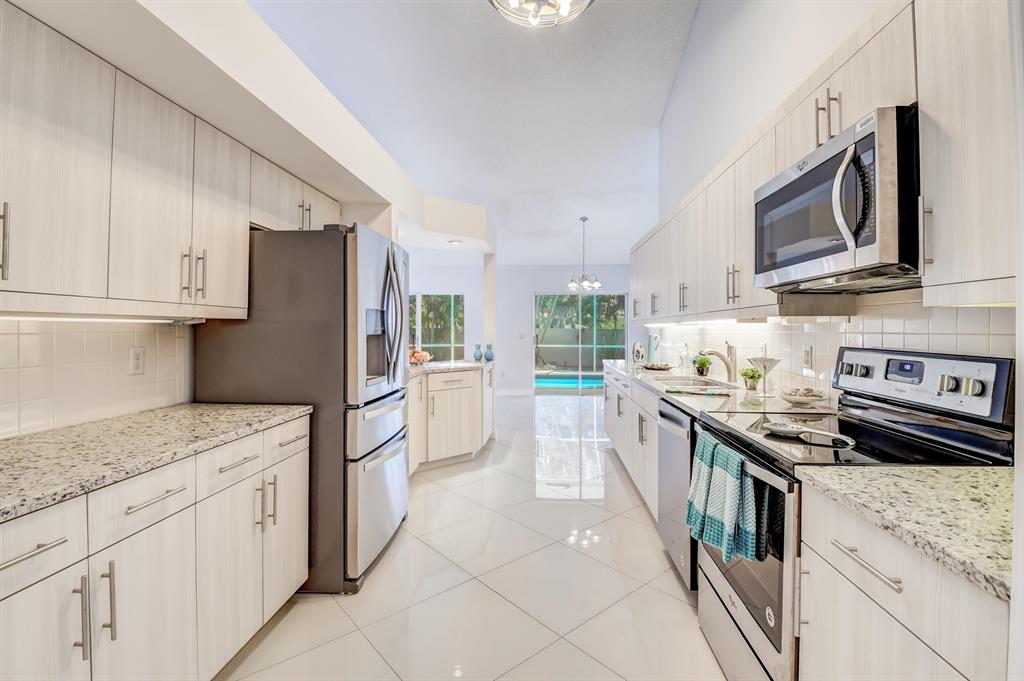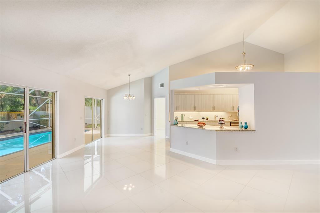 Immaculate 4 bedrooms 3 full baths & 2 car garage POOL home in a gated community in East Boca! Spacious, open concept floor plan, light & bright w/very high vaulted ceilings & tons of windows. Upon entering, enjoy the sense of openness, volume & space in this one story home. Split bedroom gives a lot of privacy. Beautiful porcelain tile in the living areas w/generous living spaces. The bedrooms all have wood laminate flooring. Updated kitchen with granite countertops, tile backsplash, new stainless appliances, tons of counter space and 2 pantries. Enjoy the charming wood burning fireplace in living room. All 3 bathrooms have been fabulously updated. Covered & screened in patio with large sparking pool. New S-Tile roof.