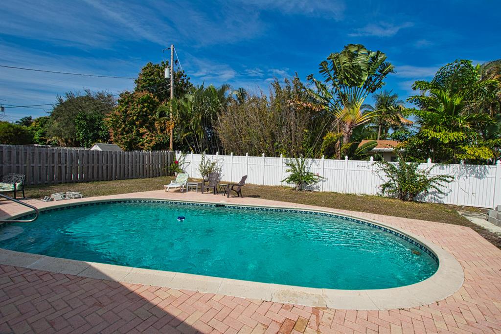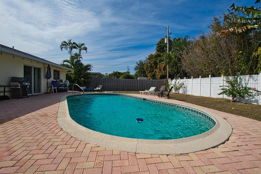 Perfect single family home with a pool for an investor or primary residence. 3 bedrooms, 2 baths and 1 car garage. Roof is only 6 months old. A/C is about 3 years old. Tile trough out in living room and bedrooms, updated bathrooms. Split floor plan. Totally fenced. Corner lot, circular driveway. House just needs little TLC to make your new home.Great A rated Boca schools. Almost walk distance to Mizner Park, bike to the beach, hard to find east Boca home just under $400K.