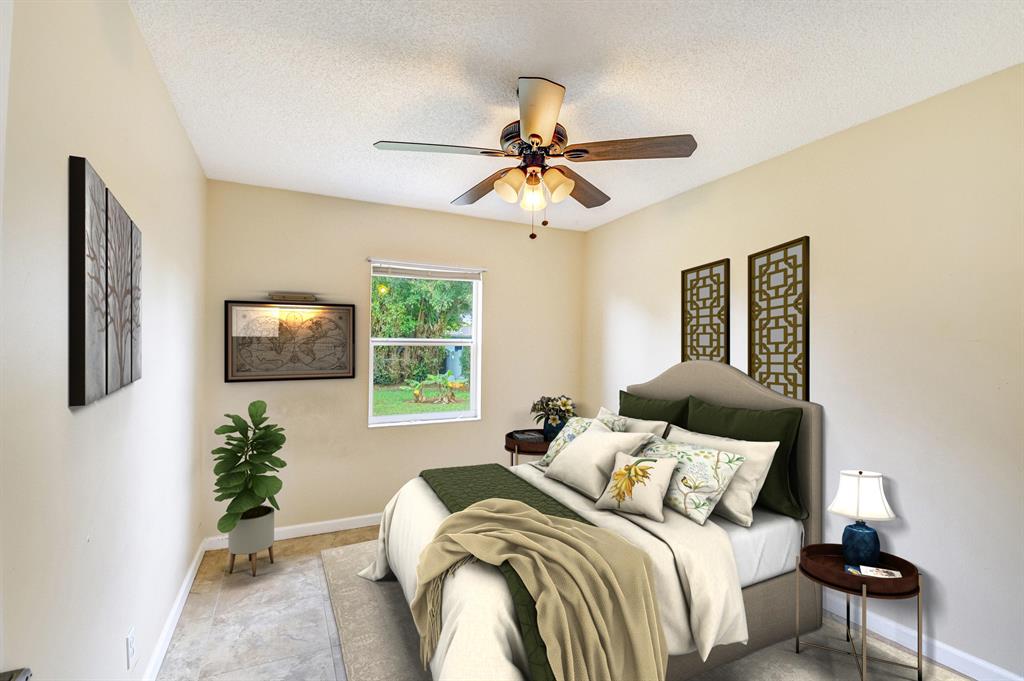 Wow!! Under $300k in Boca for a Single Family Home! 3 bedroom/2 bath Single family home with huge fenced in back yard. The Circular driveway adds to the great curb appeal. Super fancy custom Impact windows in the front that open a few interesting ways. Tiled throughout, open and bright w/split floor plan. Clean, in great shape and move in ready! Master bedroom has walk in closet. Huge and private fenced in backyard is 8250 square feet. Plenty of room for a pool. New roof from 2012. New A/c. Large utility room is for laundry but has much more space for extra storage. . . Impact glass in front/shutters for the other windows. Just a few steps away from the community pool, tennis and other amenities. Southwind Lakes/American Homes community has a low HOA of only $57 a month and features