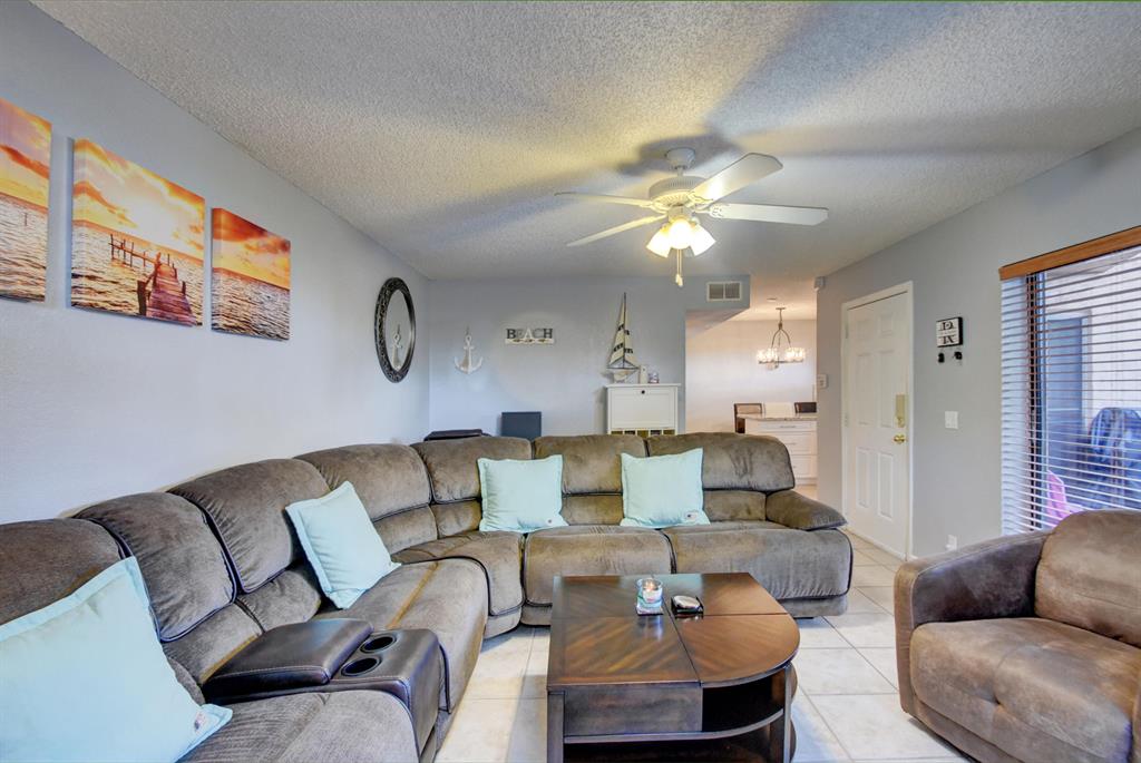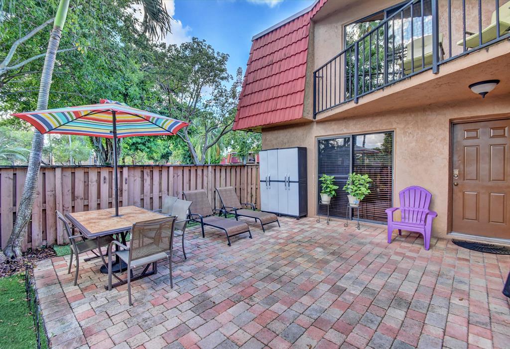 Beautifully updated and maintained 2 bedroom/2.5 bath townhome with terrific flow, light and open floor plan. FAMILY AND PET FRIENDLY. Large dogs okay! Private, fenced courtyard with pavers; great for barbecuing and parties; renovated custom kitchen with granite counters & great storage; downstairs guest bath plus bonus storage area under stairs; tiled first floor; new water heater. Community pool, 2 tennis courts, fitness center with sauna & steam; children's play area; media and party room; walking trails around nearby lake. Low HOA; no rental waiting period so investors welcome. Great central location with EZ access to Turnpike, I95, Town Center Mall, beaches, restaurants and shops. A-Rated schools. MOVE RIGHT IN !!!