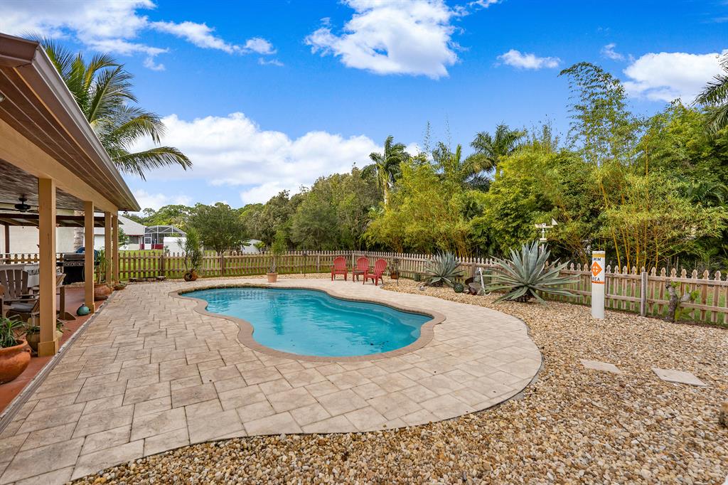 This is a completely updated 4 bedroom 2 bath pool home with a giant detached garage. The home sits on fully manicured 1.15 acre lot which is full fenced. The home also features two drive ways off of the paved privet road. The pool area is like your own oasis in the woods! The home has a new roof and A/C as well.This home is a must see!