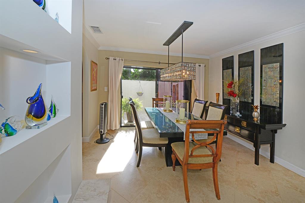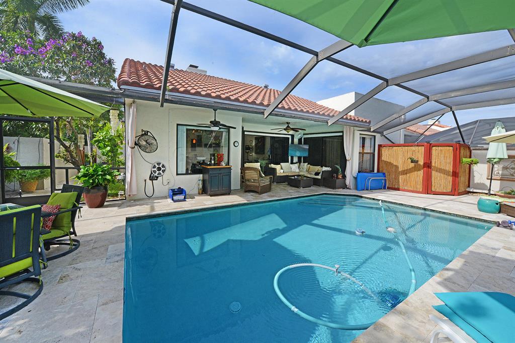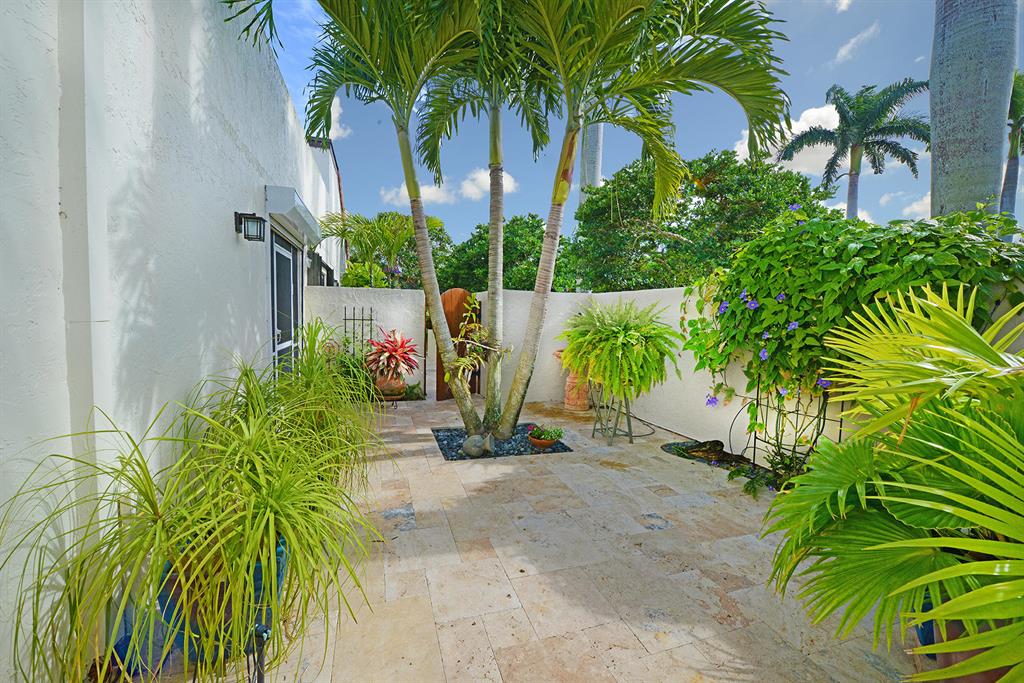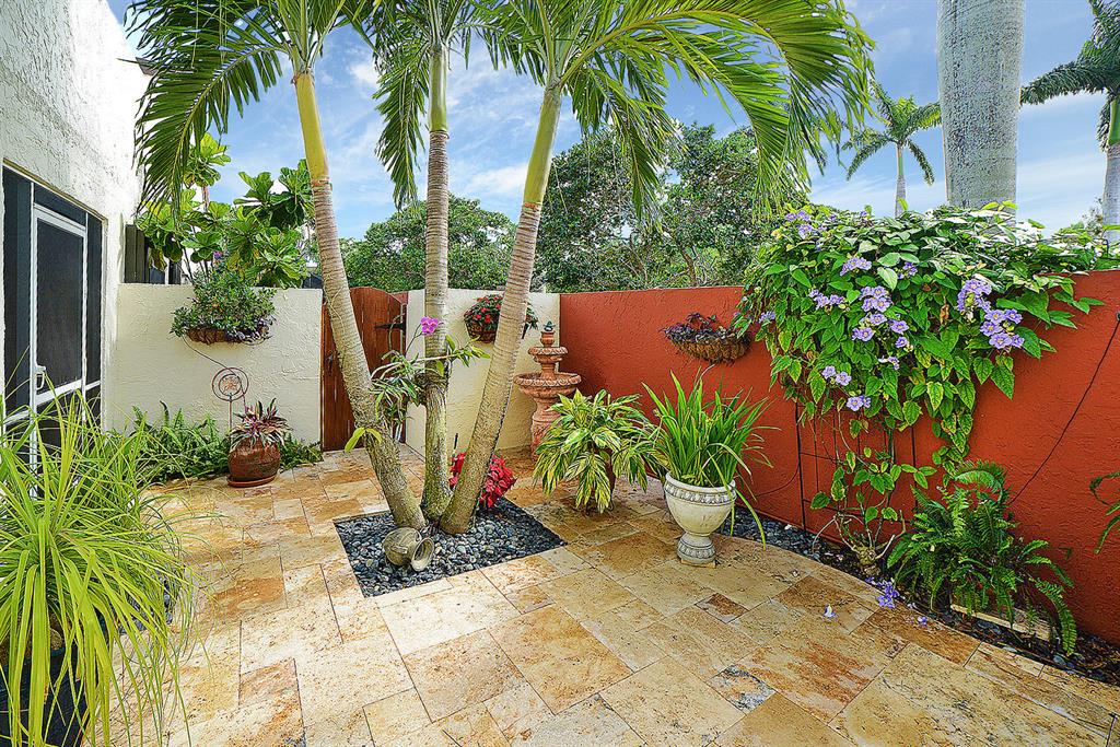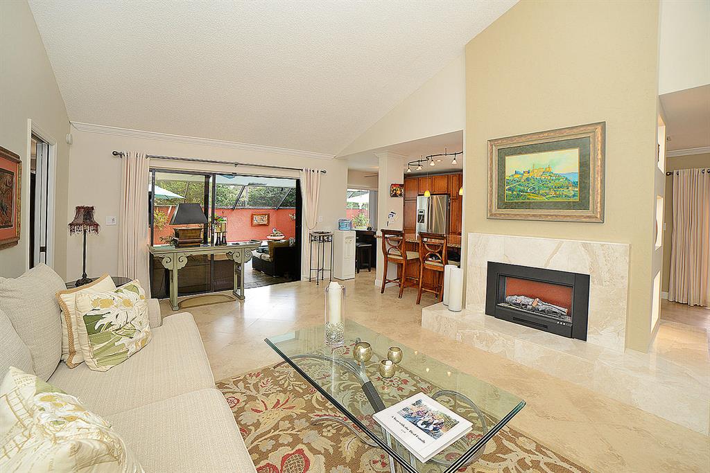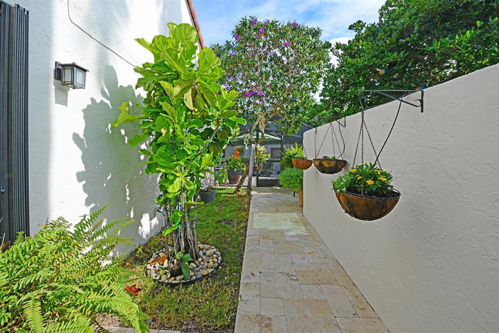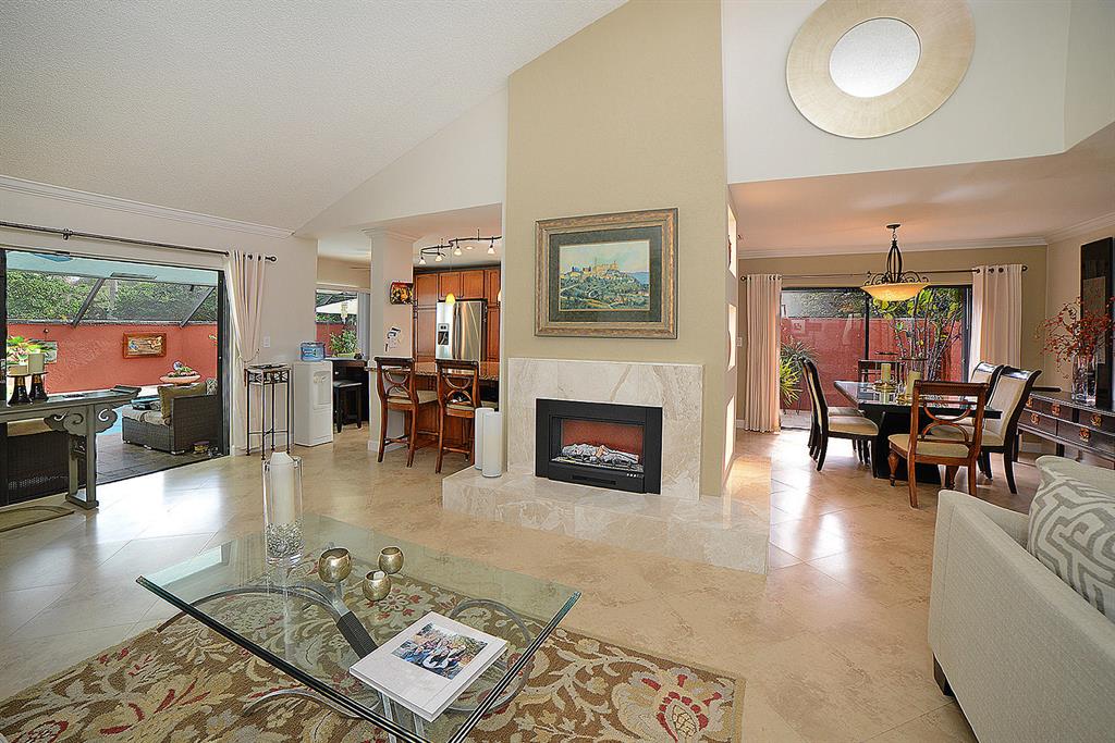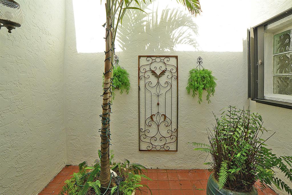 Updated single family--corner lot--2 bedroom 2 updated baths--2 car garage--light and airy--Location near Town Center--I-95 and Fl Turnpike--Gated & well maintained--low HOA fees--Med style home--w/ updated pool deck, newer (4 years) roof, A/C & pool heater--full travertine pavered deck and paths through 2 courtyards--Side access through courtyards--Kitchen Stainless steel--granite--fireplace--High ceilings--Pet Friendly--A rated schools--Live in a resort and be on vacation. Courtyard fountain, chandelier & extra fridge in garage DO NOT Convey