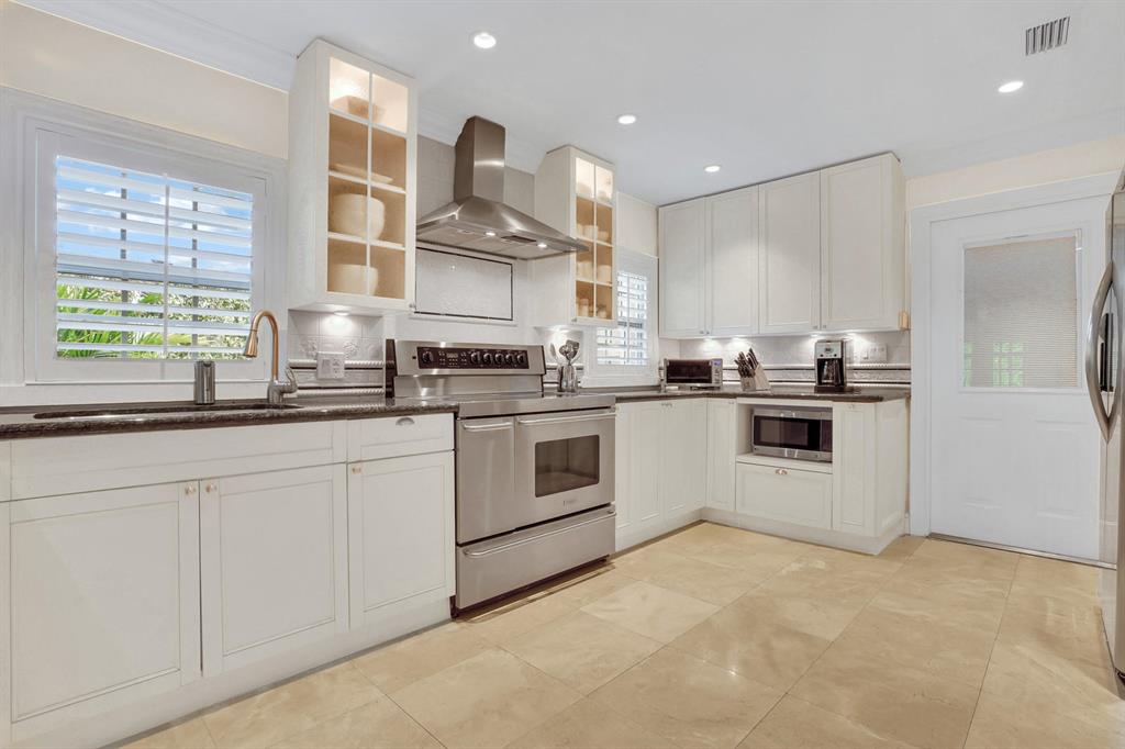 Meticulously maintained 2-story Tudor style home on huge lot! Completely gutted and renovated in 2013 with more upgrades since. Property has lots of lush landscaping, tremendous paver driveway, brand new accordian shutters, double-paned insulated windows, plantation shutters, 500+sf 2-car garage, 18''marble floors, bamboo floors, custom wood accented walls and stairs, crown molding and 5.25'' baseboards throughout. Screened-in 500sf patio and separate open air pool patio and sunbathing area. Huge front, back and side yards. French doors to patio, custom stone fireplace wall, operational fireplace, solid maple cabinets, marble master bath, alarm system, central vac, landscape lighting, 2 huge attics, media room and excellent layout. Some furniture negotiable, see attachment for complete lis