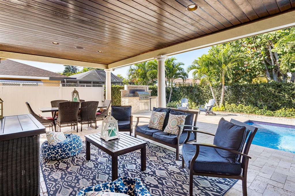 Rare opportunity to find the perfect house in one of East Boca's most desirable locations ''Boca Square''. This gem sits on one of the best streets and is within minutes to the beach, Mizner Park, Town Center Mall, tons of restaurants, Publix, and most of all zoned for what most would say are the best A rated schools around! This house has far to many features to list but some include; circular driveway, professionally landscaped, travertine flooring, newer kitchen & bathrooms, 8 year new roof, 5 year new salt water pool with a travertine deck, a stunning huge 33x13 covered back patio with tongue and groove ceilings, a custom built in grill, and full hurricane protection between impact windows and accordion shutters. The back yard feels like you are in your own tropical paradise!
