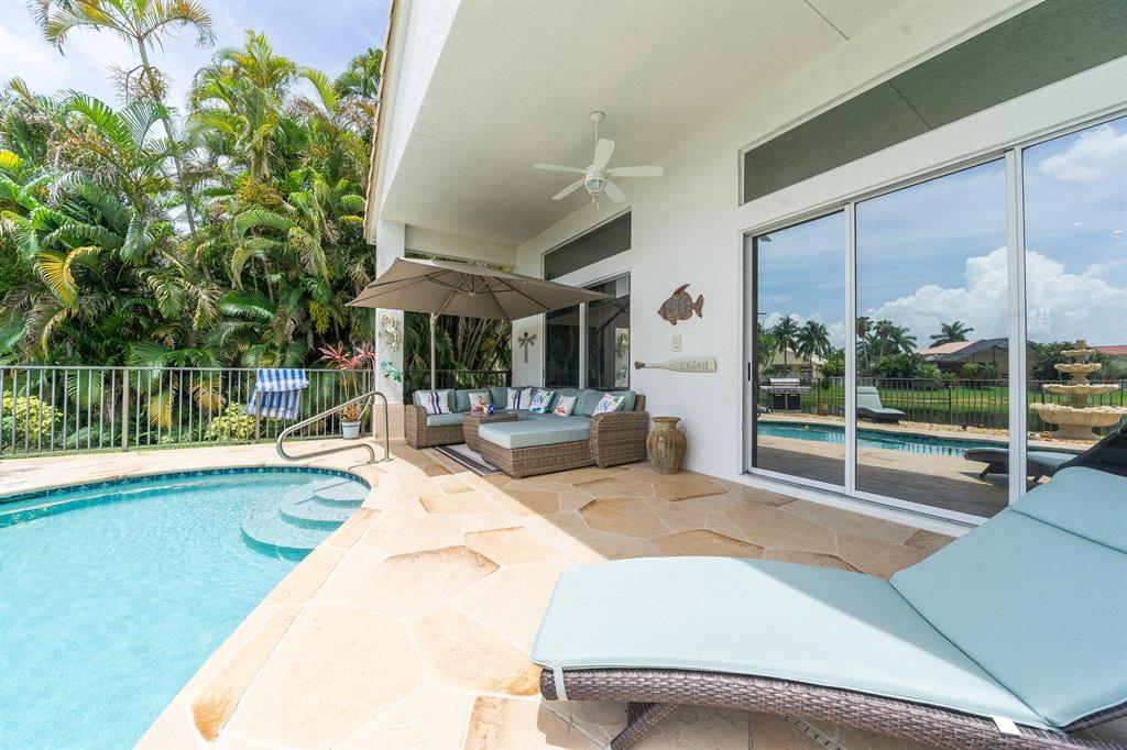 *Contemporary Designer Updates + Lakefront oasis!! 3 direction views-including long lake view*Salt water pool*Covered patio*Fenced-in + very oversized yard.* Open-concept Kitchen-Family Room plus separate living room*Tile in living areas + laminate-bedrooms*Baths: Recently Updated with tile + granite*Recently Updated Kitchen: Contemporary granite+ cabinets + stainless steel appliances*Gorgeous landscaping-curb appeal*Soaring volume ceilings*Multi-million $ Water-Fall-Staffed Community Entrance+Clubhouse+Tennis+Resort Pool+Fiber-To-The-Home-High-Speed-Internet*MUST SEE-One of finest+meticulous Boca Isles homes!