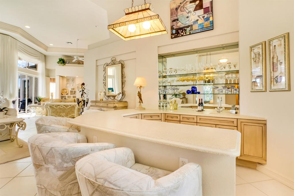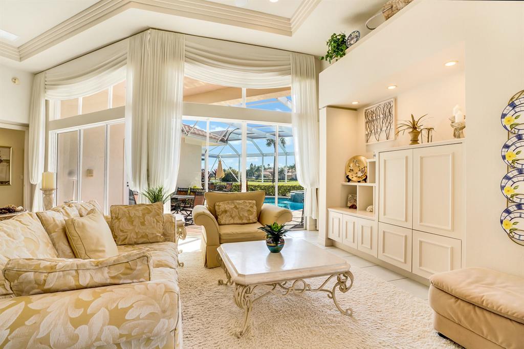Incredible price for desirable Ibis Isle! This customized great room home features soaring ceilings, a flexible and open floor plan and a wonderful location in Ibis. With an ideal Southern exposure, this home offers a REPLACED roof, customized wet bar, designer window treatments, full screen enclosure for the pool and spa and patio, much more. With 3BR/3BA+Den, this is a fabulous opportunity. Stainless appliances, custom sunken wet bar, neutral tones, designer touches throughout.