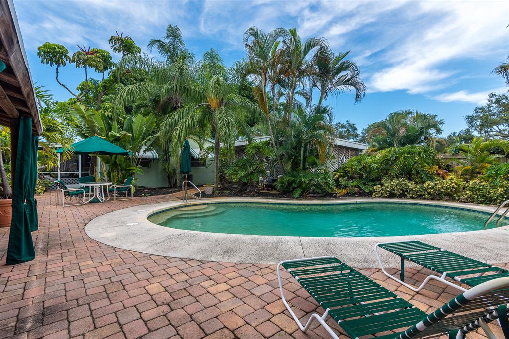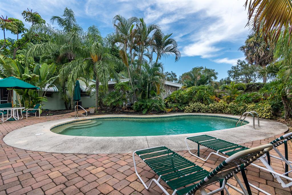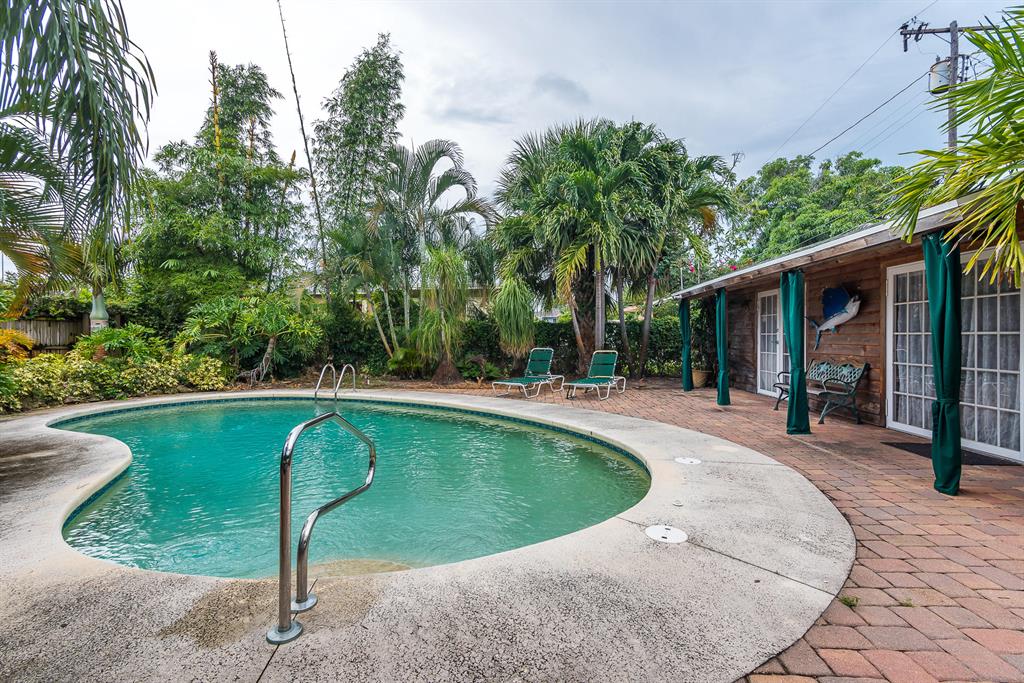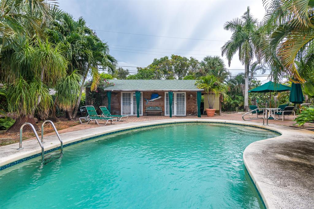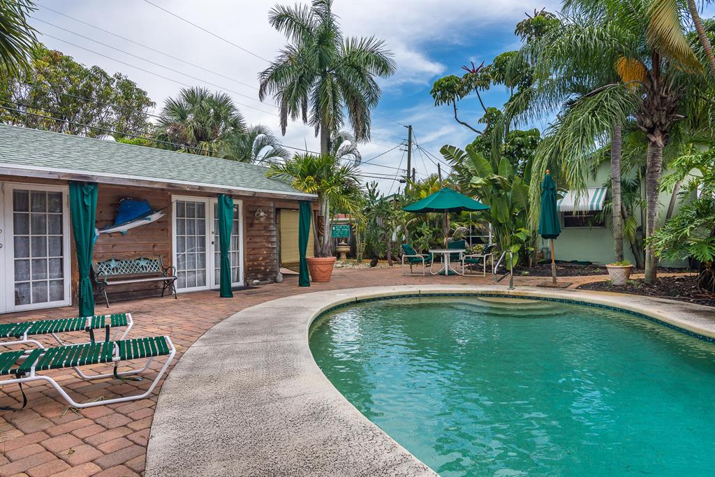Attention investors and end users. 2 separate properties in one large lot. Main house is a lovely 2/1 and rental house is beautiful updated 1/1 with extra outdoor living space. Live in the main house and rent out the cottage for extra income. Extra half bathroom located by heated pool. Easy access to 95, airport and downtown WPB. Great commuters property. No HOA! House sold ''As IS''