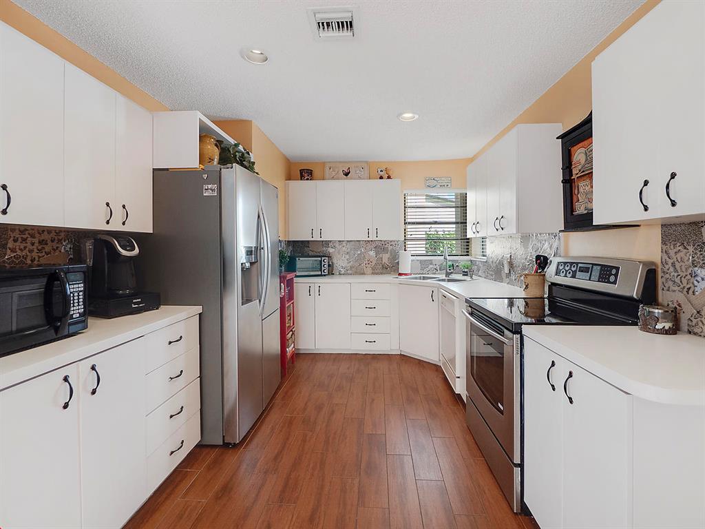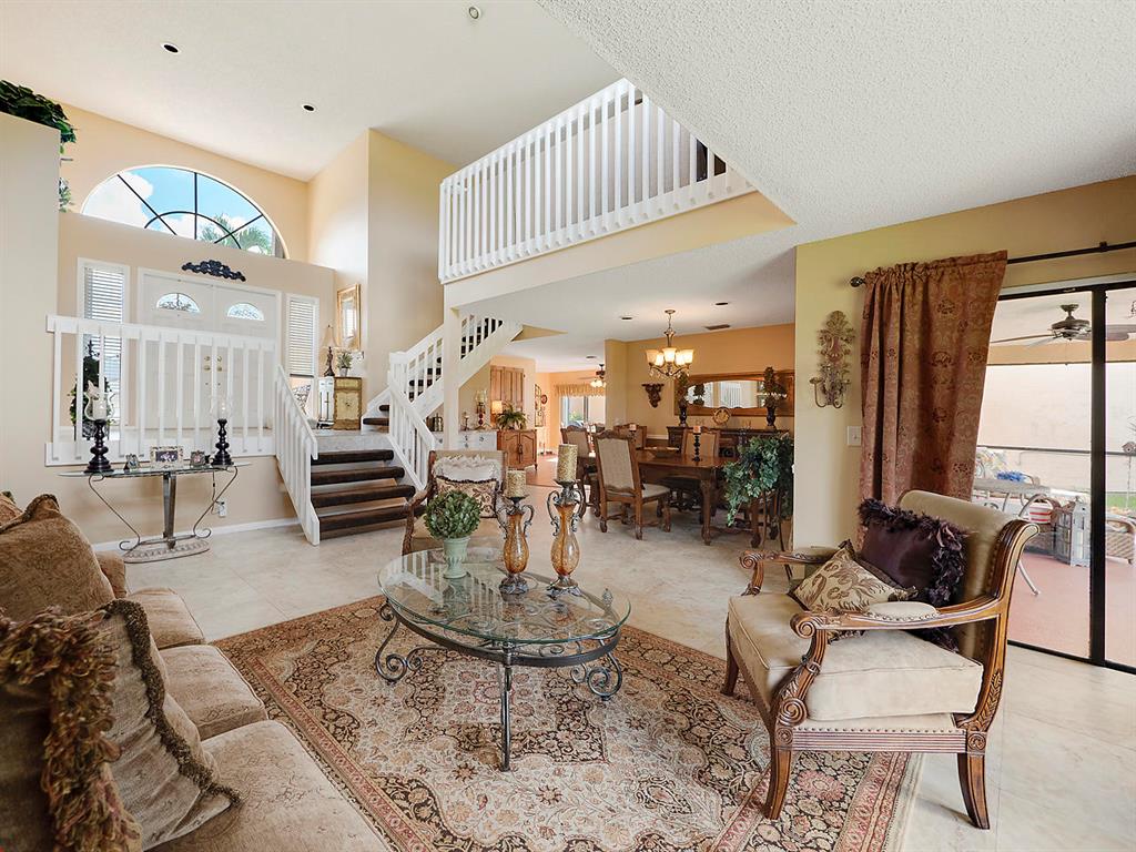 Fabulous home in rarely available Wedgwood Estates! Beautiful multi-level home with a breathtaking view to the south and north. This 3 bedroom 2 1/2 bath is a decorator's dream with soaring ceilings. Home includes a new roof in 2006, many updates in the kitchen and bathrooms. Kitchen has white cabinets, a bar and large eat in area. Separate dining room!!! Refrigerator, washer and dryer are new within the last year. Floors updated recently. First floor master suite with dual sinks and his/her closets. Lovely powder room on the 1st floor with a darling pedestal sink. 2 spacious bedrooms upstairs with an open loft! Dual air conditioners updated in 2010 and 2015. This architectural dream is light and bright. Enjoy Florida nights on one of the two charming outside patios!!!