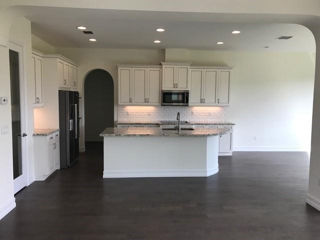 Gorgeous European stone accents make this a very impressive home that includes 4 bedrooms, 3.5 baths and a bright loft area that leads to a large covered balcony overlooking the backyard. Ground floor bedroom with on suite is perfect for overnight guests or an in law suite. Open floor plan makes this home perfect for entertaining.