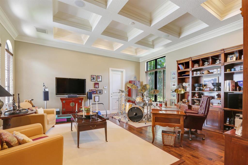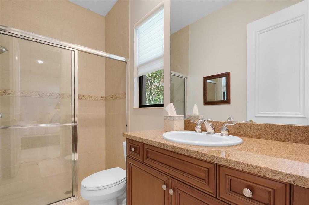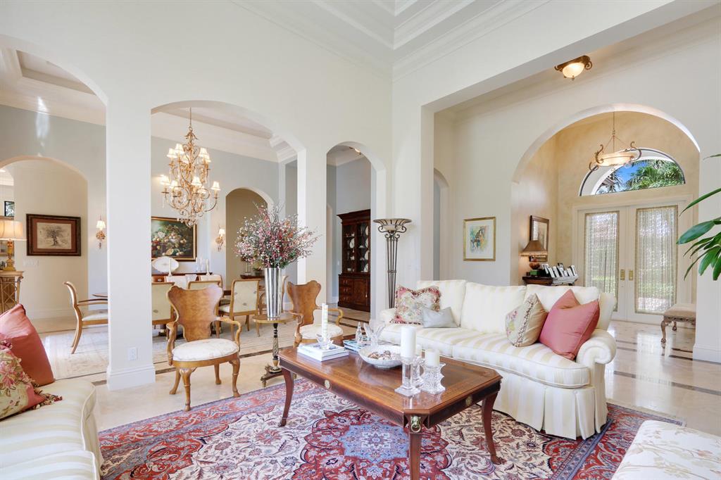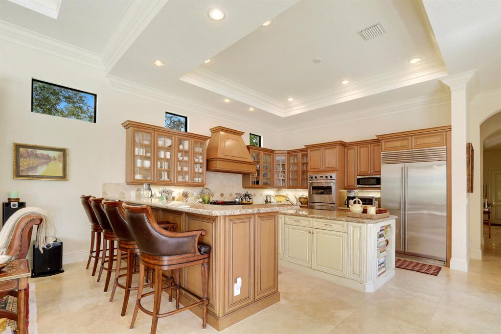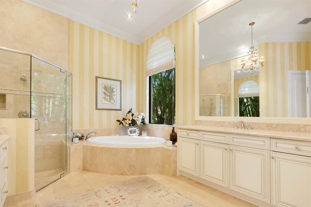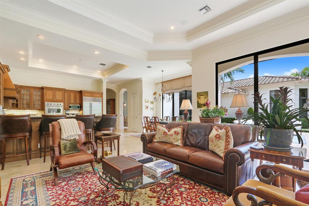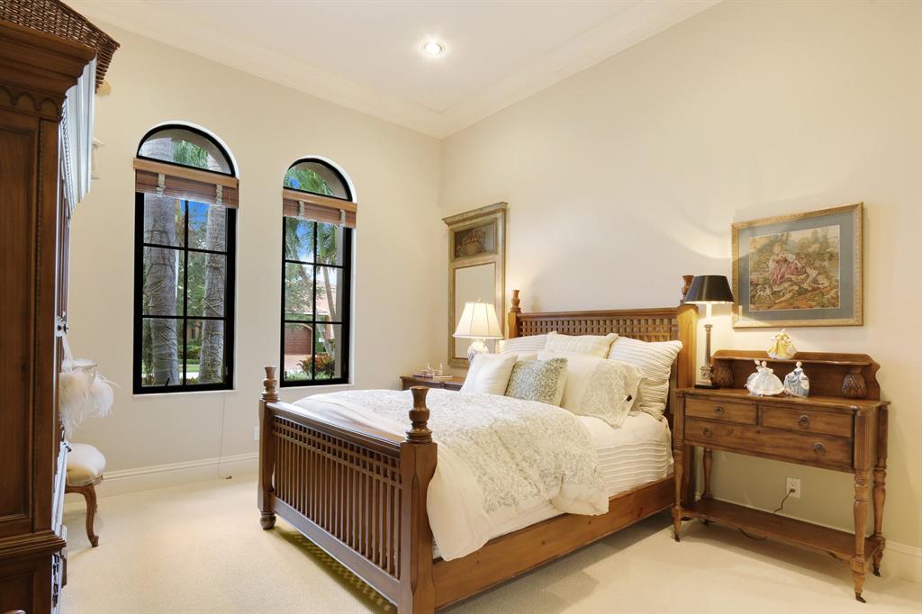 Quality and sophistication define the elegant style of this superb estate home. This Kenco-built ''Sonoma'' with a guest house boasts 4BR/5 Full, 2 Half BA's + an oversized Club Room. There is almost 5000 sq. ft. of living space. A spacious Guest House overlooks the spacious and serene pool and patio area. Top-of-the line surfaces, designer fabrics, high-end light fixtures, convey with this upgraded home. Enjoy his-and-hers baths in the master suite, a wine room, ''invisible corner'' windows in the family room, leading to the private oasis adorned with lush landscaping and overlooking water and golf vistas. Extensive faux finishes, marble flooring, elegant crown molding, Impact Glass all add to the splendor of this move-in perfect Ibis estate.
