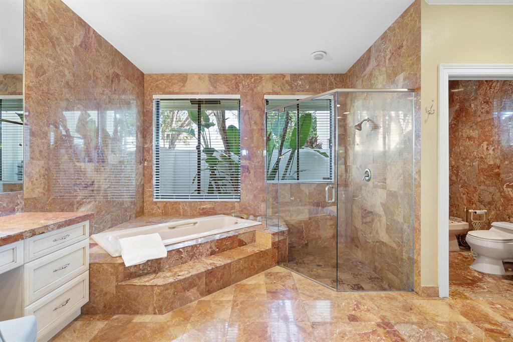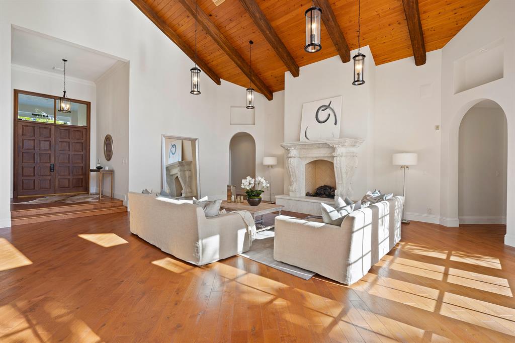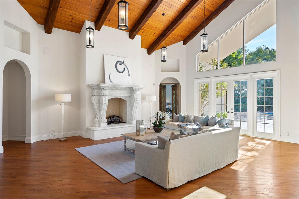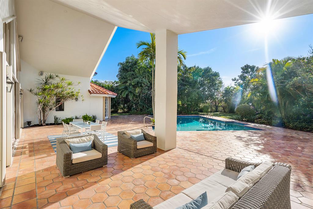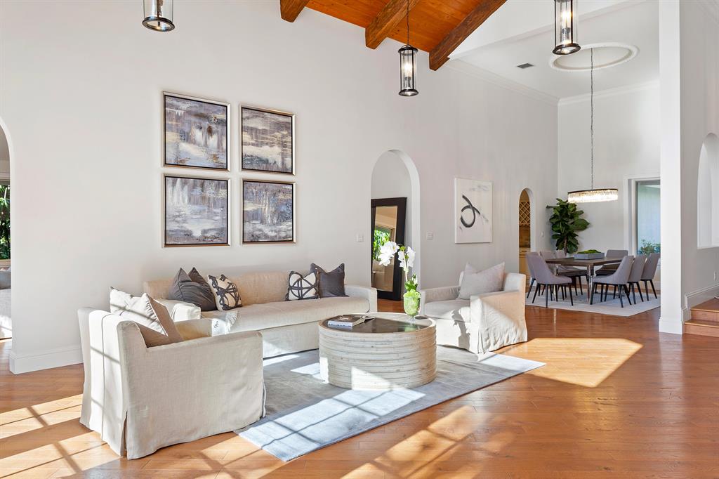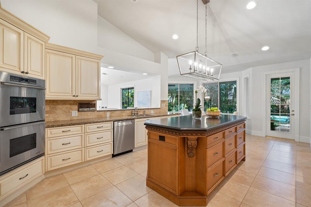 This fabulous custom home with new roof is sited on one of the largest lots (.68 +/- Acres) in the most desirable gated community in Central Boca Raton, Les Jardins. Double door entry leads to a large welcoming foyer and large Living/Great room w/ high vaulted wood beamed ceilings, gorgeous wood floors, spectacular hand carved stone fireplace and walls of French doors and windows looking out to the pool area and rear grounds and filling the home with natural light. The recently remodeled chef's kitchen w/ large center island and Viking gas cooktop is served by a huge walk in pantry & opens to the beautiful family room w/ French doors and pool views. The spectacular Master Suite includes large Master Bedroom w/ French doors to pool, large sitting room or private office and private gym.