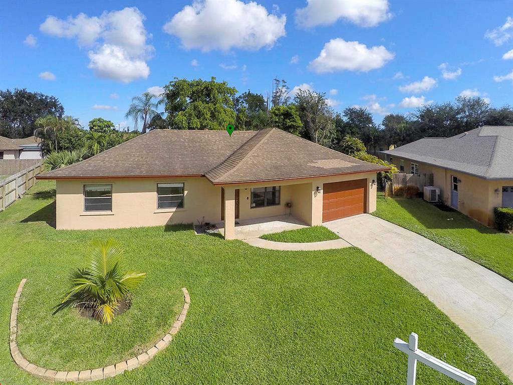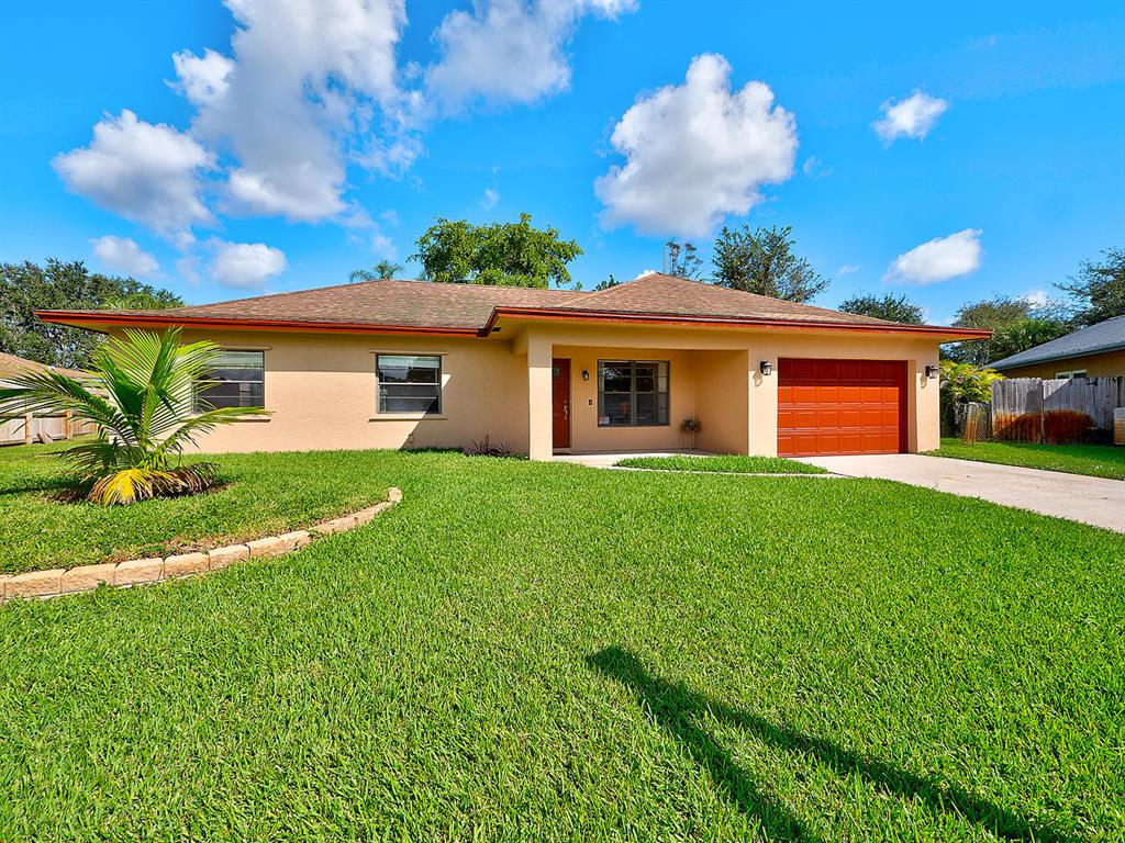 Nicely maintained 3 bedroom, 2 bathroom, 1.5 garage family home on a Cul-de-sac! It is located in the community of Timber Run, with a LOW yearly HOA, and on a HUGE lot (10,607sqft). Welcome inside, where there are high wood plank ceilings, freshly painted walls, ceiling fans, diagonal tiled floors, carpet in bedrooms and living area. There are windows every where and the bright natural light is one of its best features! The master bathroom was remodeled, including a wood cabinet and granite counter top. The gallery style kitchen, features a breakfast dining area, which overlooks out to the screened in patio and spacious fenced in back yard. The patio offers access to a cabana bathroom, with a tub/ shower combo - perfect for entertaining and a pool in the yard!