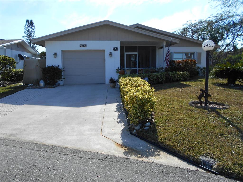 Cul de sac location, large enclosed patio; & to the west golf course. 12th hole.Updated kitchen w/Granite counters & breakfast bar. Newer appliances, tiled foyer,k, & dining area, patios. Laminate flooring, carpet in living room. Skylight newer, staircase attic, bath cabs updated, closet organizers, windows in 2 baths, golf cart pad & driveway expanded for 2 cars. there is a patio encl. @ front entry. .Alarm system, hurricane gar. door. Heated comm. pool. accord. shutters. Minutes to post office, grocery, misc. shops, & gas station.
