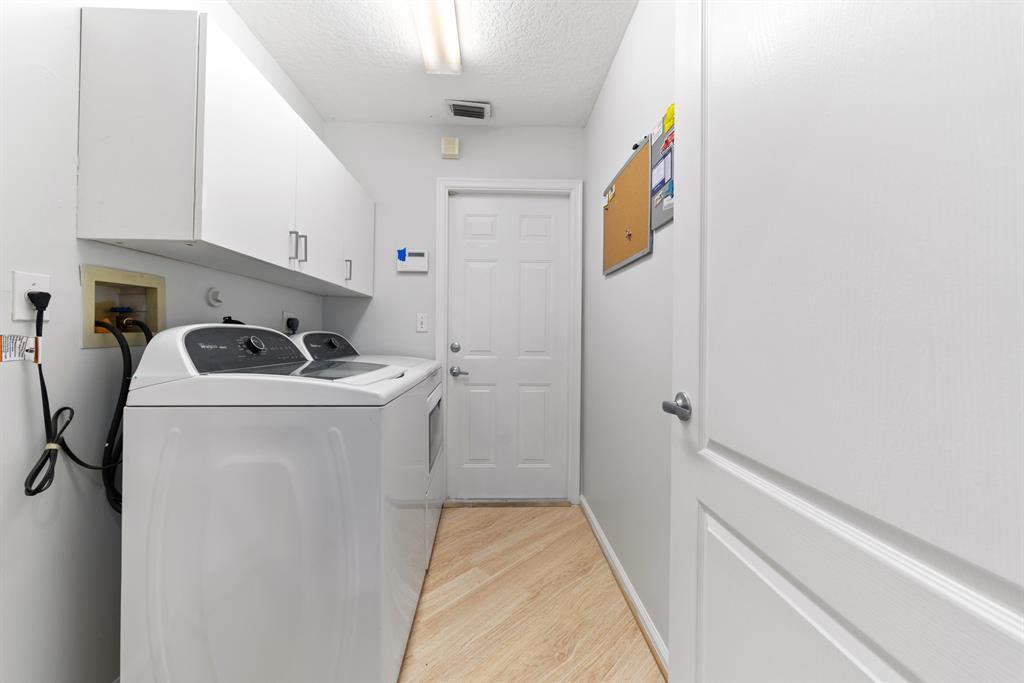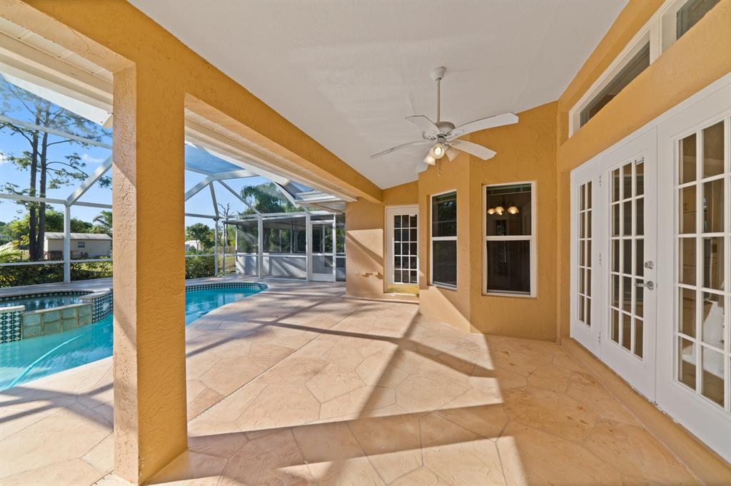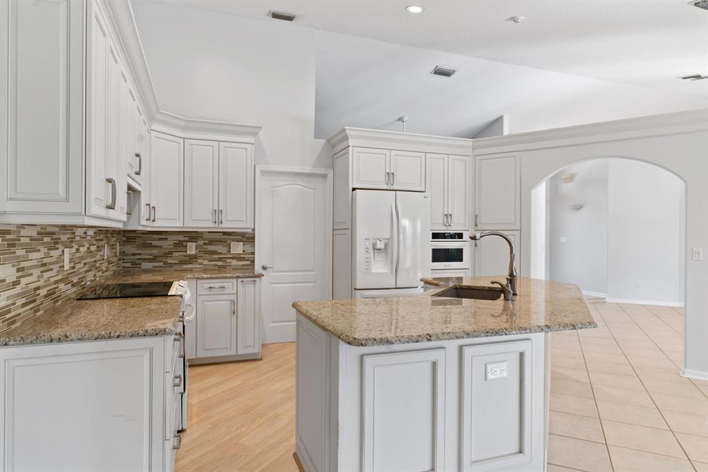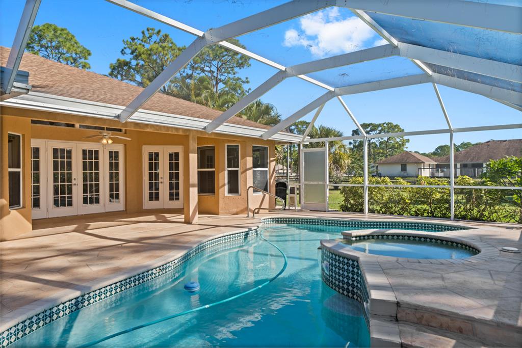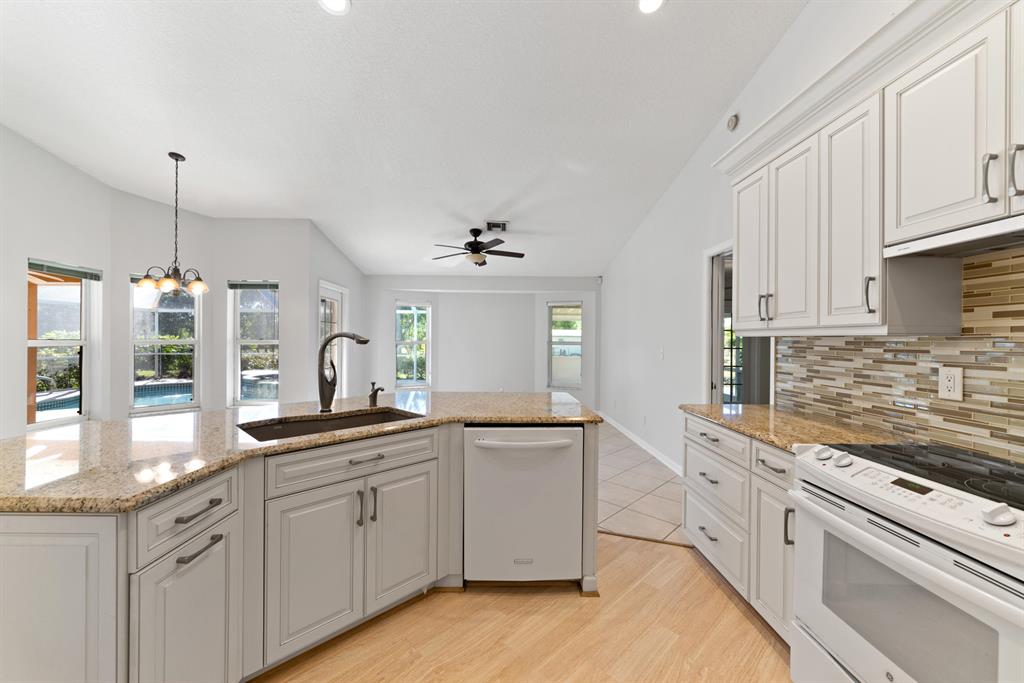 Beautiful spacious split floor plan screened in-pool home, roof 3 years old, kitchen remodeled 3 years ago with granite countertop and glass backsplash tiles, convection oven and pantry pull-outs. Oversize master suite with walk-in closets, large shower and soaking tub. Impact-resistant front door. Lovely curb appeal and oversize driveway with beautiful paver stones. Extra enclosed patio for relaxation and entertainment. Sellers have purchased American Home Shield Home Warranty for $600.00 for Buyer. Half of the garage has been converted to a room, but can be easily converted back to a 2 car garage. Brand new pool pump. Fenced yard.