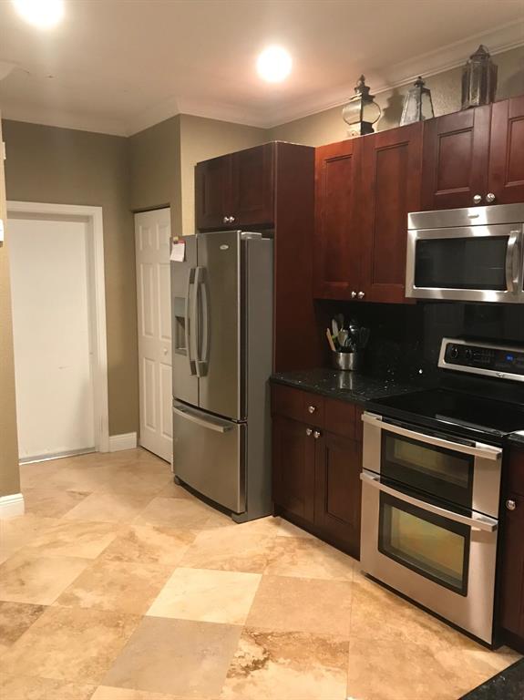 Gorgeous upgraded 4/2.5 corner town home in the heart of Weston with a gorgeous view of the Preserve from large screened patio. GORGEOUS SUNSETS!Travertine floors downstairs, wood floors upstairs, upgraded baseboards, crown molding, granite counter tops, stainless steel appliances, kitchen and bathrooms have all been updated. This is a must see home