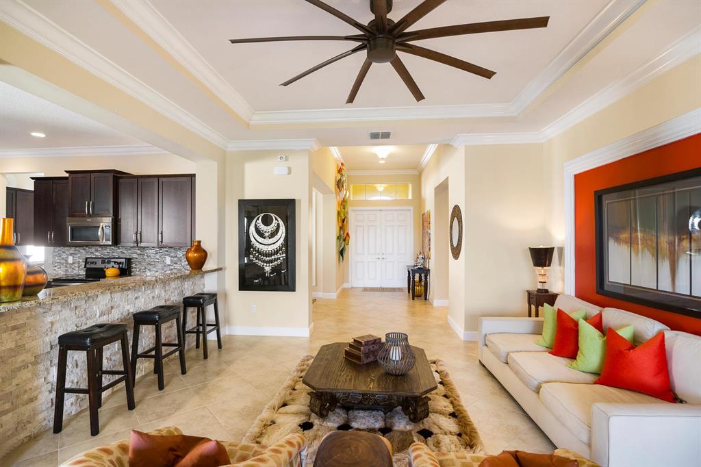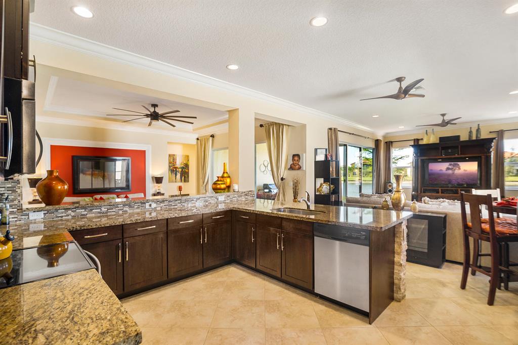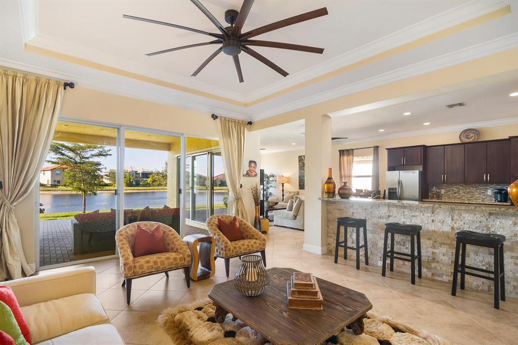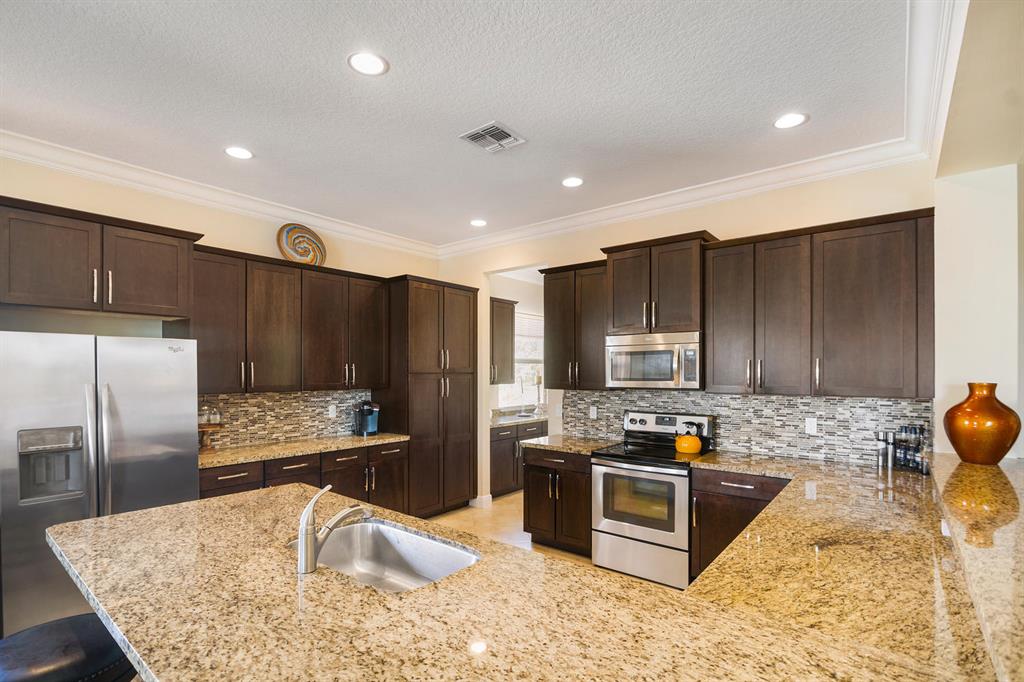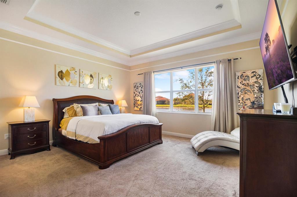 This gorgeous St. Tropez model in the highly regarded Portosol community consists of 5 generously sized bedrooms and 4 full bathrooms. As you enter you are invited in with extended lake views, crown molding, coffered ceilings, and much more. The gourmet eat-in kitchen features granite counters, glass backsplash, stainless steel appliances and offers an open concept feel that flows throughout the home. This home is ideal for family entertainment and includes a water purification system. The formal dining room provides an ideal setting for entertaining with an amazing butler's pantry. Your family will enjoy relaxing panoramic lake views from your extended covered patio great for outside dinners or just enjoying the sunset. Portosol offers resort-style living with great amenities such as: