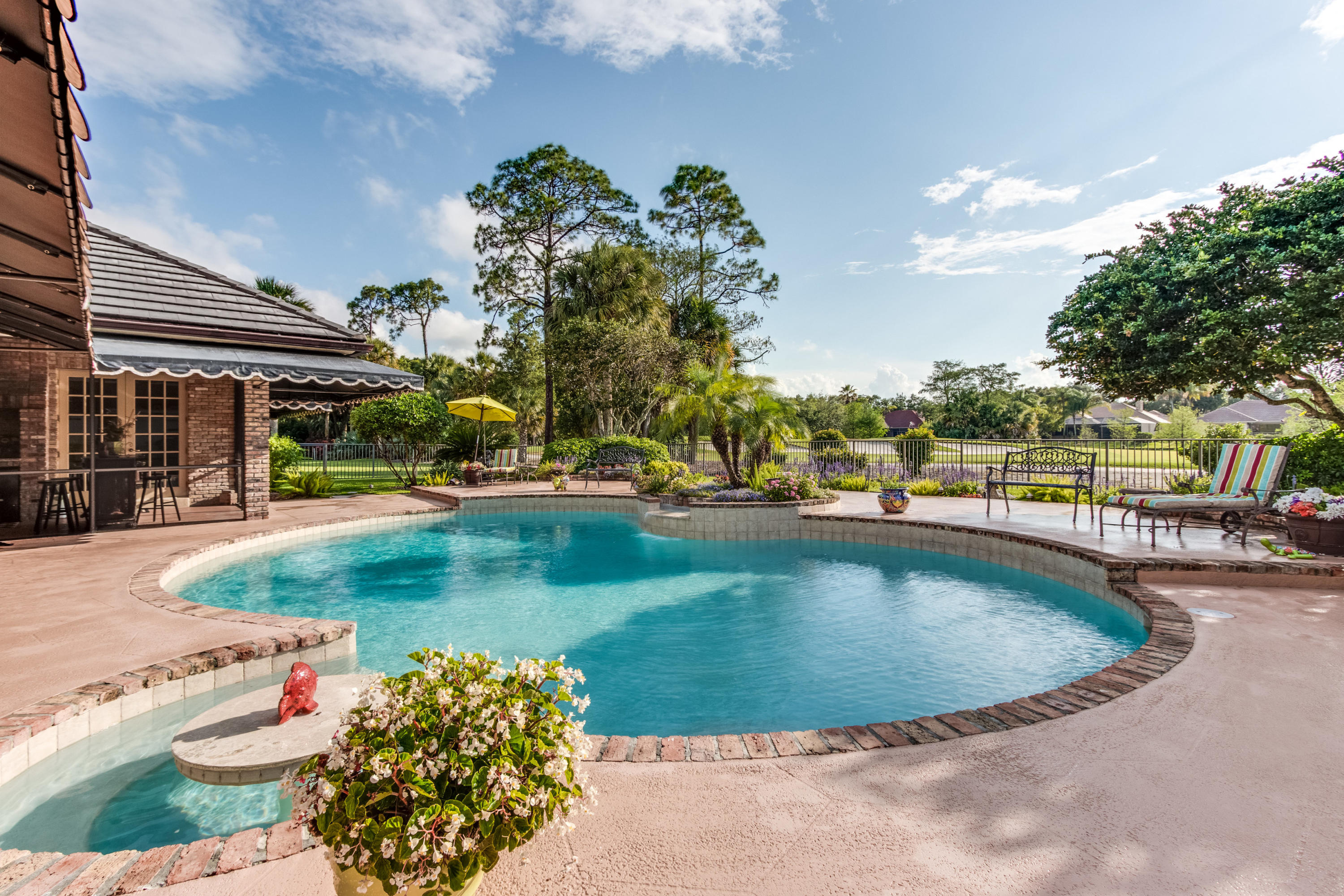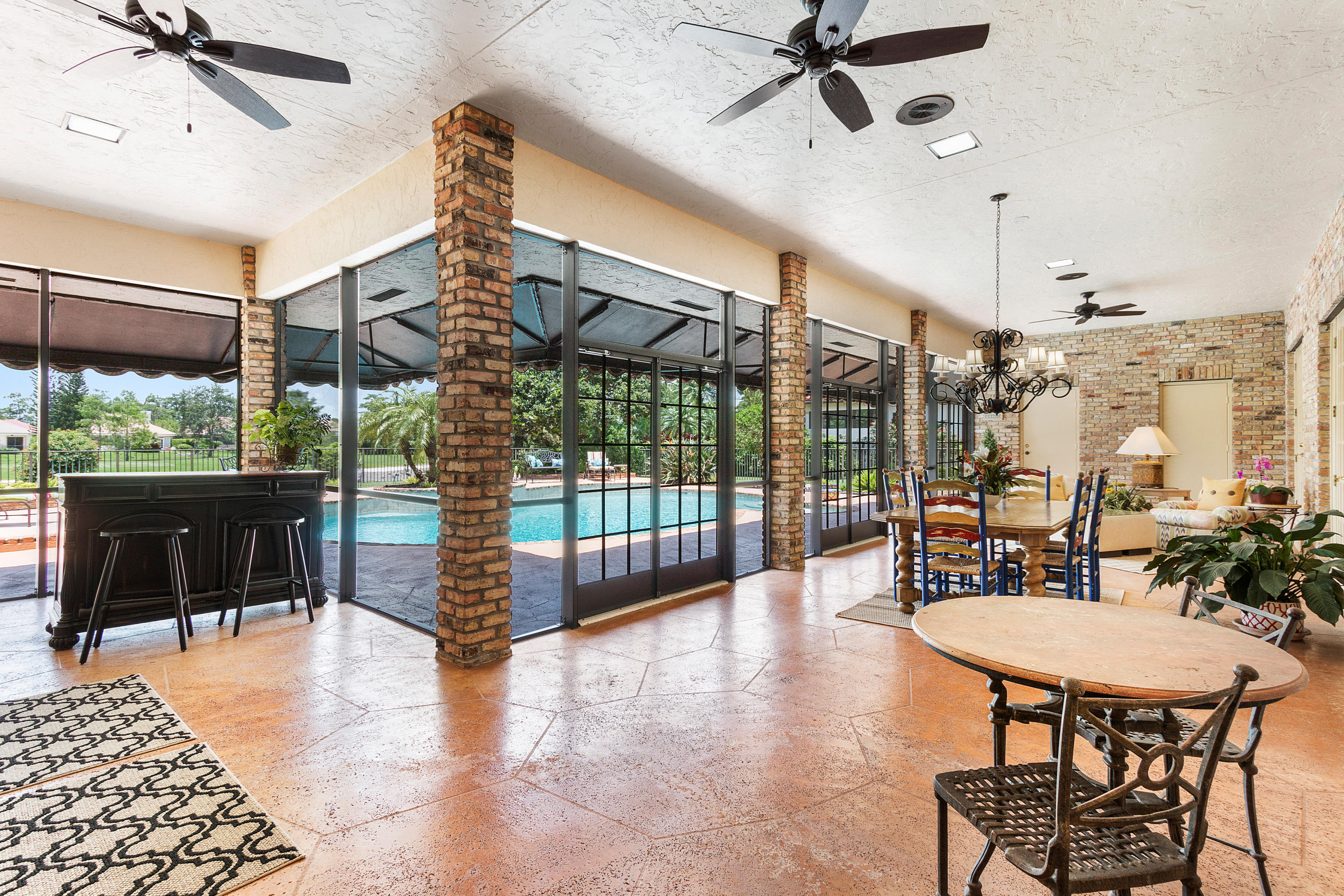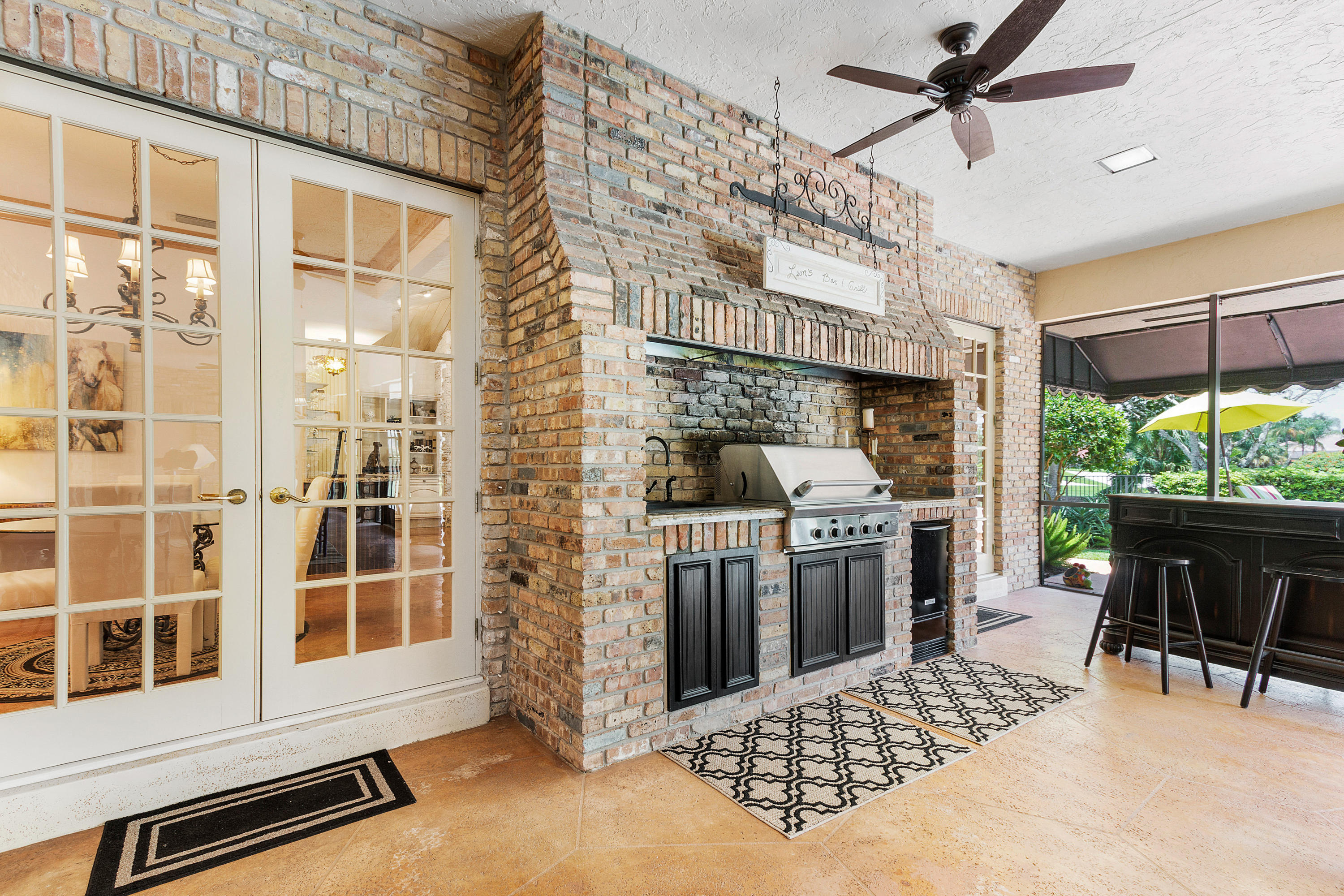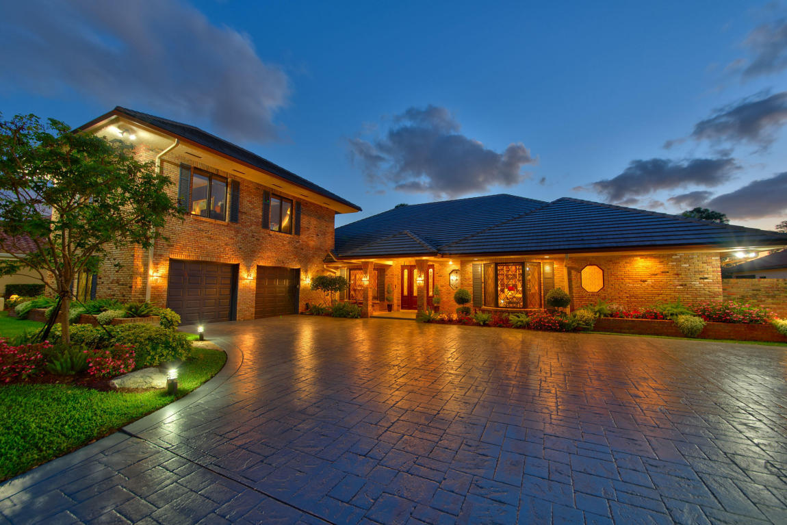Breakers West entertainment home meant to be enjoyed by friends or family! Meticulously maintained with 4,894 sf of liv area on .52 acre, this home offers warmth and character seldom seen. 5BR+large office, 6.5 Baths. Gourmet kitchen with Sub-Z refrig, double ovens and lg center island opens Family Room w/coquina stone fireplace and tongue & groove wood ceiling. Spacious Master Bedroom on 1st floor has gorgeous adjoining paneled office complete with sink and refrig. There are 2 additional Bedrooms on main level each with own Bath PLUS 2 more Bedrooms upstairs giving privacy for kids/guests. Fabulous outdoor kitchen with built in grill, ice maker, bar and screened covered loggia. Pool has LCD lighting, built in underwater table & stools & sweeping views of Mayacoo Lake Golf Cours