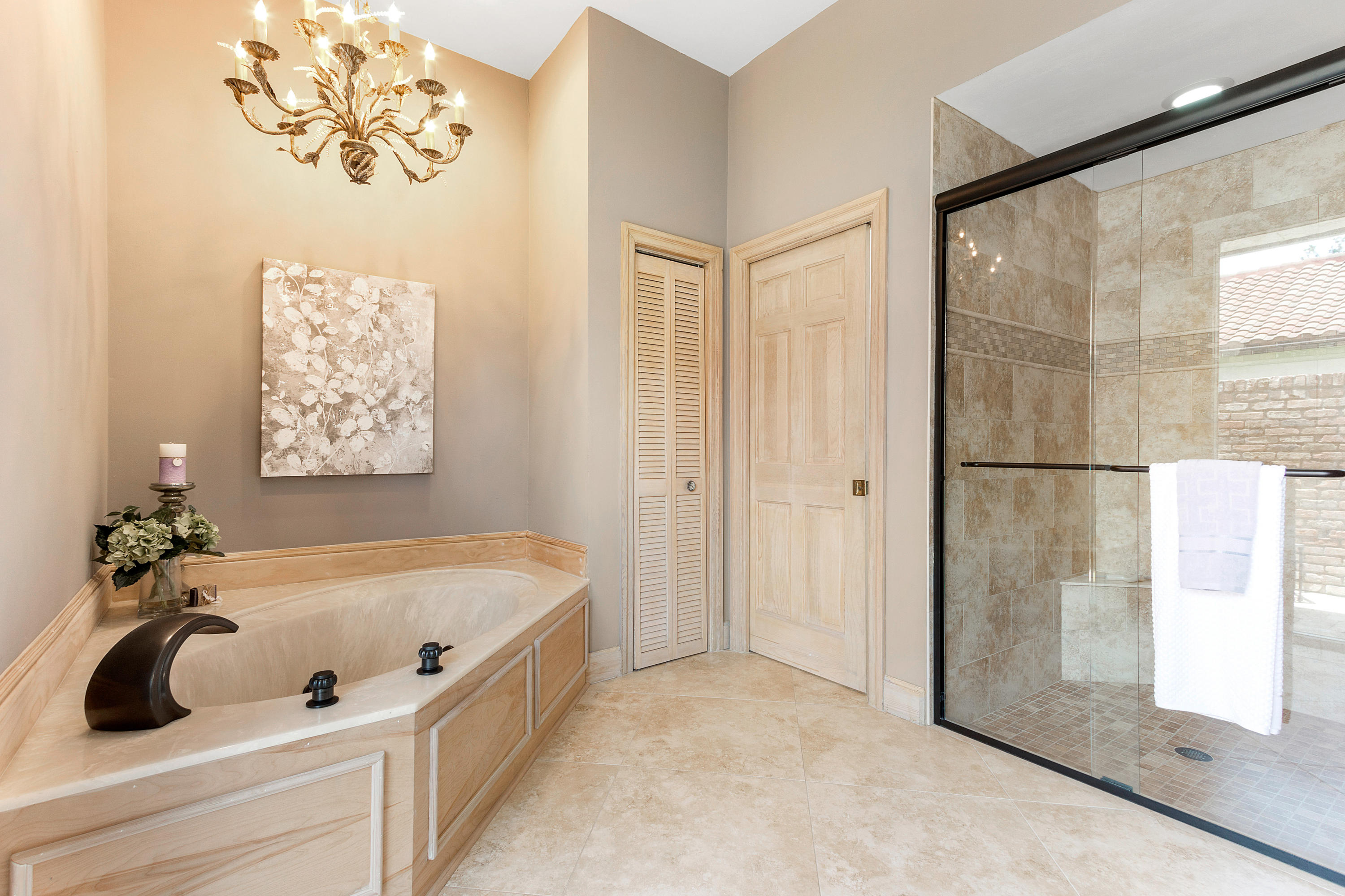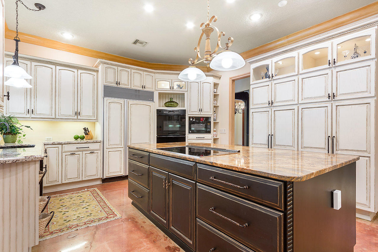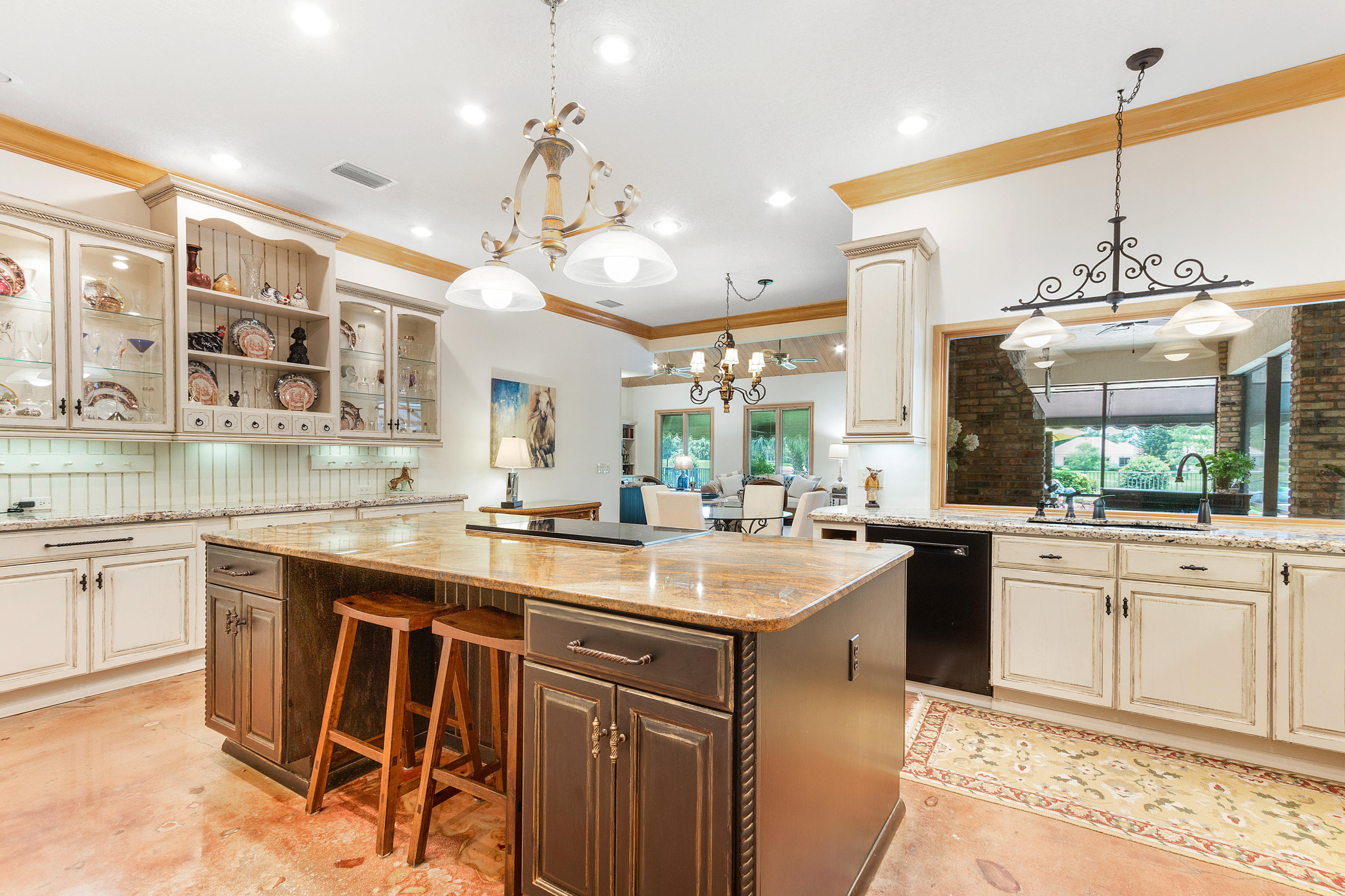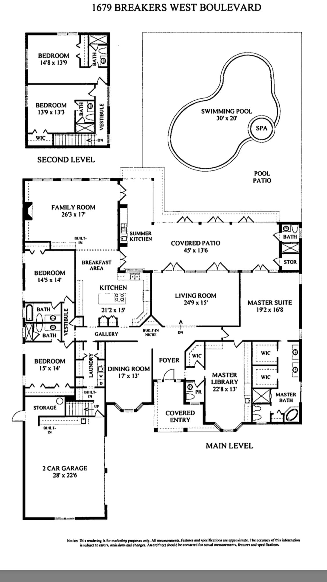 Breakers West entertainment home meant to be enjoyed by friends or family! Meticulously maintained with 4,894 sf of liv area on .52 acre, this home offers warmth and character seldom seen. 5BR+large office, 6.5 Baths. Gourmet kitchen with Sub-Z refrig, double ovens and lg center island opens Family Room w/coquina stone fireplace and tongue & groove wood ceiling. Spacious Master Bedroom on 1st floor has gorgeous adjoining paneled office complete with sink and refrig. There are 2 additional Bedrooms on main level each with own Bath PLUS 2 more Bedrooms upstairs giving privacy for kids/guests. Fabulous outdoor kitchen with built in grill, ice maker, bar and screened covered loggia. Pool has LCD lighting, built in underwater table & stools & sweeping views of Mayacoo Lake Golf Cours