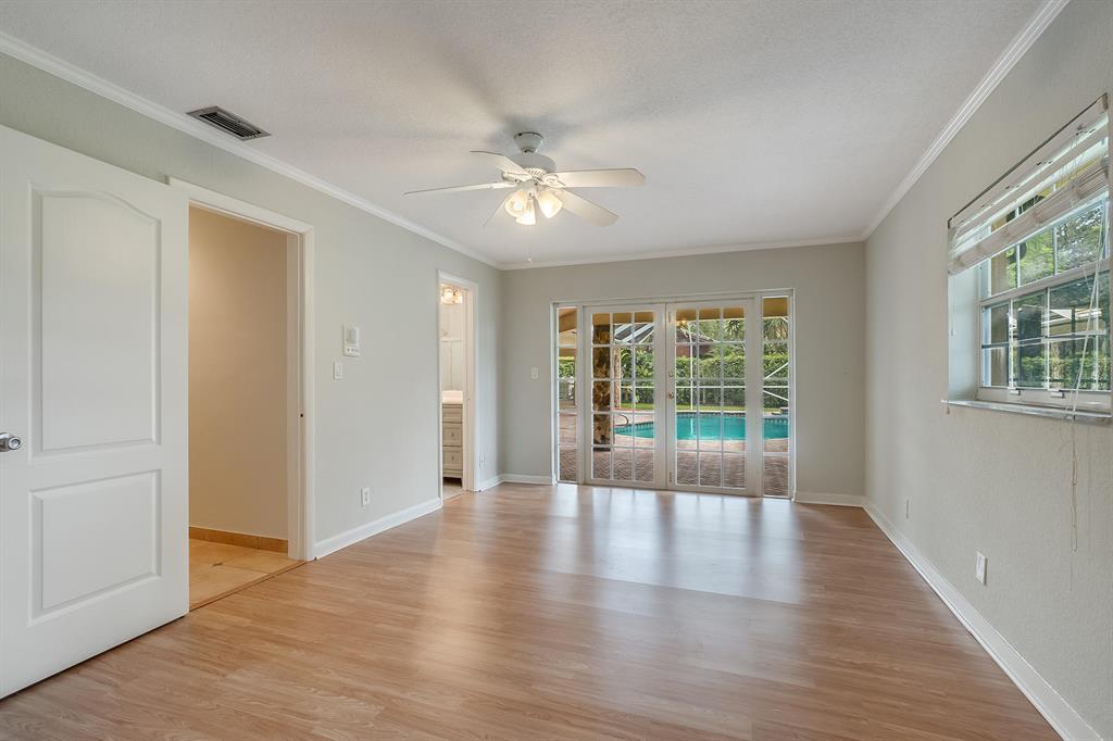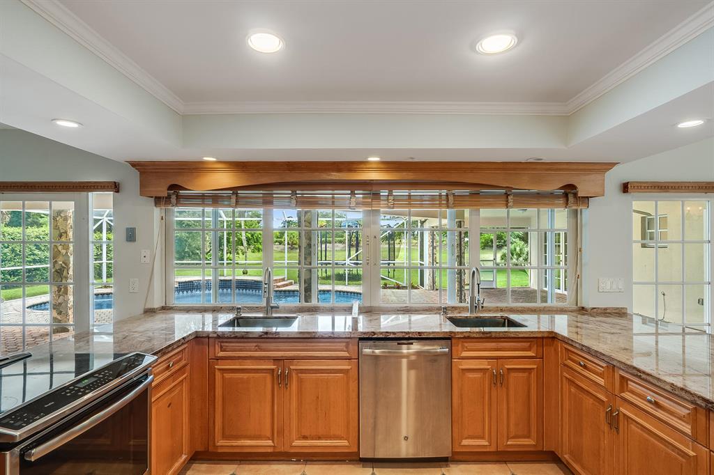 Spacious Family Home on Very Large Private Lot overlooking Lake! Lg Granite Kitchen with Breakfast room that fits a Lg table, Split BR floor plan: Lg Master with lg walk-in, 3 bedrooms + bonus room (can easily be 5th BR) on the other side, Formal Living Rm & Dining Rm, Lg Family Room, Vaulted ceilings in all living areas, Entire inside newly painted, New flat roof, New Hot Water Heater, Cabana Bath, Large Patio/Pool area, Entire rear of house has View of Very large open yard & lake with ''No rear neighbors'' Close to shopping, Turnpike & I95, Restaurants, Top Rated Schools, Walk to House of Worship, Estancia's Beautiful Park with playground, Bike & Jog paths, Tennis Courts, A must See and easy to show!